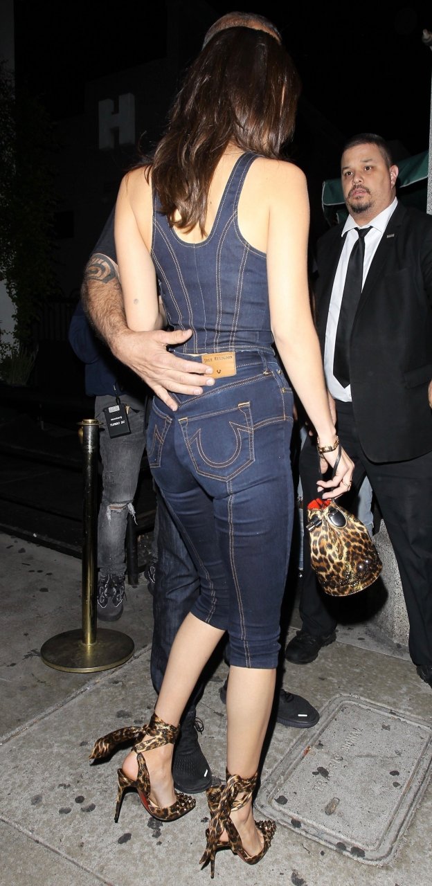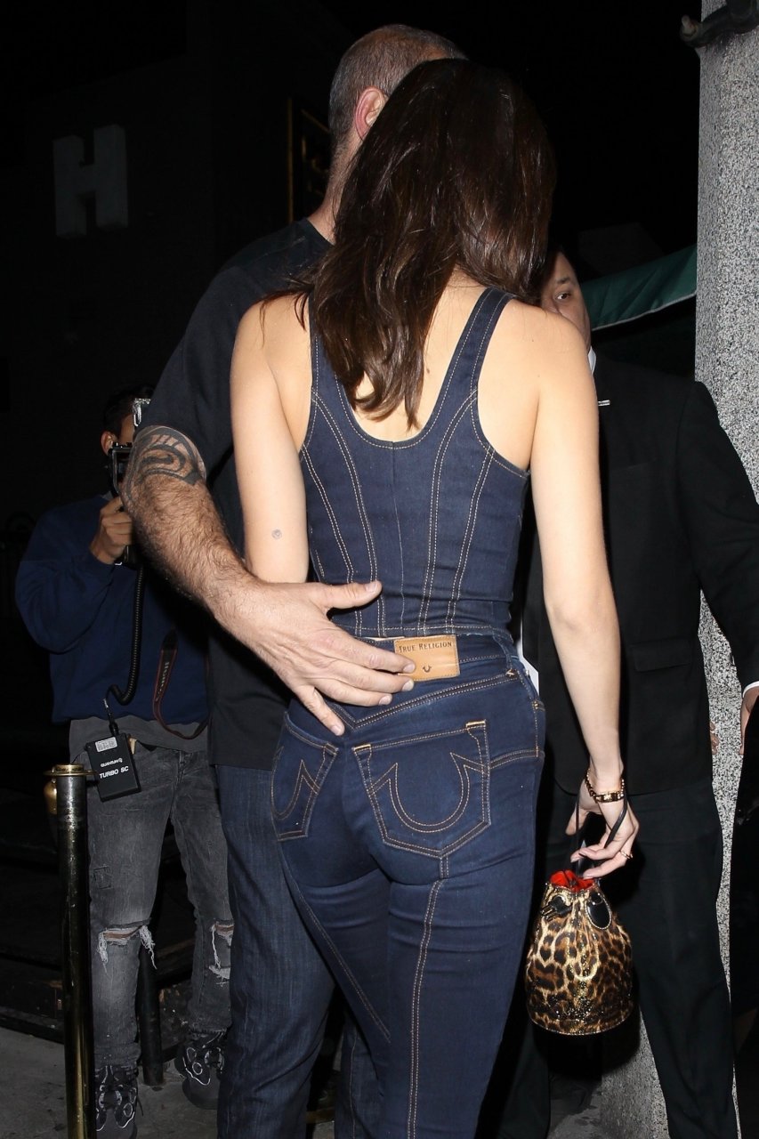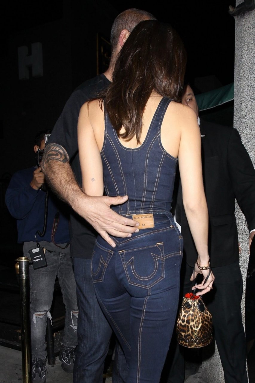 Модель Белла Хадид (22) поражает в обтягивающем джинсовом комбинезоне для ночного выхода в Уэст-Голливуде, 18.10.2018. Белла выглядит великолепно, выходя из машины и демонстрируя декольте в маленьком комбинезоне.