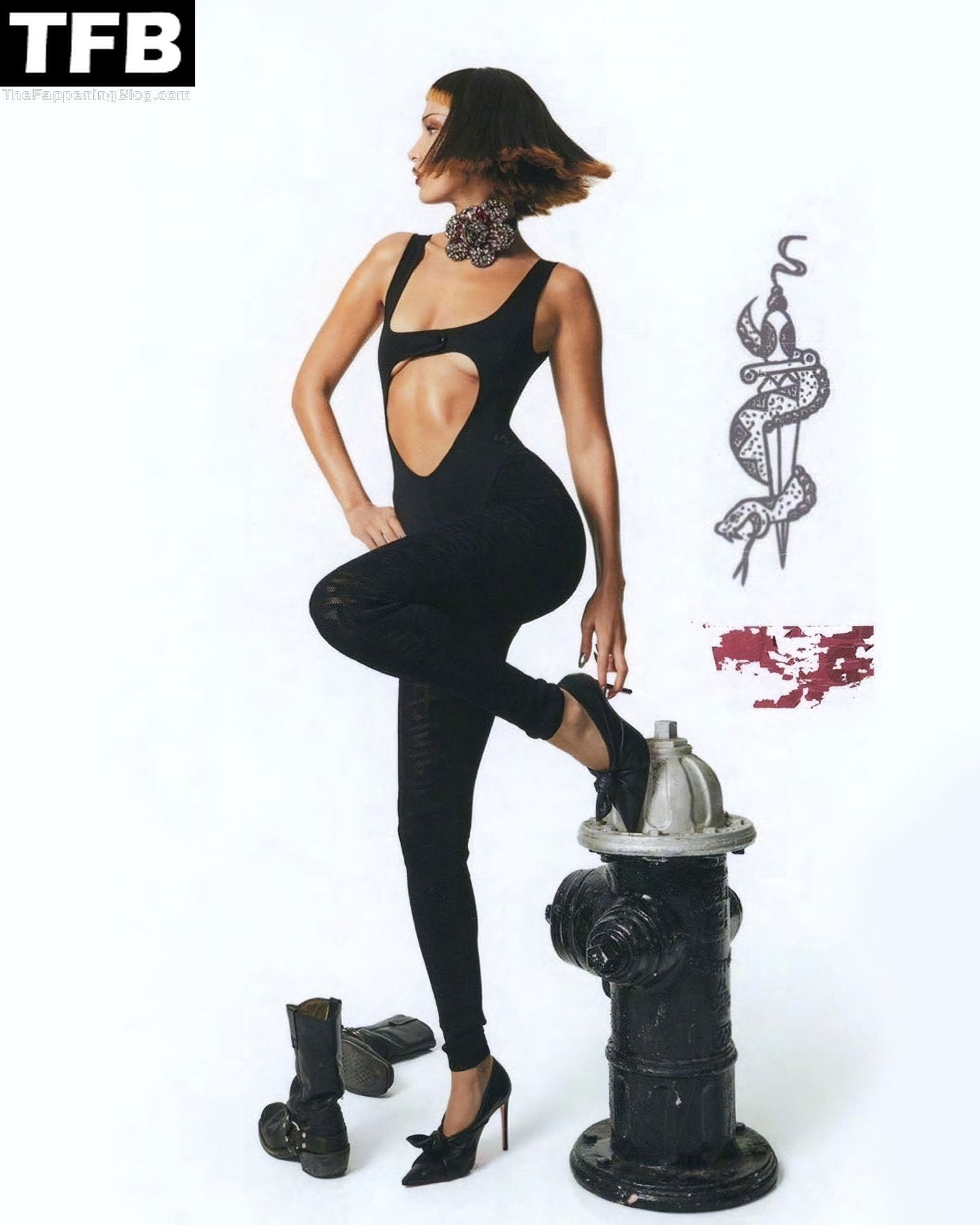 Модель Белла Хадид выглядит стильно, демонстрируя грудь и ноги в фотосессии для журнала POP, выпуск 45 (2021).