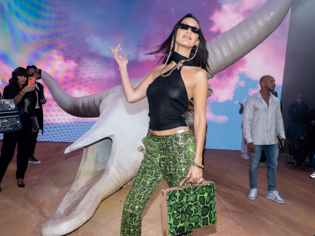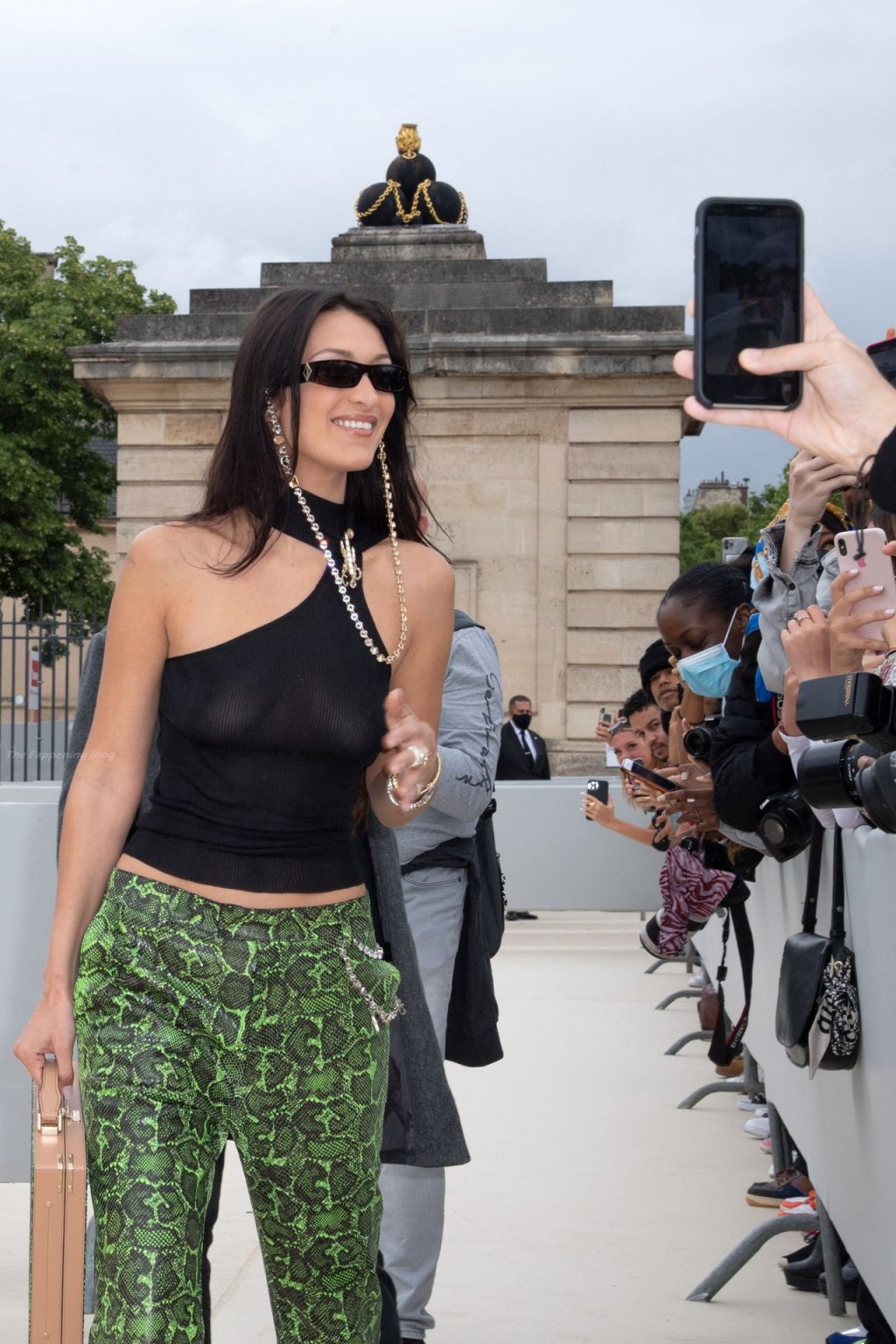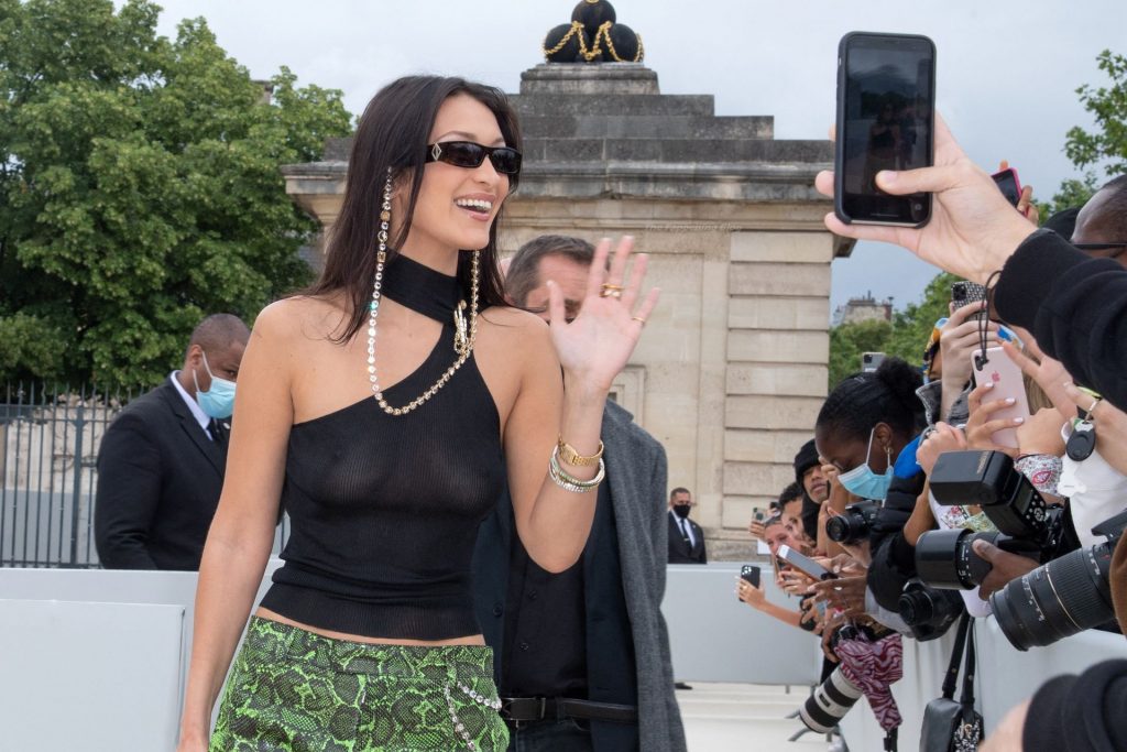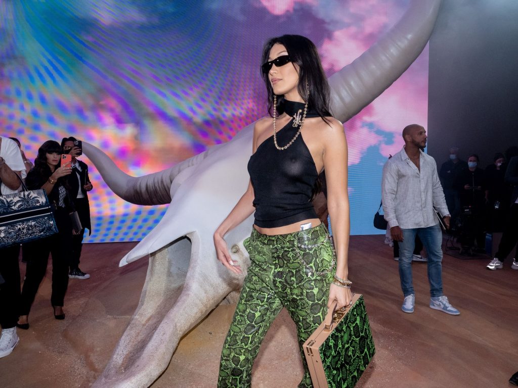 Белла Хадид была замечена на показе мужской одежды Dior Homme Весна/Лето 2022 в рамках Парижской недели моды в Париже, 25.06.2021.