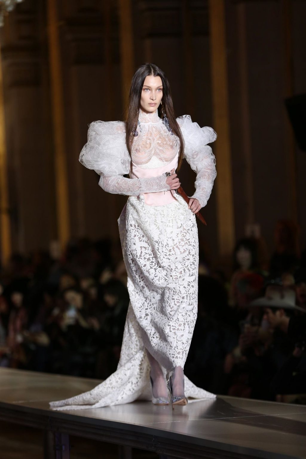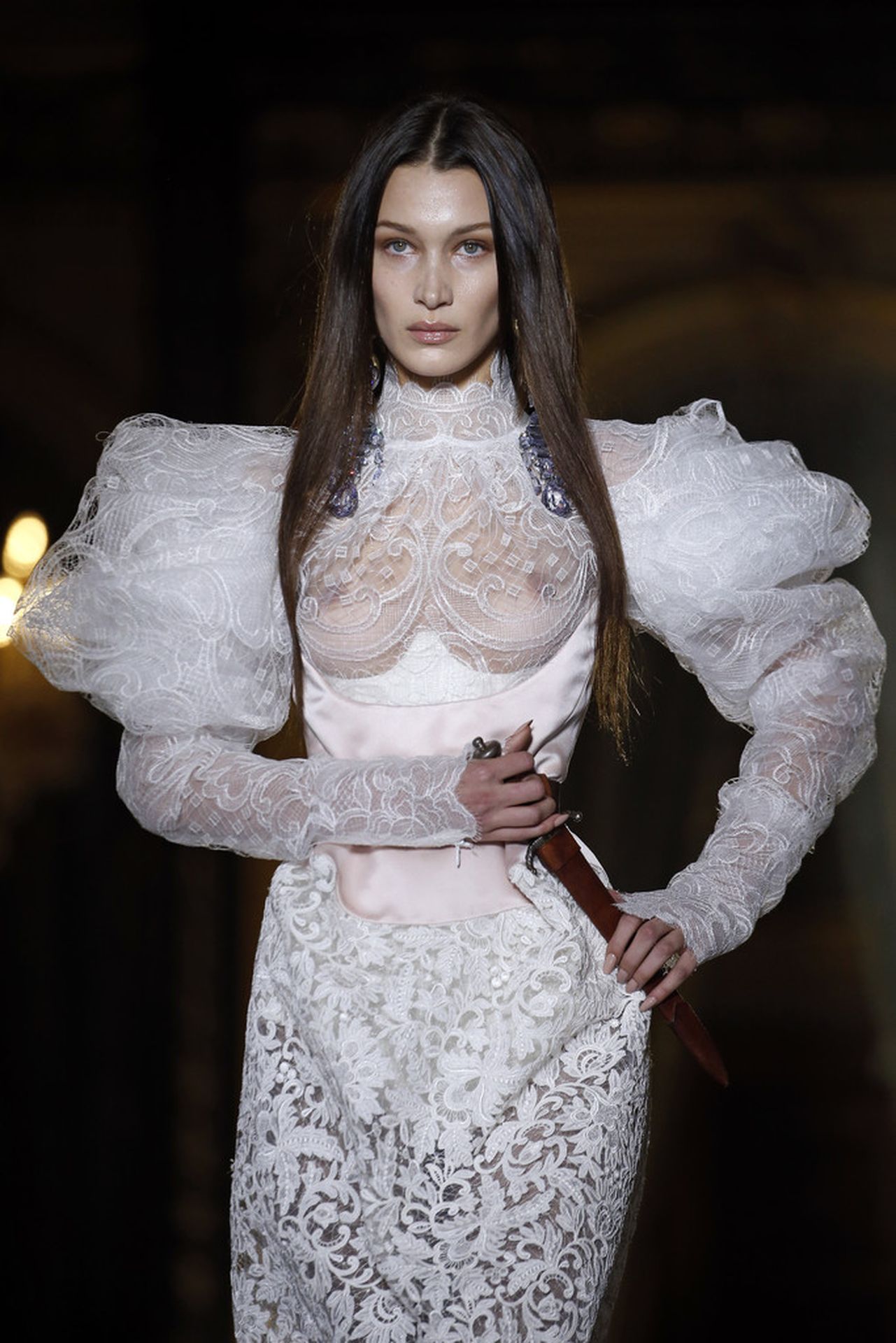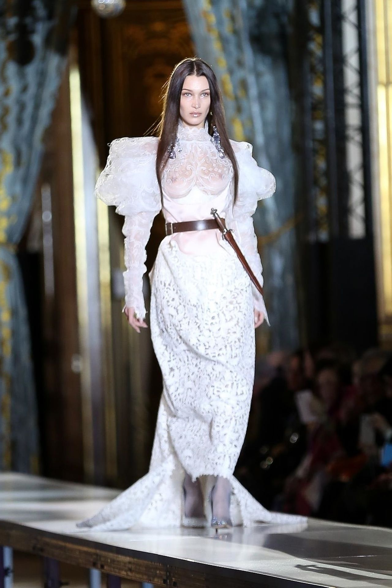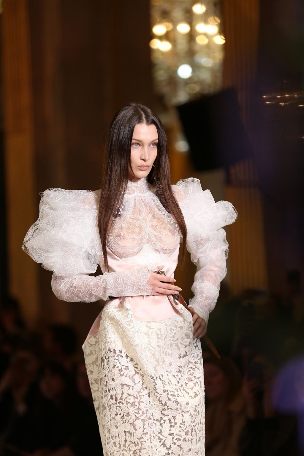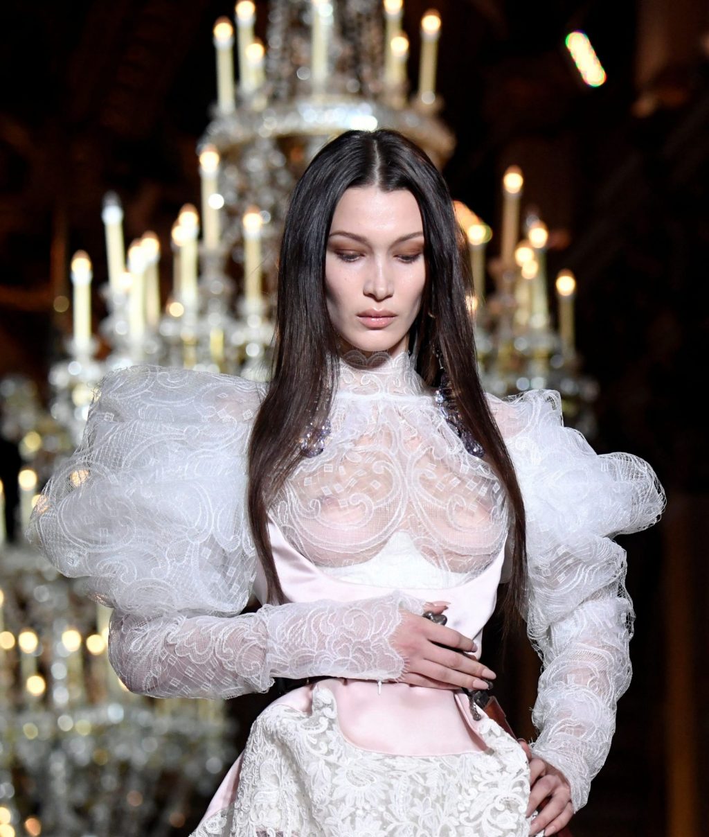 Модель Белла Хадид была замечена без бюстгальтера, выходя на подиум на показе мод Vivienne Westwood во время Недели моды в Париже, 29.02.2020. Белла отрежет тебе яйца, если ты посмотришь на её грудь!