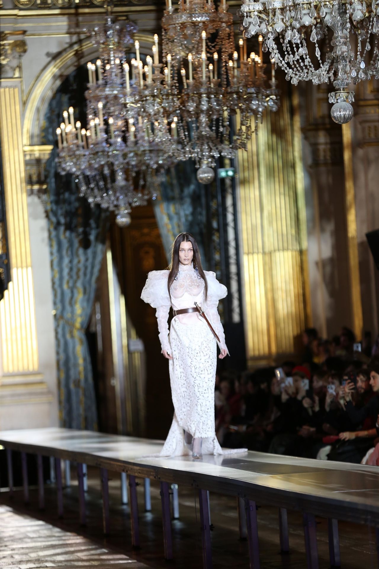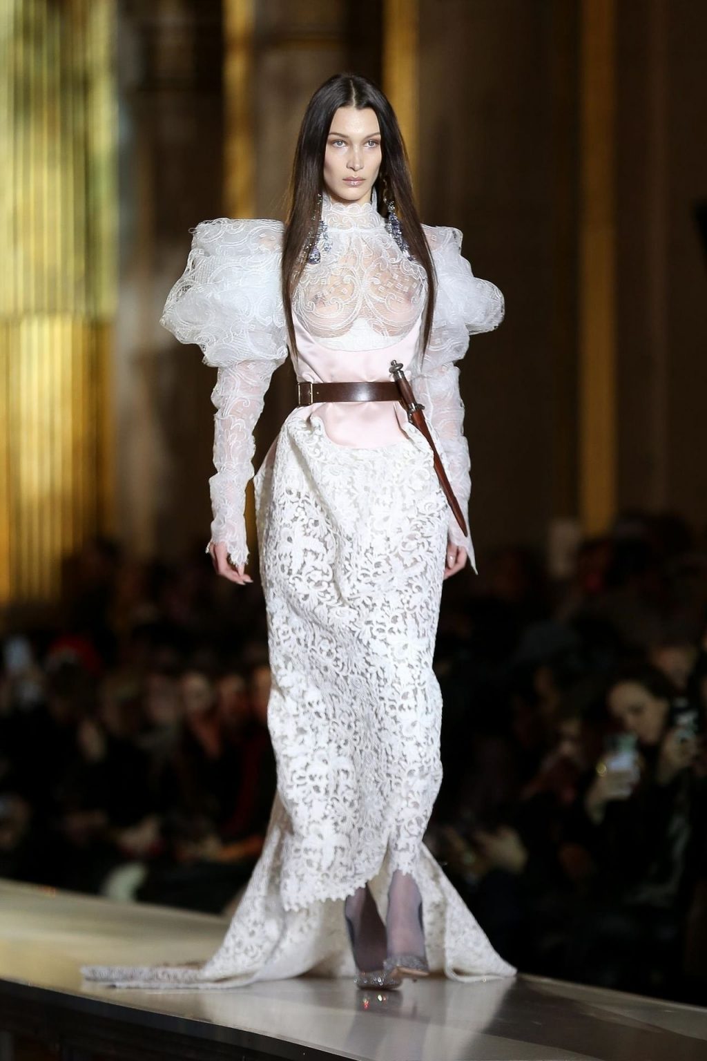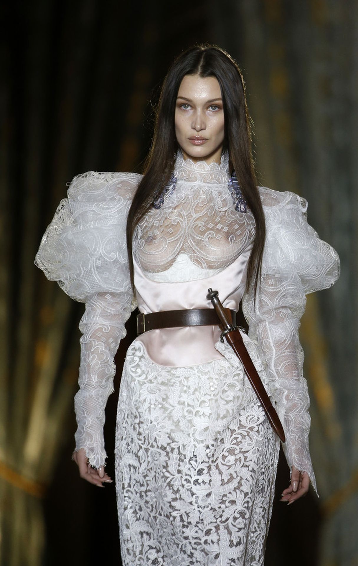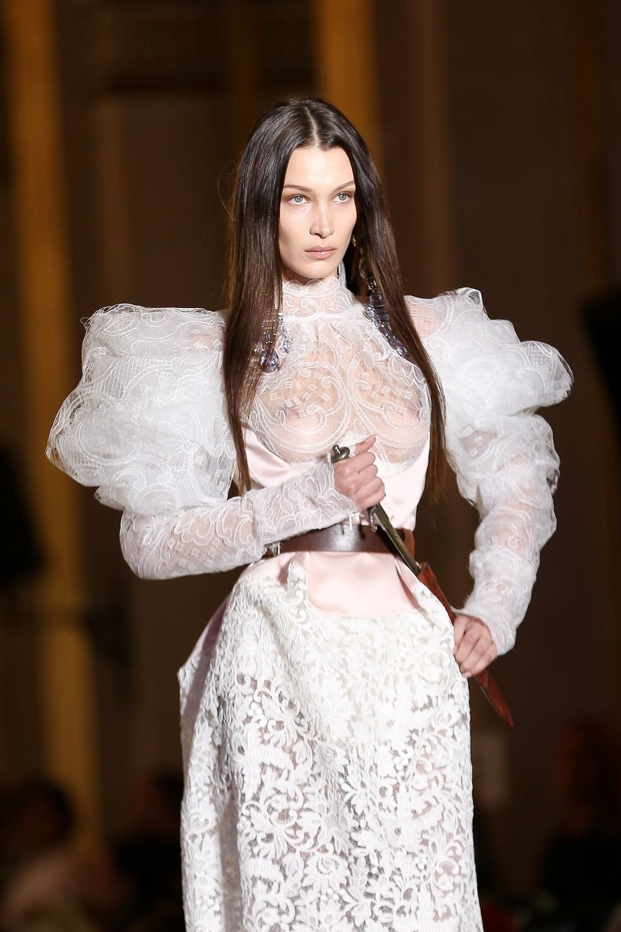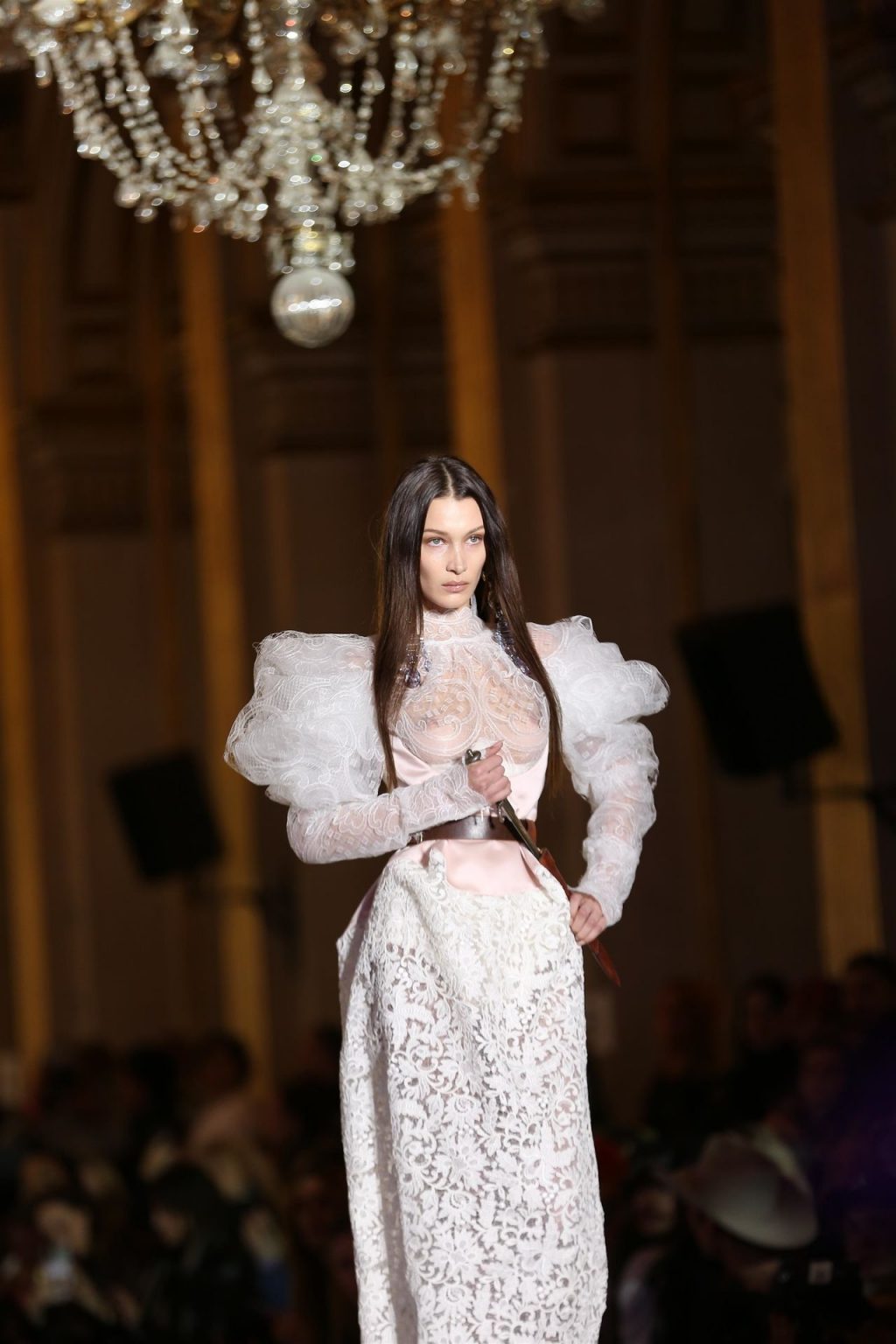 Модель Белла Хадид была замечена без бюстгальтера, выходя на подиум на показе мод Vivienne Westwood во время Недели моды в Париже, 29.02.2020. Белла отрежет тебе яйца, если ты посмотришь на её грудь!