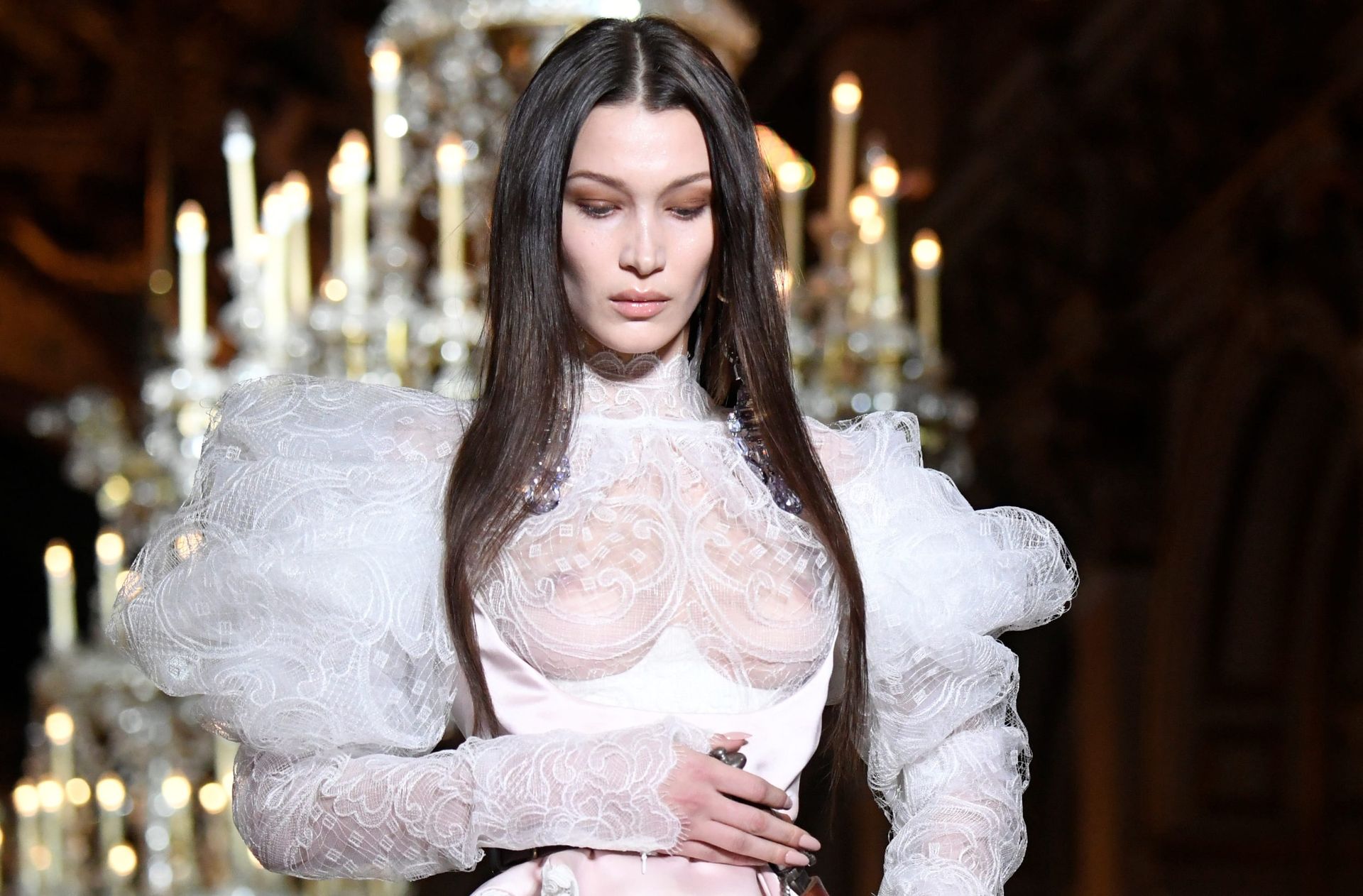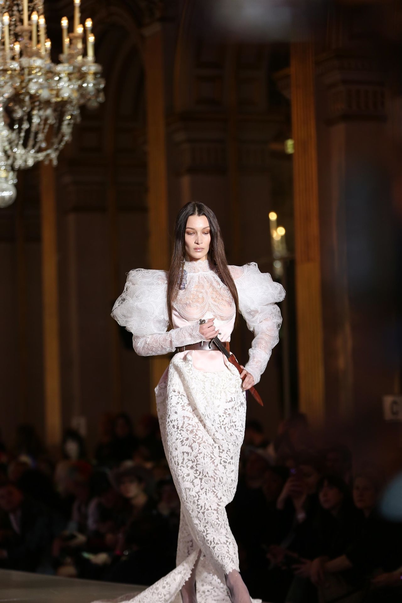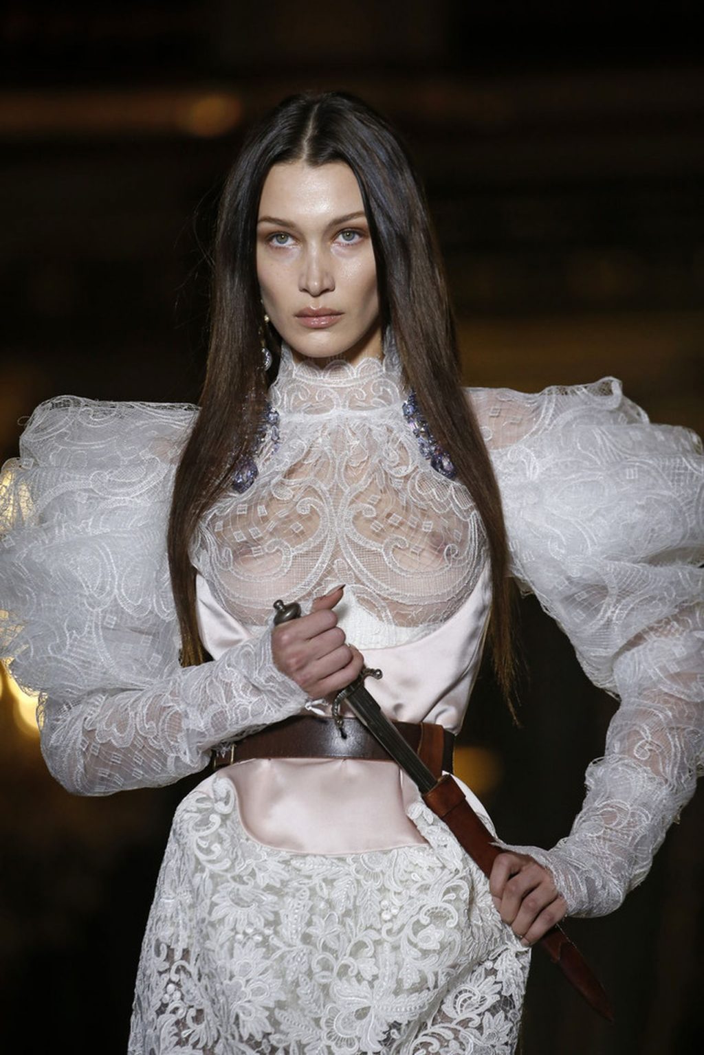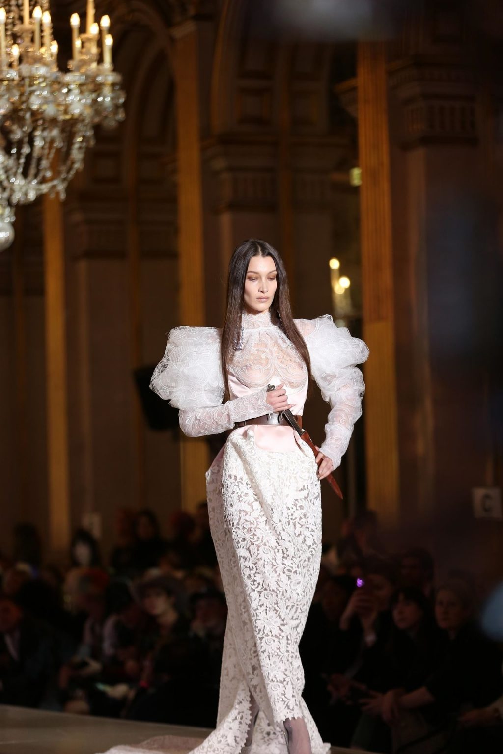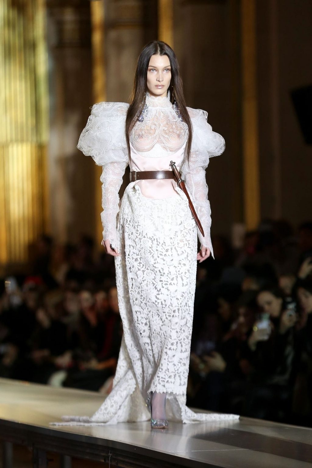Модель Белла Хадид была замечена без бюстгальтера, выходя на подиум на показе мод Vivienne Westwood во время Недели моды в Париже, 29.02.2020. Белла отрежет тебе яйца, если ты посмотришь на её грудь!