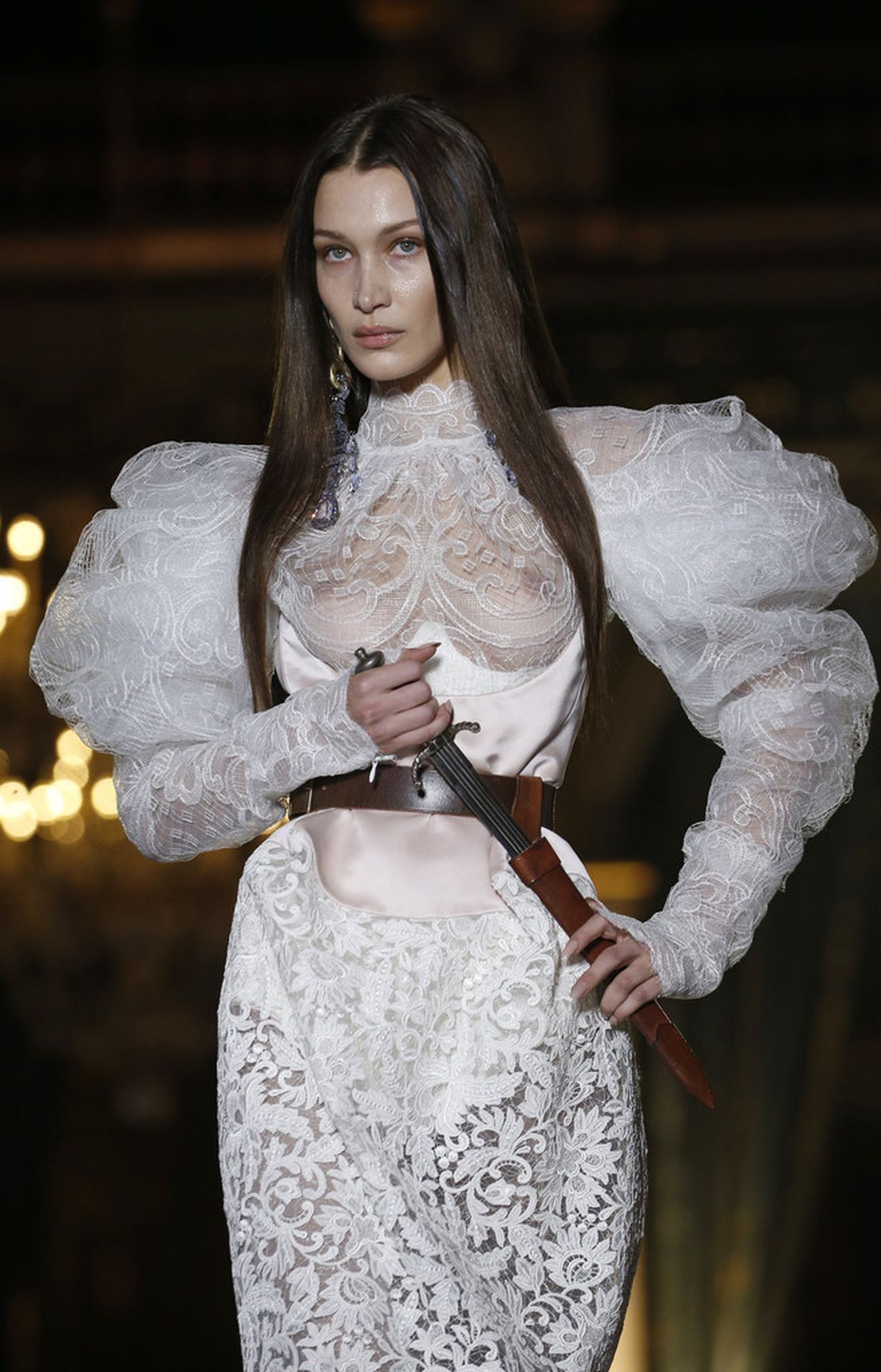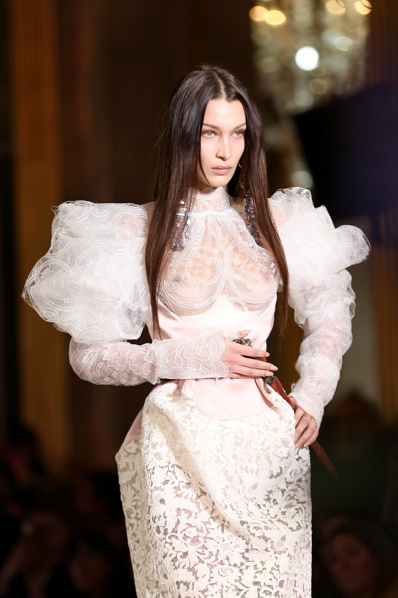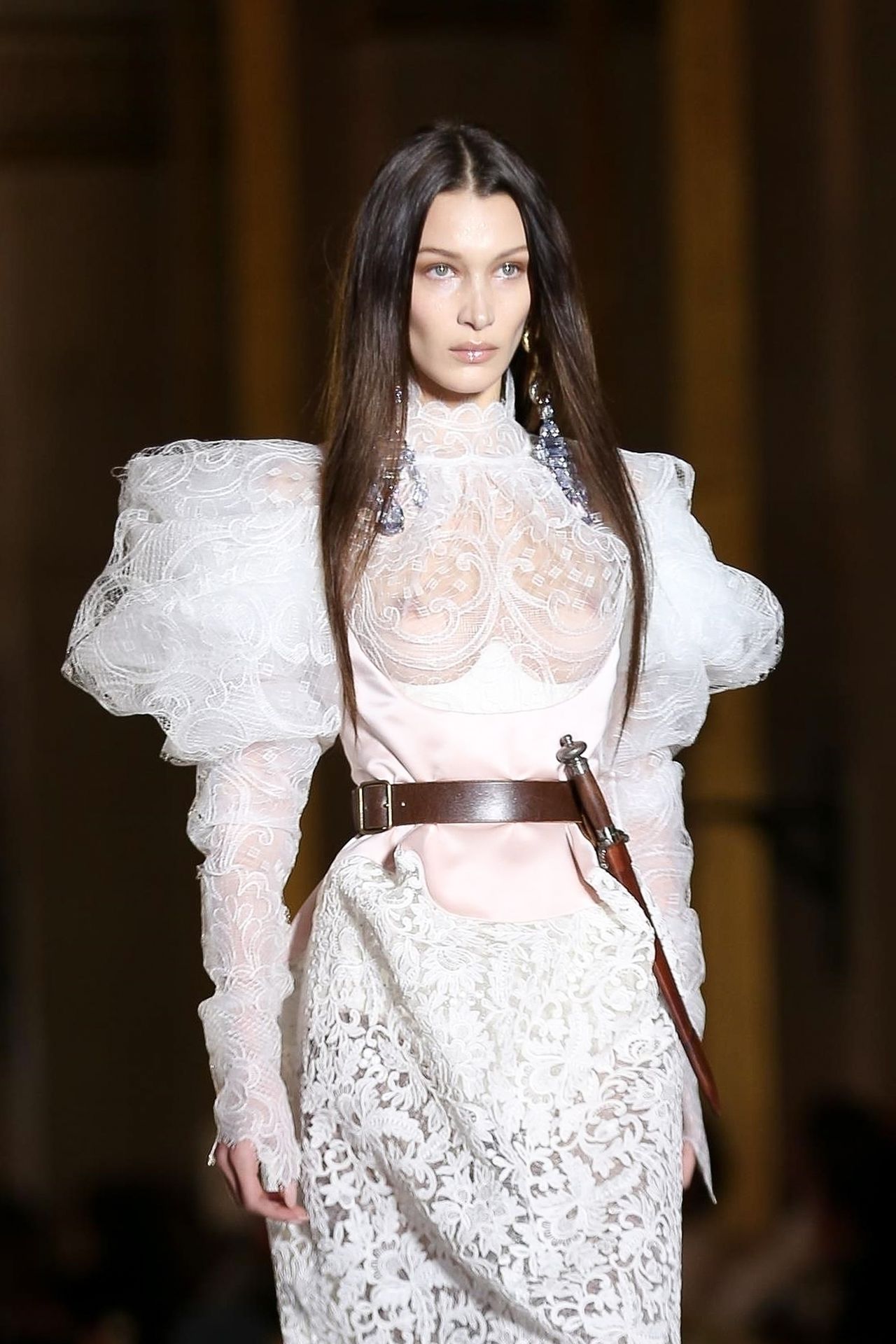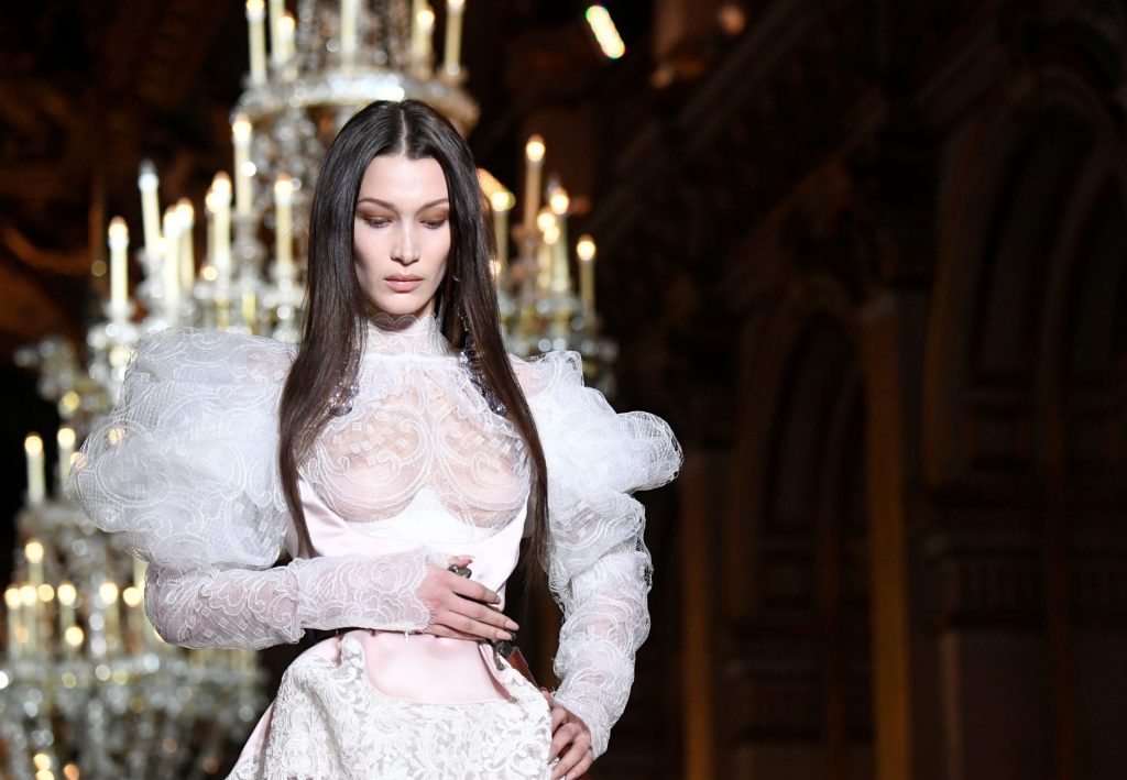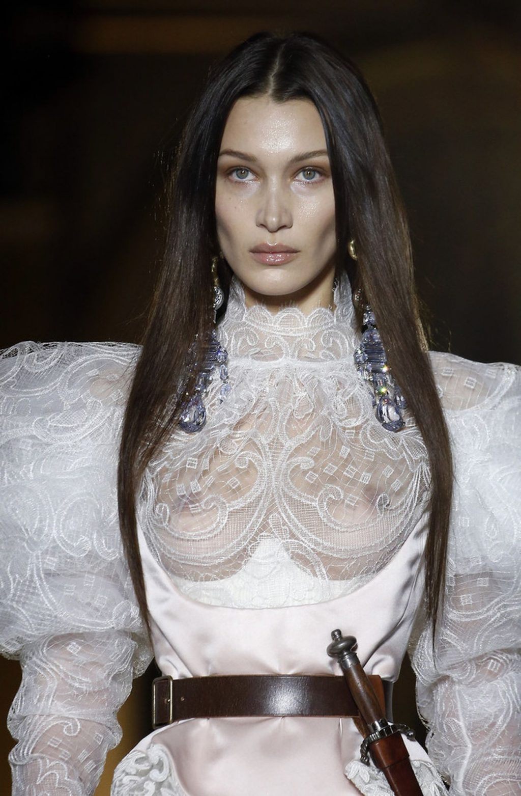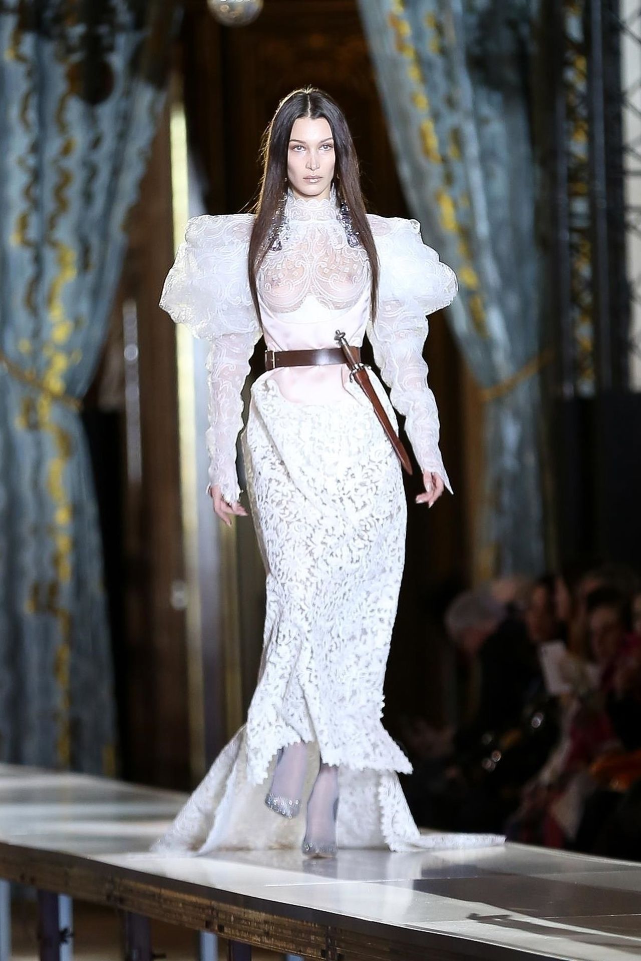 Модель Белла Хадид была замечена без бюстгальтера, выходя на подиум на показе мод Vivienne Westwood во время Недели моды в Париже, 29.02.2020. Белла отрежет тебе яйца, если ты посмотришь на её грудь!