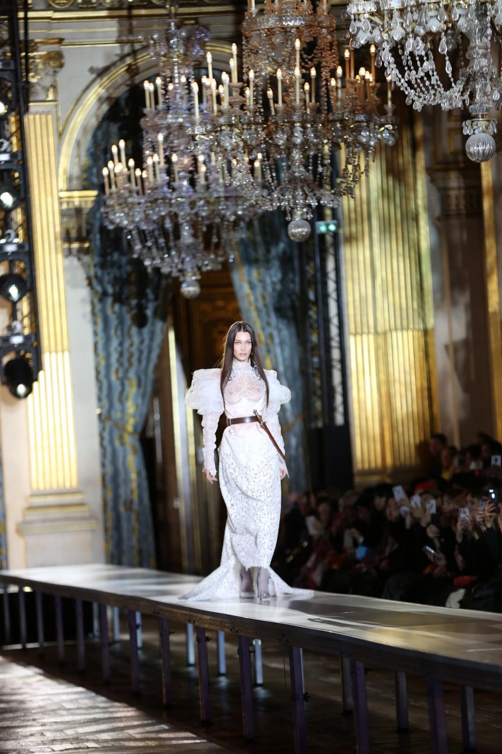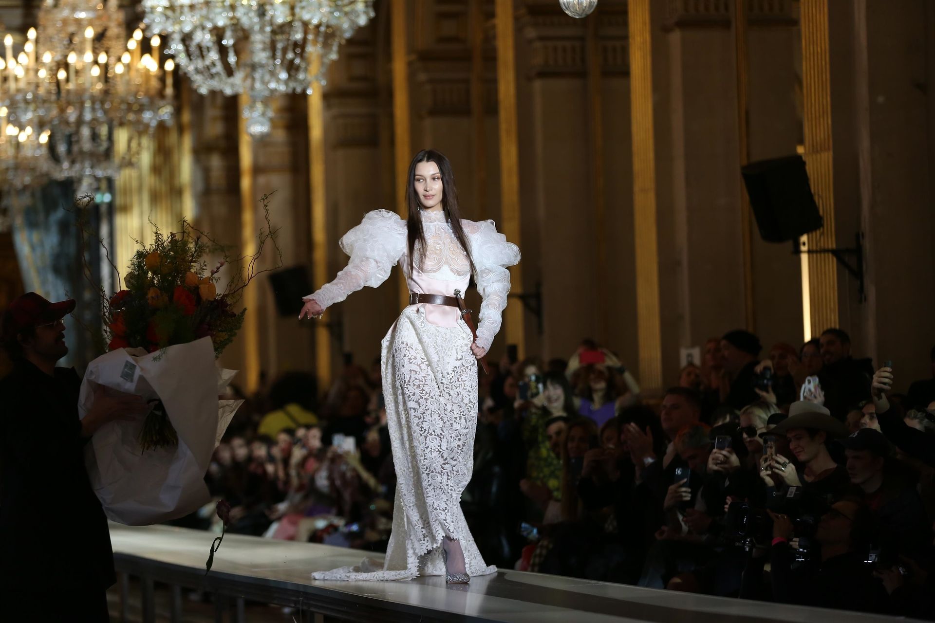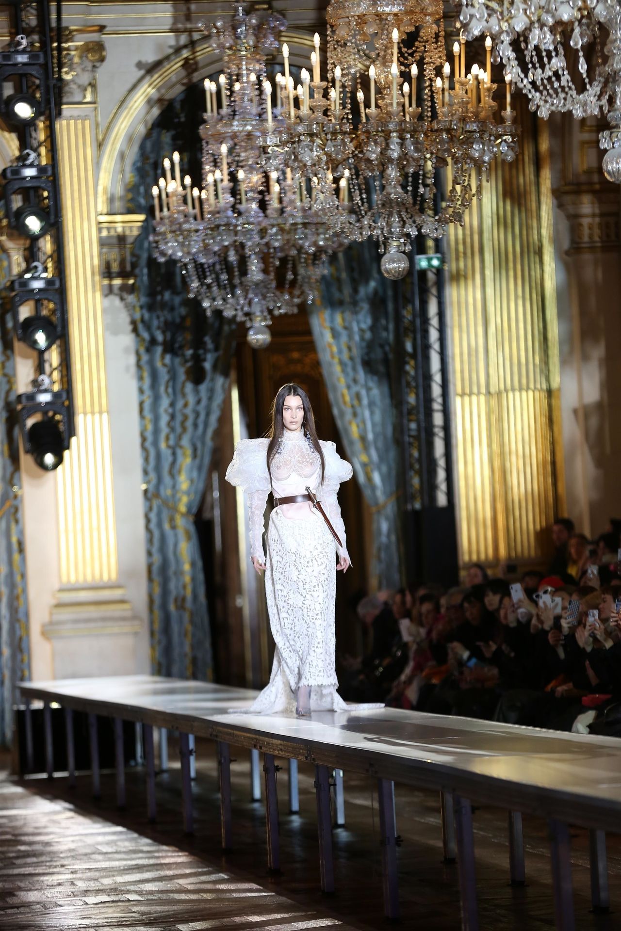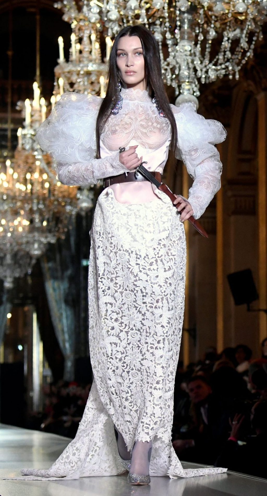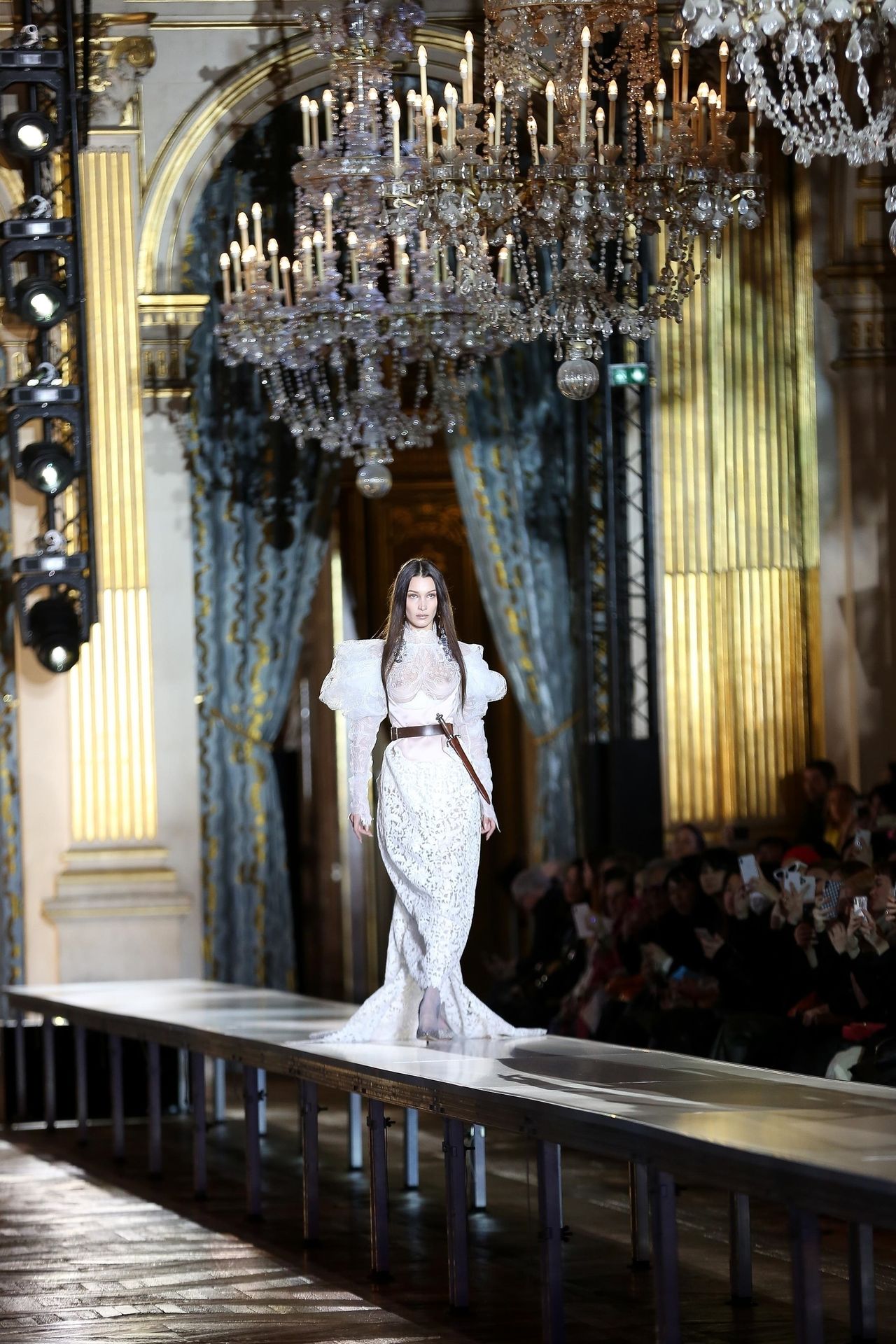 Модель Белла Хадид была замечена без бюстгальтера, выходя на подиум на показе мод Vivienne Westwood во время Недели моды в Париже, 29.02.2020. Белла отрежет тебе яйца, если ты посмотришь на её грудь!