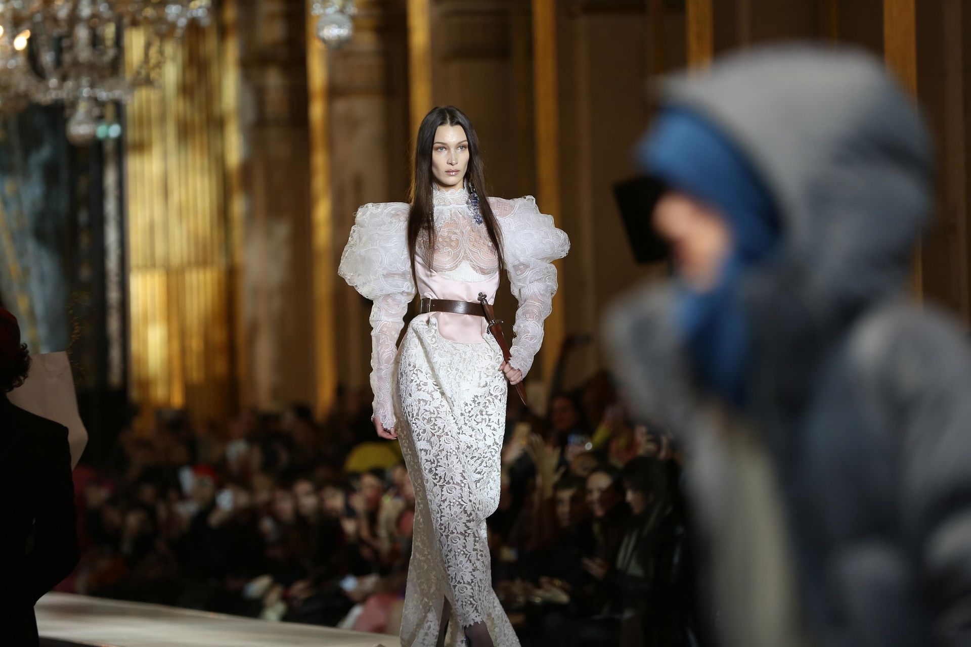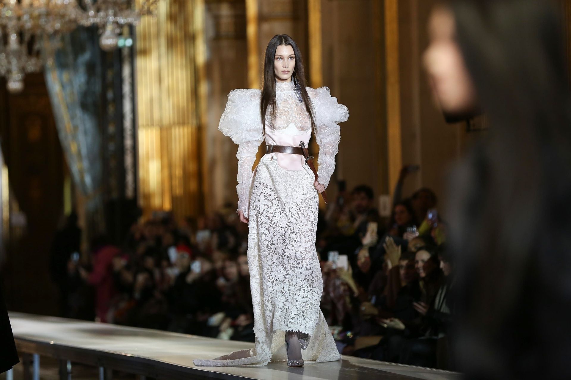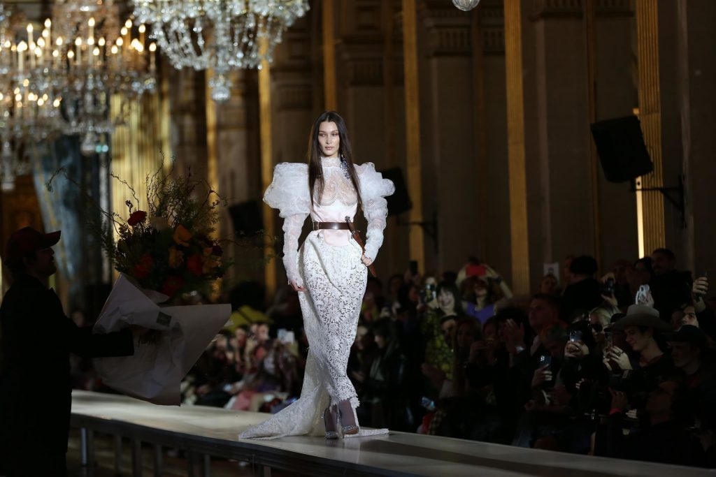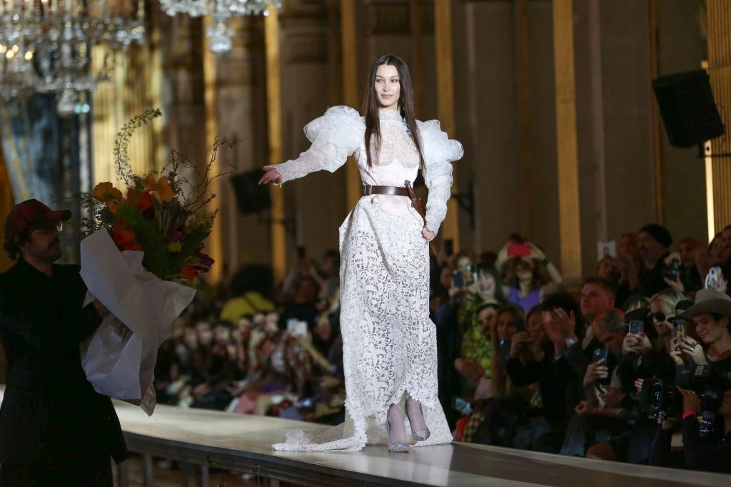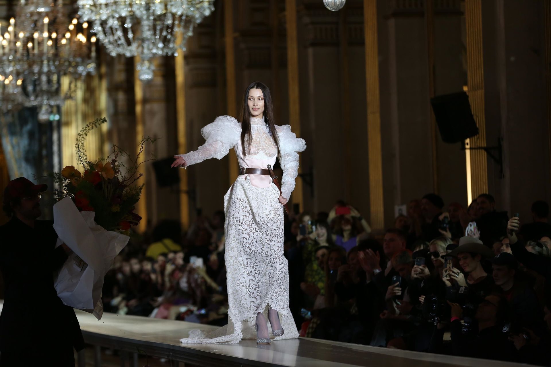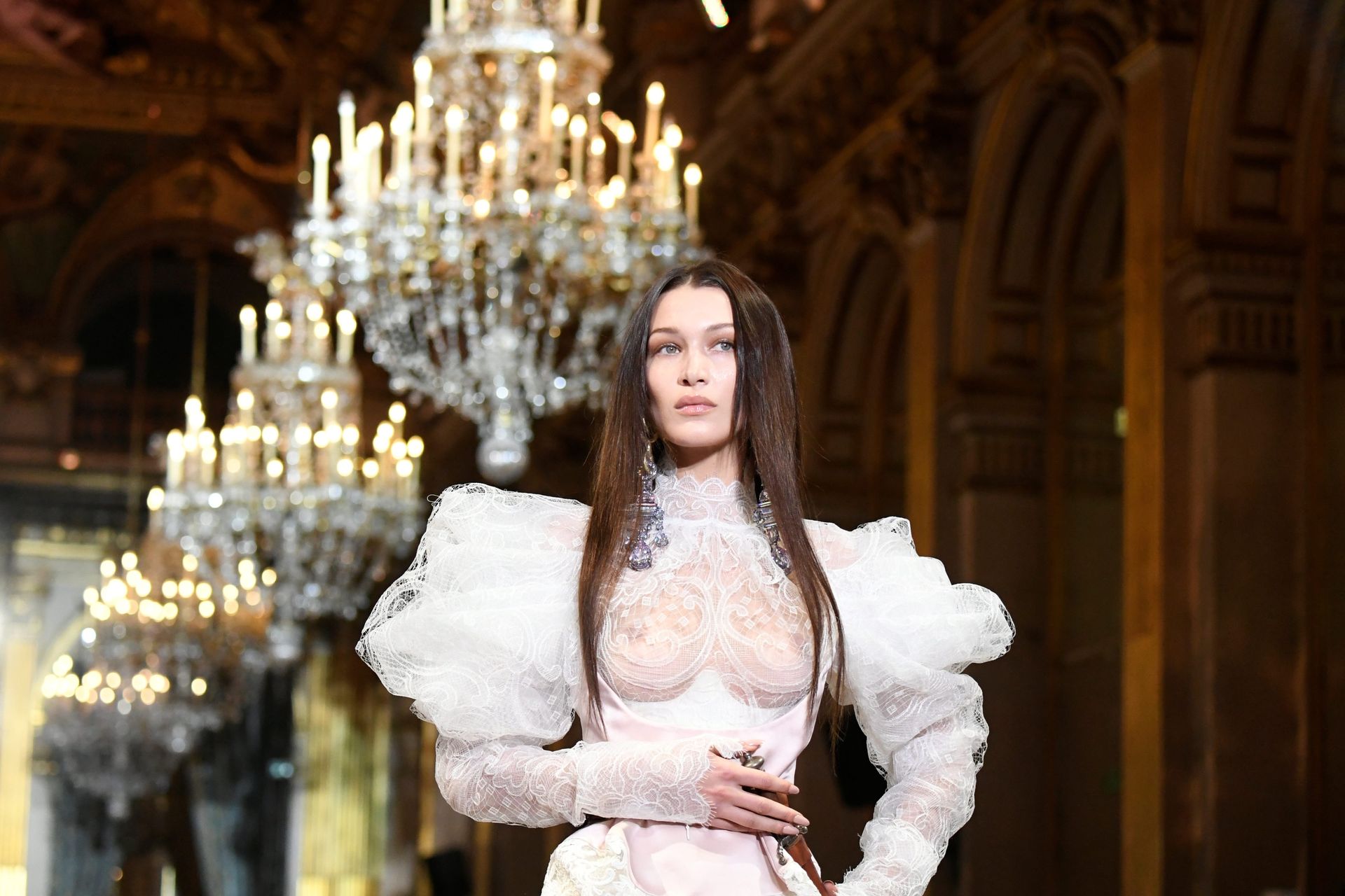 Модель Белла Хадид была замечена без бюстгальтера, выходя на подиум на показе мод Vivienne Westwood во время Недели моды в Париже, 29.02.2020. Белла отрежет тебе яйца, если ты посмотришь на её грудь!