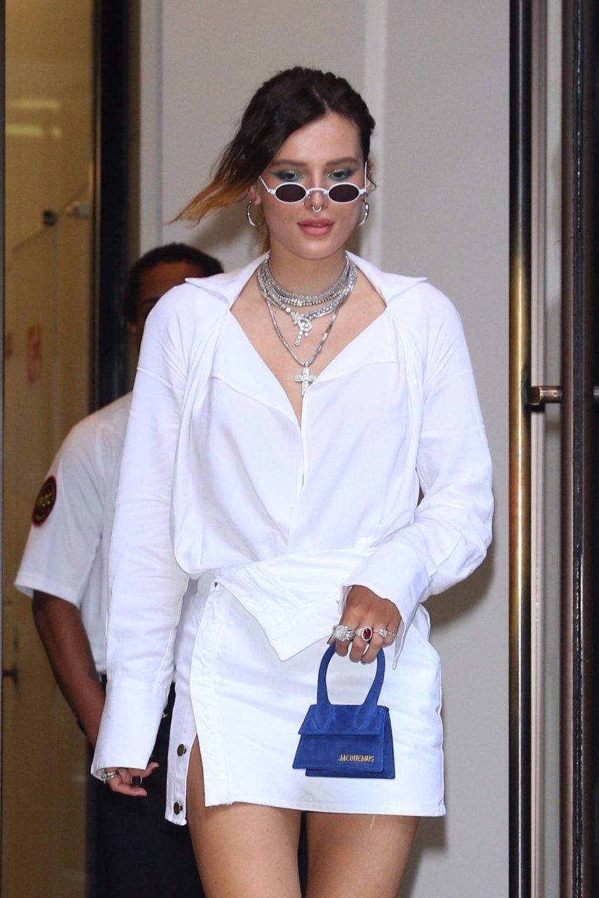 Bella Thorne позирует возле Buzzfeed в белом мини-платье с подходящими туфлями на каблуке и с мини-сумкой Jacquemus – Нью-Йорк, 14.06.2019. Похоже, она решила побрить ноги. Посмотрите новые ню Беллы здесь.