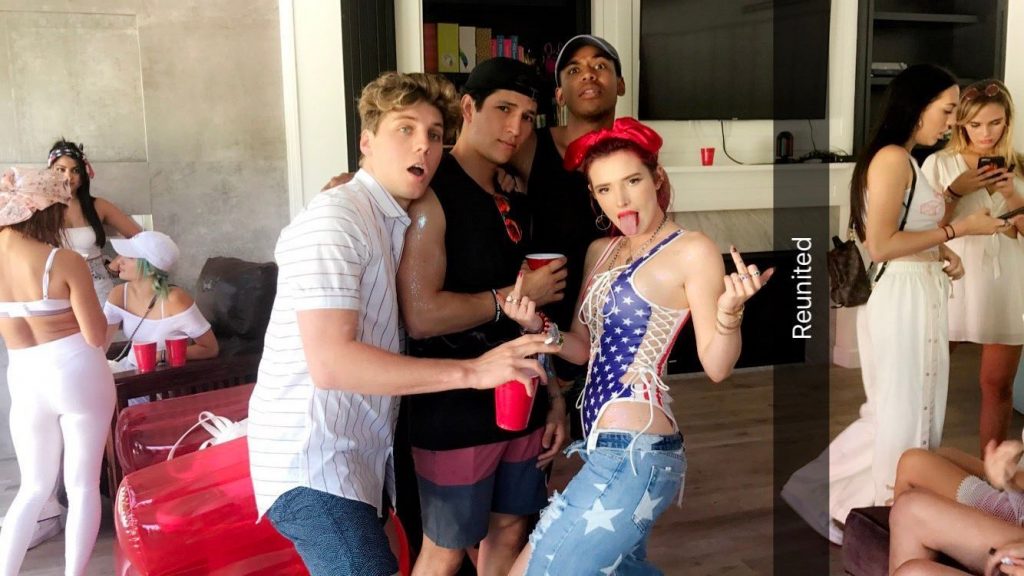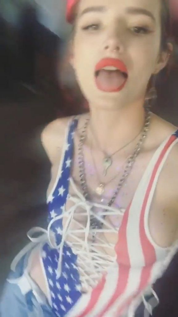 Белла Торн носит сексуальный патриотичный боди на вечеринке с друзьями – Snapchat, 07/04/2017. Белла Торн — модель, актриса (Be Here Now) и певица. Возраст: 19 лет.