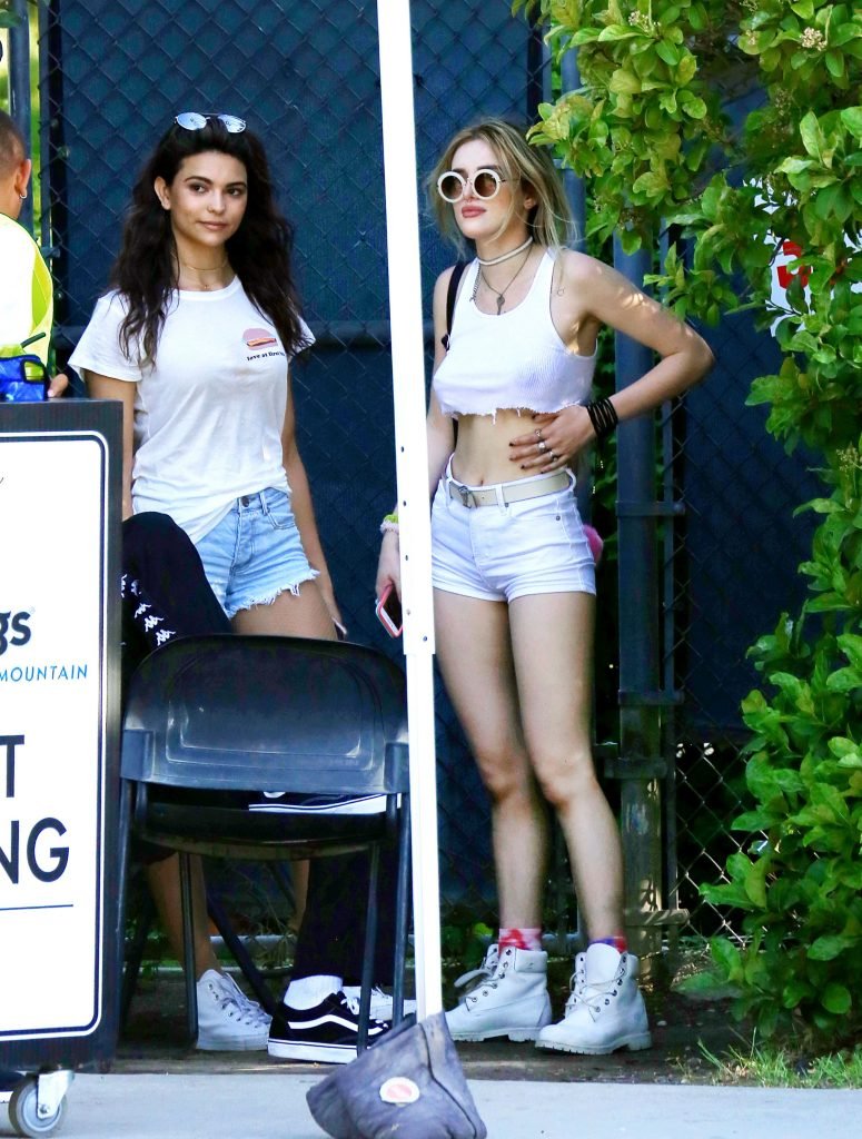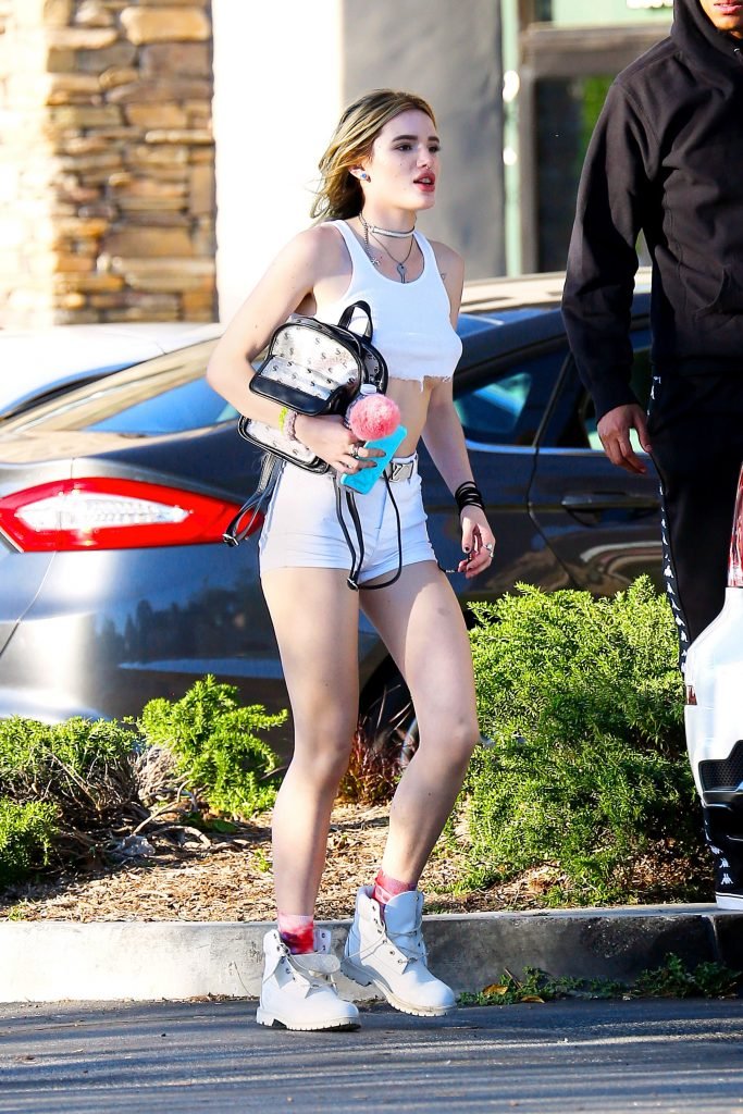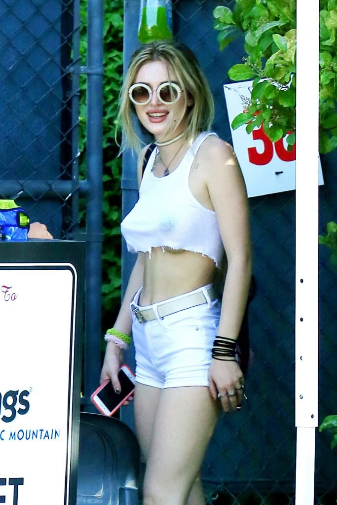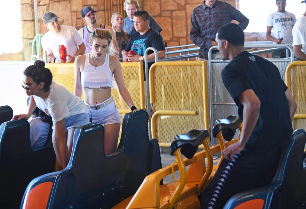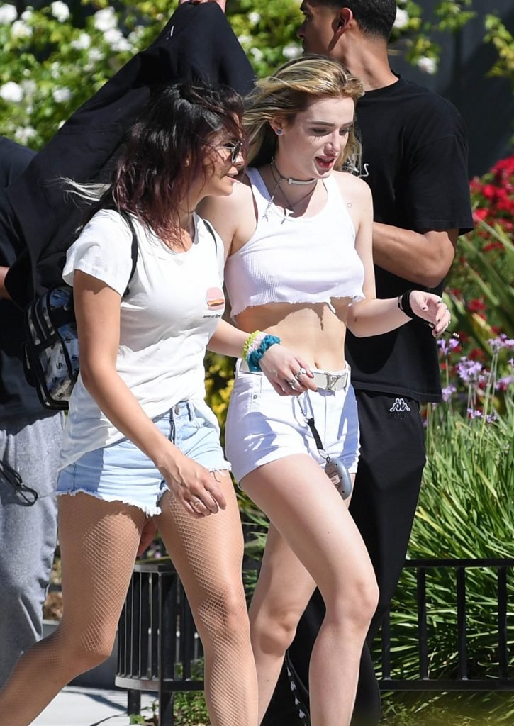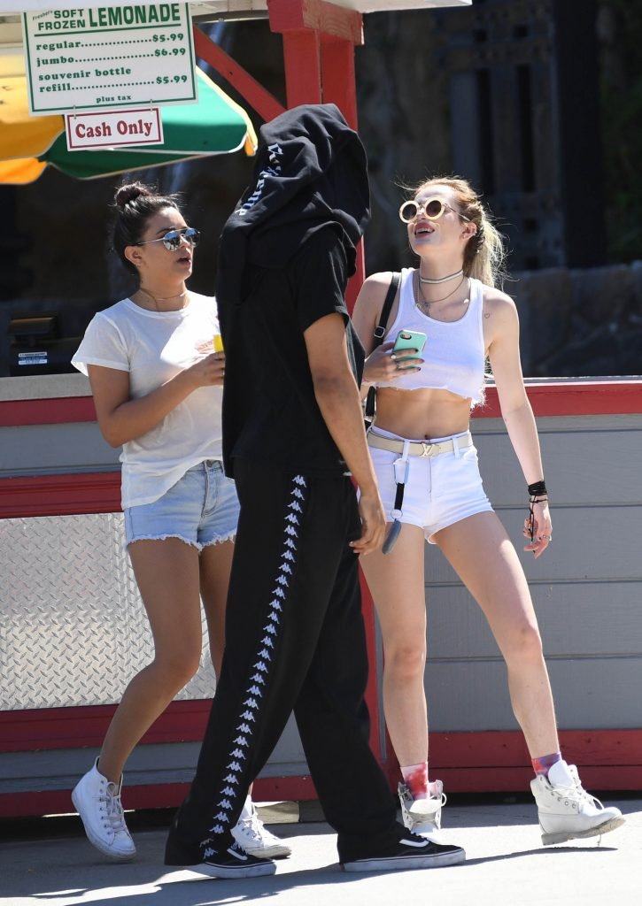 Белла Торн носит прозрачный кроп-топ в Magic Mountain в Валенсии, Калифорния, 05/05/2017. Белла Торн — певица, актриса и танцовщица из Флориды, США. Возраст – 19.