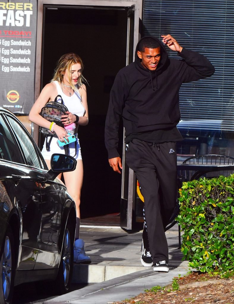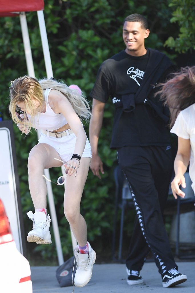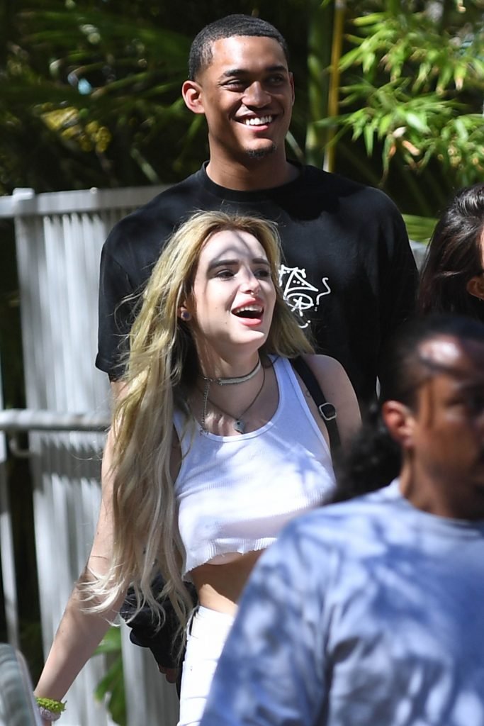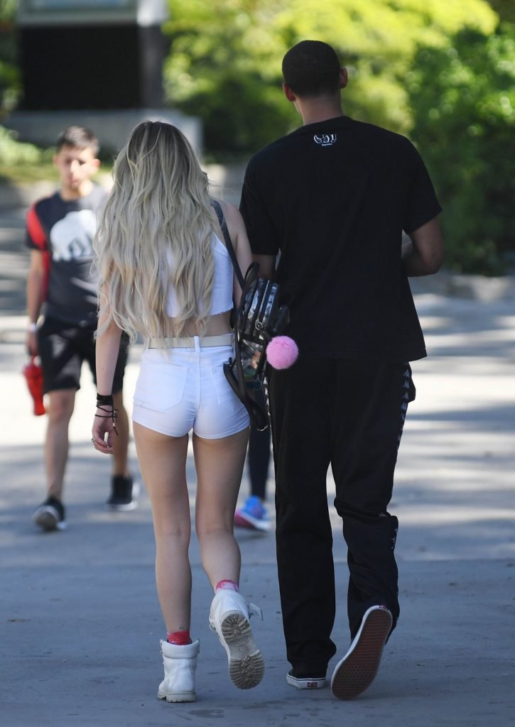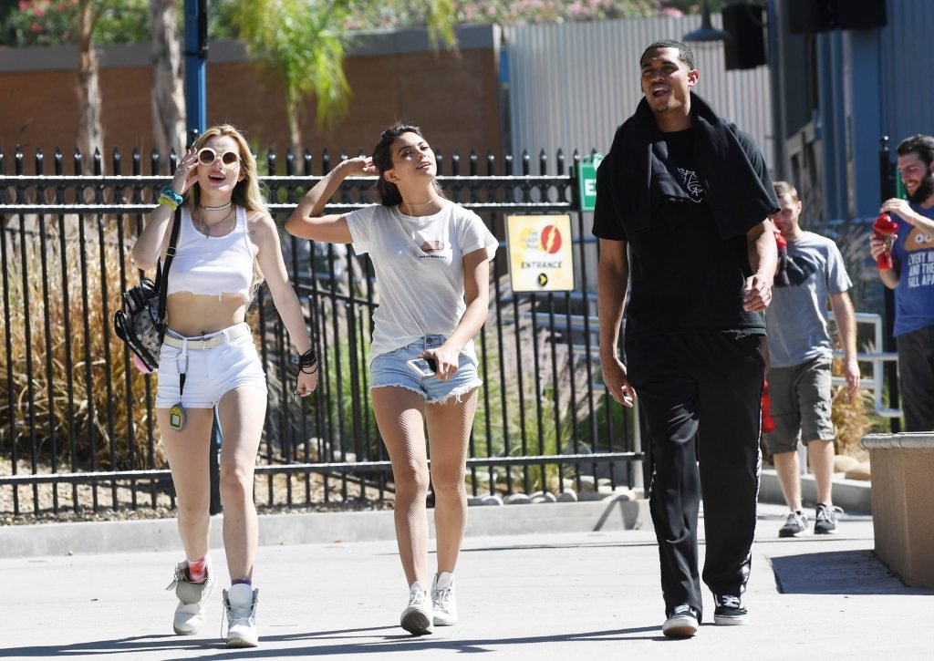 Белла Торн носит прозрачный кроп-топ в Magic Mountain в Валенсии, Калифорния, 05/05/2017. Белла Торн — певица, актриса и танцовщица из Флориды, США. Возраст – 19.