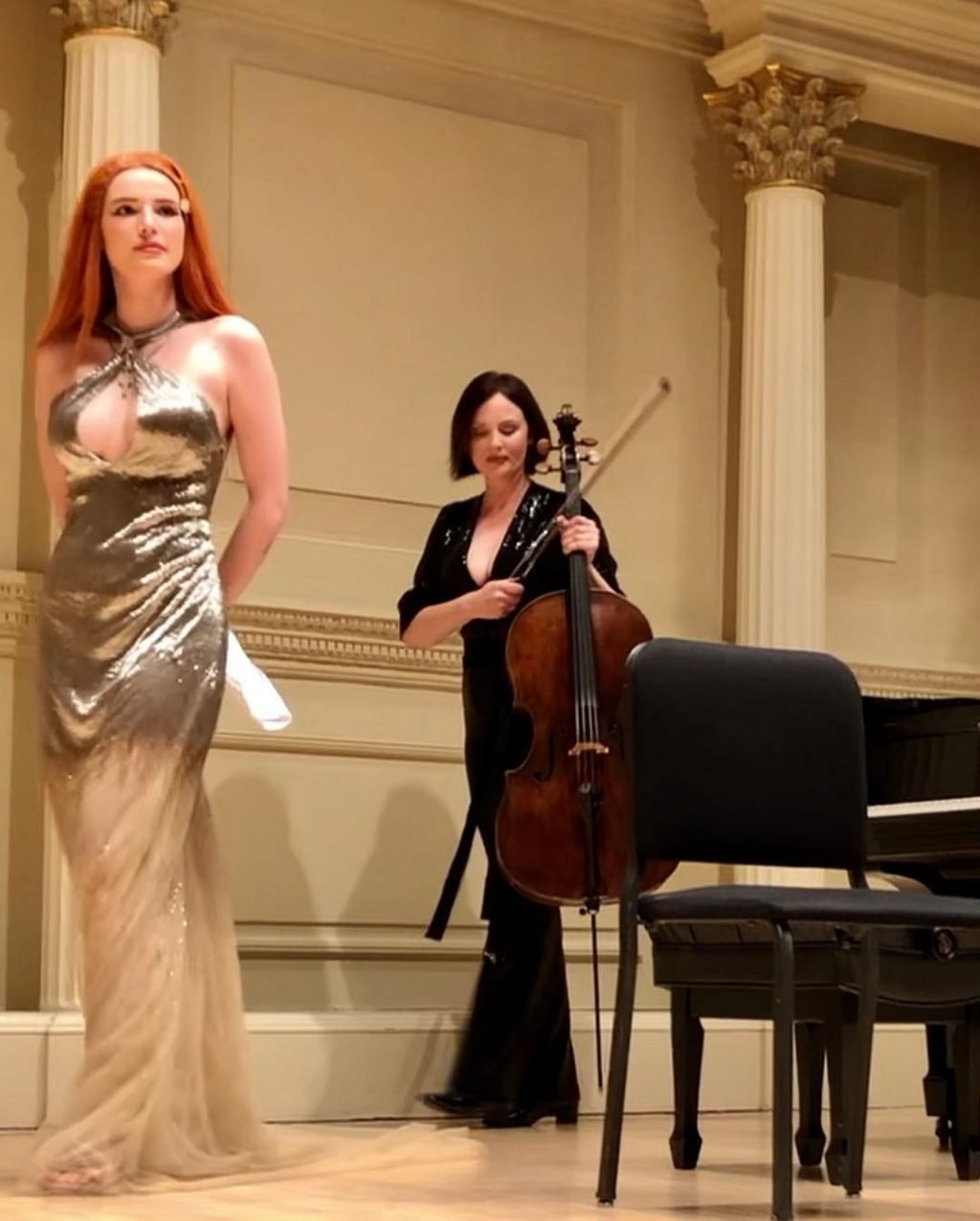 Актриса Белла Торн была замечена в элегантном золотом платье в Карнеги-холле в Нью-Йорке, 25.03.2019.