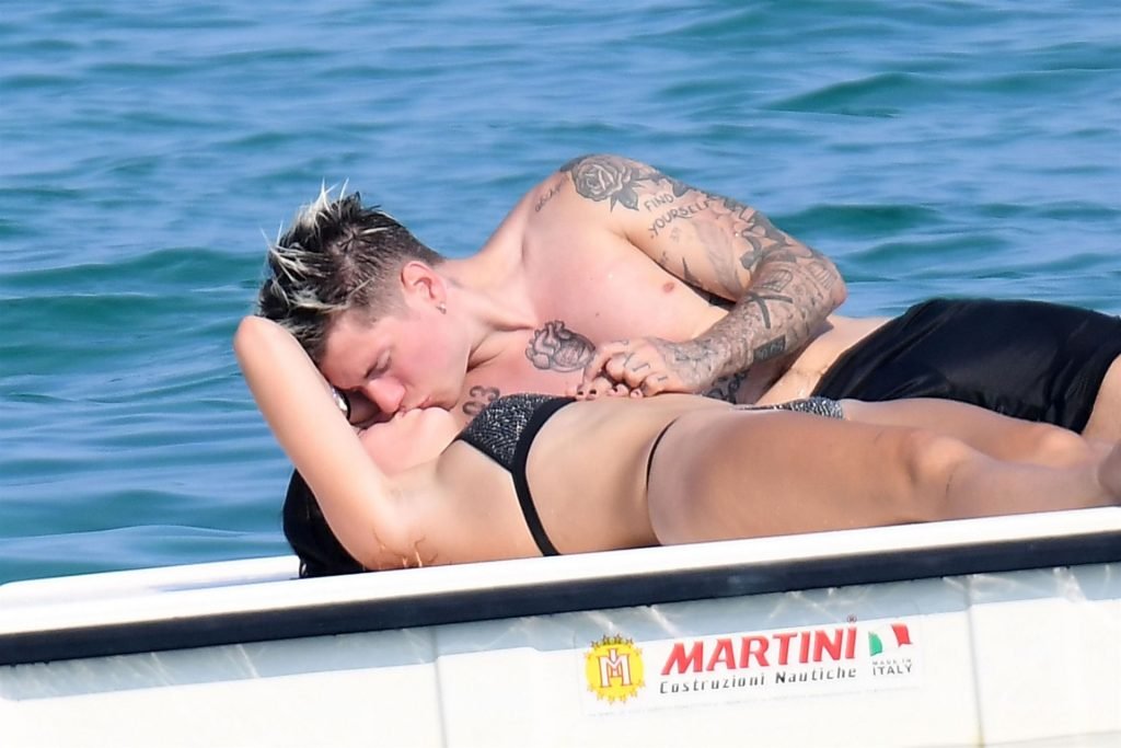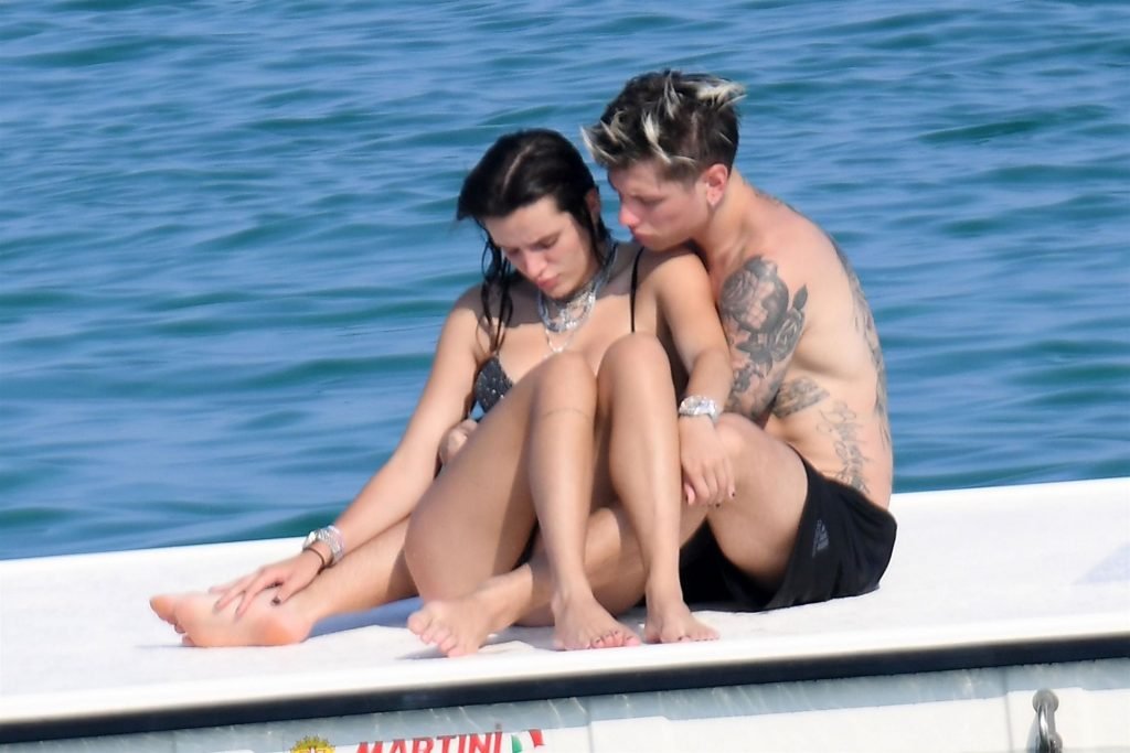 Белла Торн и Бенджамин Масколо продолжают свой наполненный любовью романтический отпуск на Сардинии, Италия, 25.08.2019. Пара демонстрировала сильные проявления чувств на публике, их можно было видеть обнимающимися и целующимися, сидя у воды.