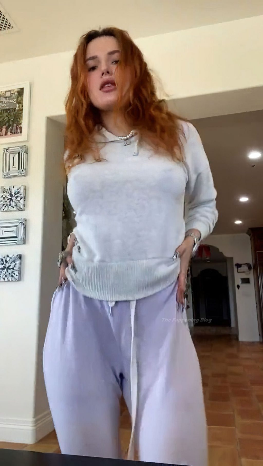 Без бюстгальтера звезда The Fappening Белла Торн демонстрирует грудь с проколотыми сосками и трясет своей попой в прямом эфире Instagram, 03/04/2021.