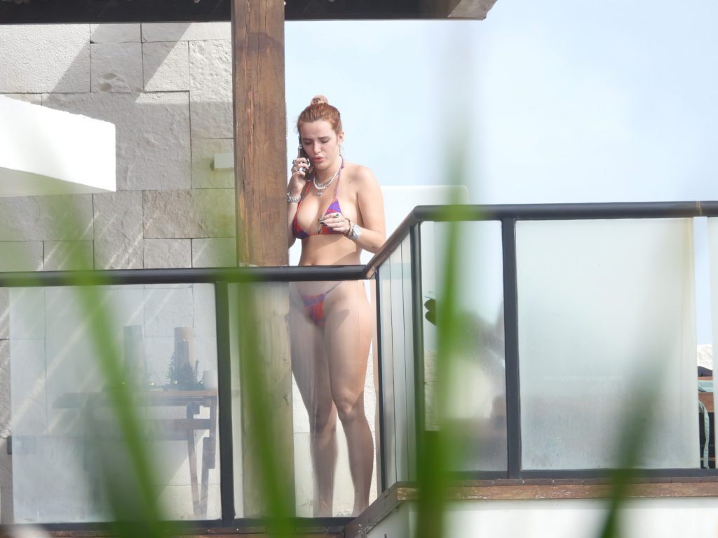 Белла Торн демонстрирует свою завидную фигуру в бикини, отдыхая у бассейна в отеле в Мексике, 01.04.2021.