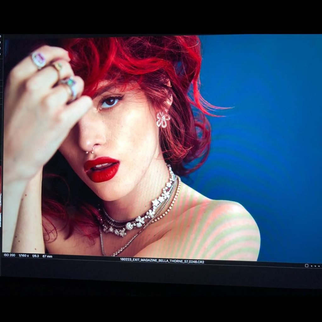 Актриса и певица Белла Торн поделилась тремя закулисными топлесс (с покрытием) фотографиями для журнала Exit и продвигает свой новый музыкальный клип в Instagram, 20.05.2018.