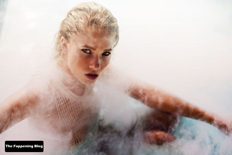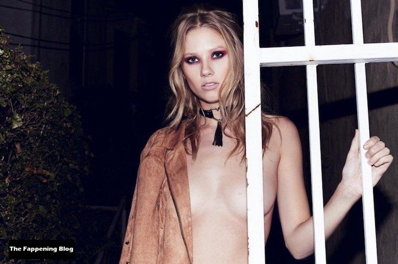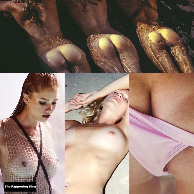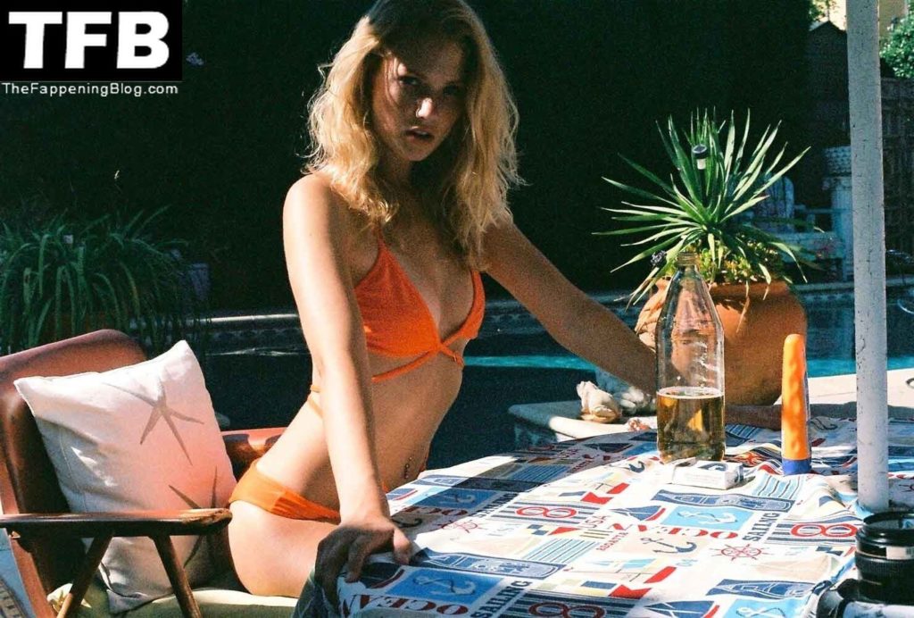 Модель Берит Биркеланд демонстрирует свои голые груди и позирует в бикини в промо-фотосессии Мэттью Комера для Drench Swim (2016).