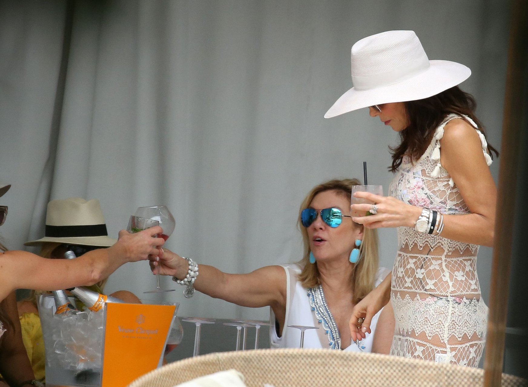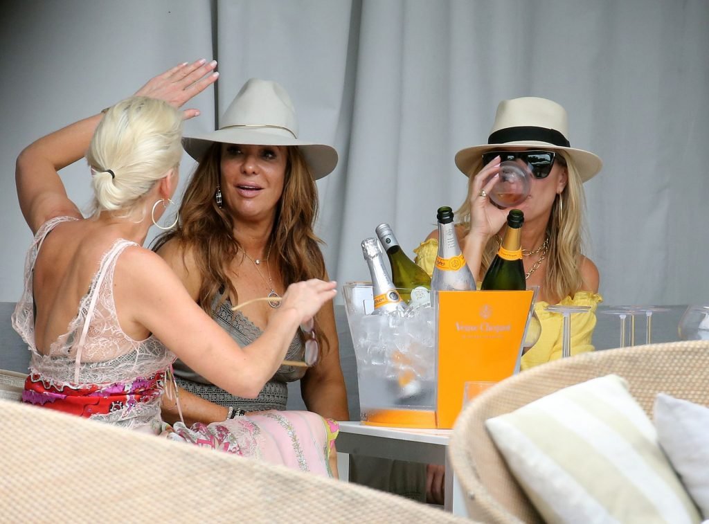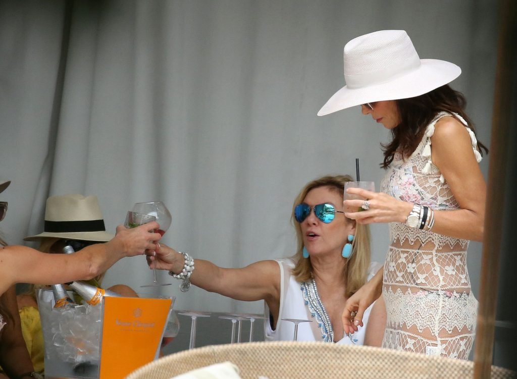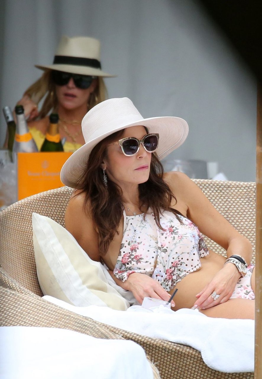 Бетенни Франкел (48) блистает в бикини, пока другие звёзды шоу «Настоящие домохозяйки» наслаждаются напитками у бассейна в Майами, 12/04/2018. Рамона Сингер и Бетенни, кажется, ведут интересную беседу, в то время как остальные пьют шампанское и вино.