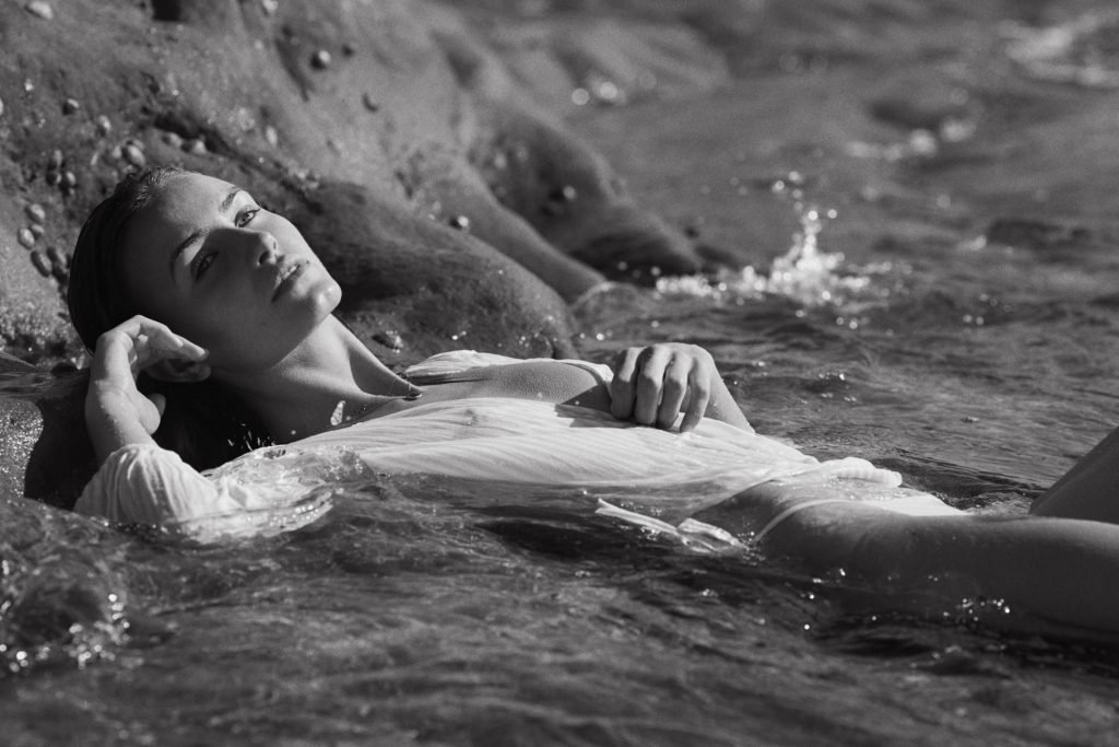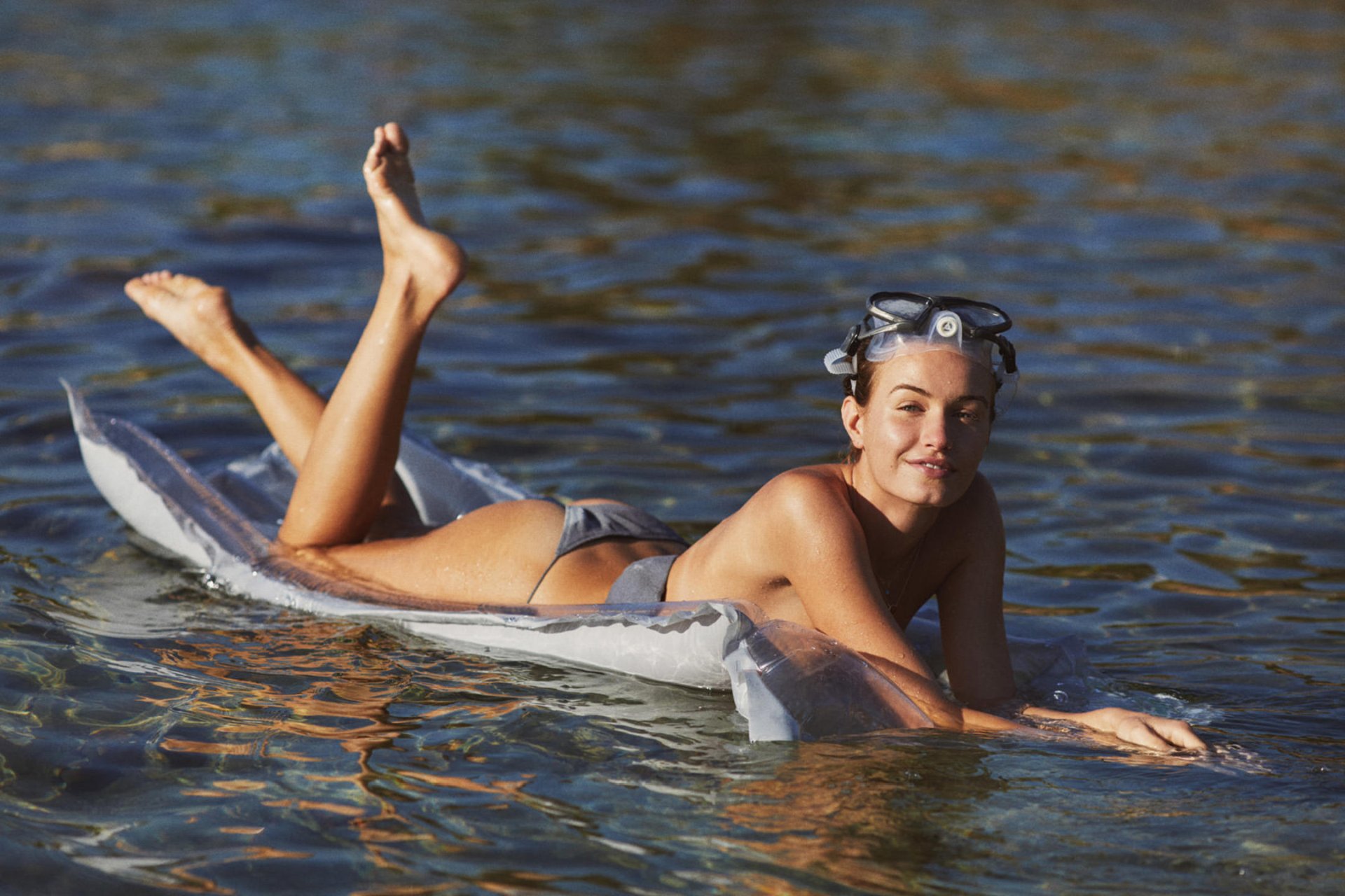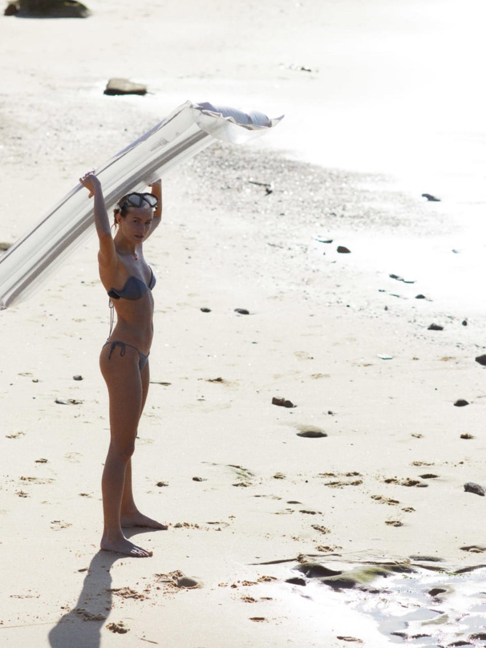 Худая девушка позировала топлес и в купальниках для горячей фотосессии. Она показала свои маленькие груди, стройные загорелые ноги и попу.