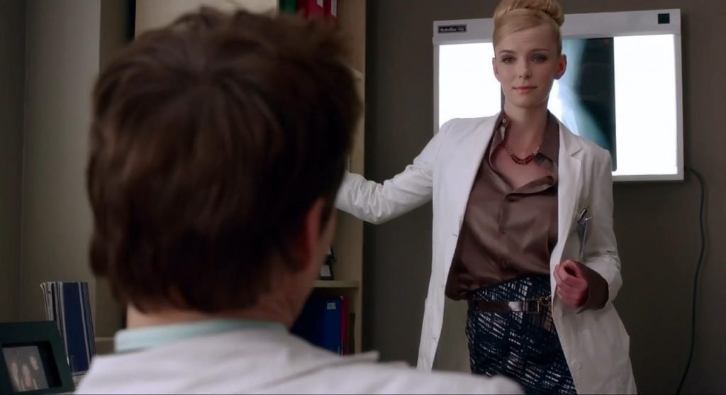 Красивая, но она должна иметь возможность позволить себе больше одного бюстгальтера. Она носит один и тот же в каждой сцене, которую мы видим.