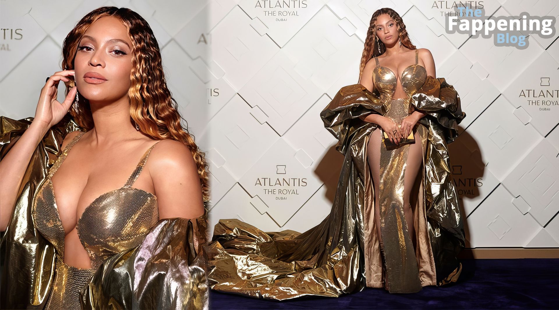 Бейонсе показывает своё декольте, посещая грандиозный уикенд открытия Atlantis The Royal в Дубае.