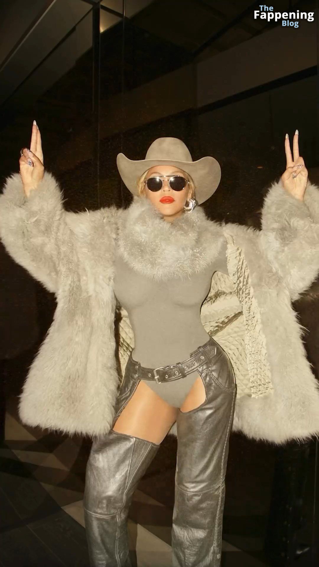 Бейонсе демонстрирует настоящий дерзкий стиль в боди-стрингах, подчеркивающем её формы, и сочетает его с огненными кожаными чапсами, не забывая про ещё одну ковбойскую шляпу на этих невероятно соблазнительных снимках.