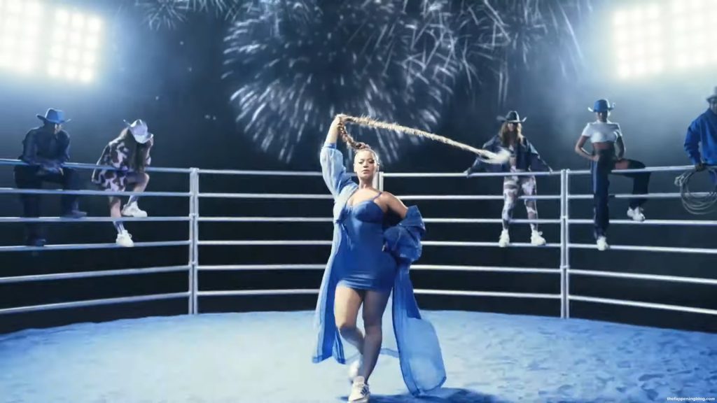 Певица Бейонсе продвигает новую коллекцию Adidas x Ivy Park, демонстрируя свои формы на ранчо вместе с другими девушками и парнями (2021).