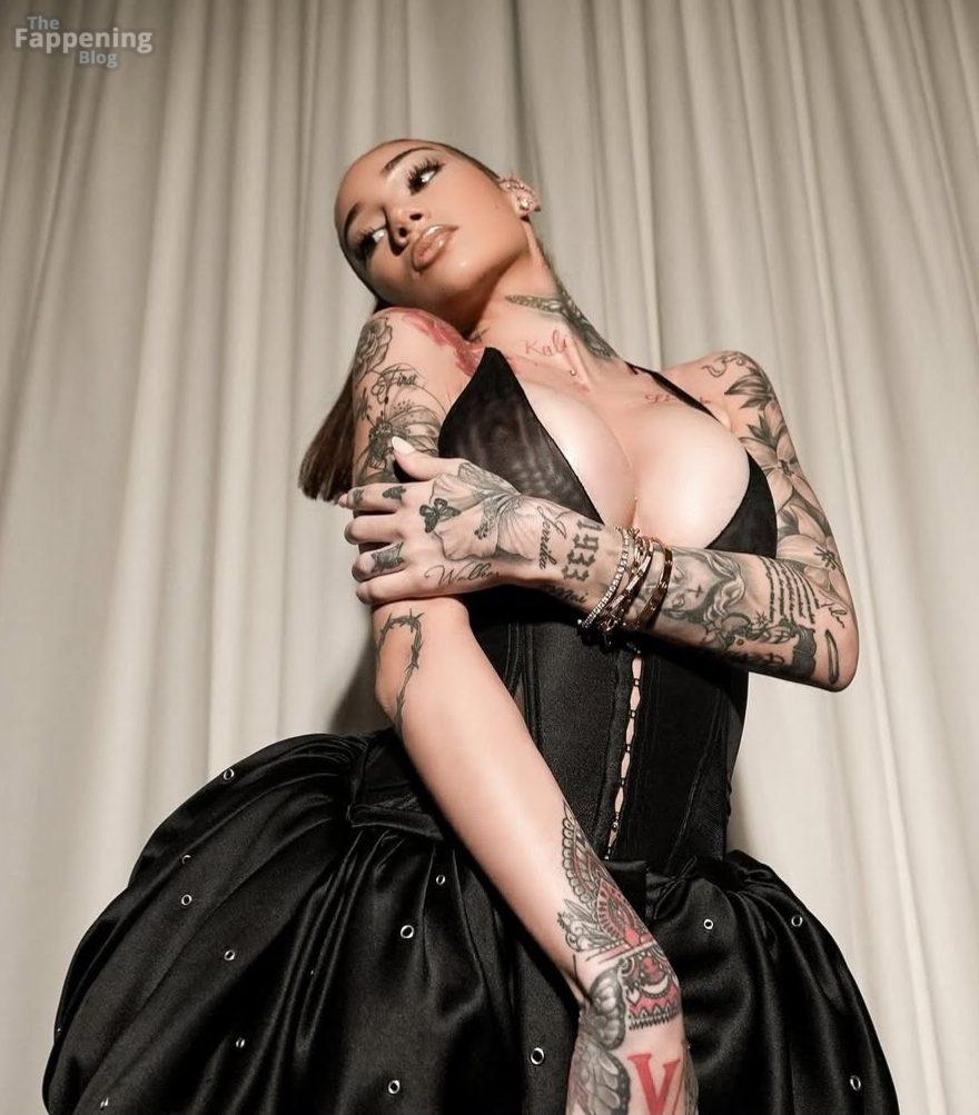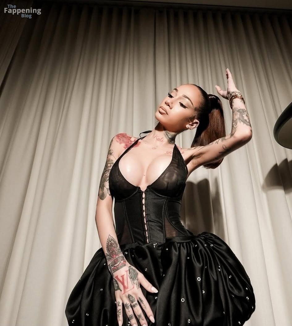 Грудь Bhad Bhabie видна в прозрачном черном корсетном платье (24 фото)