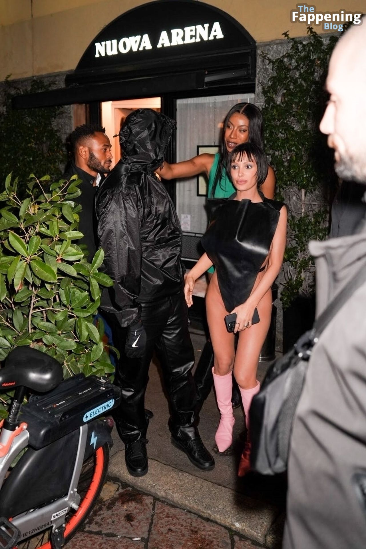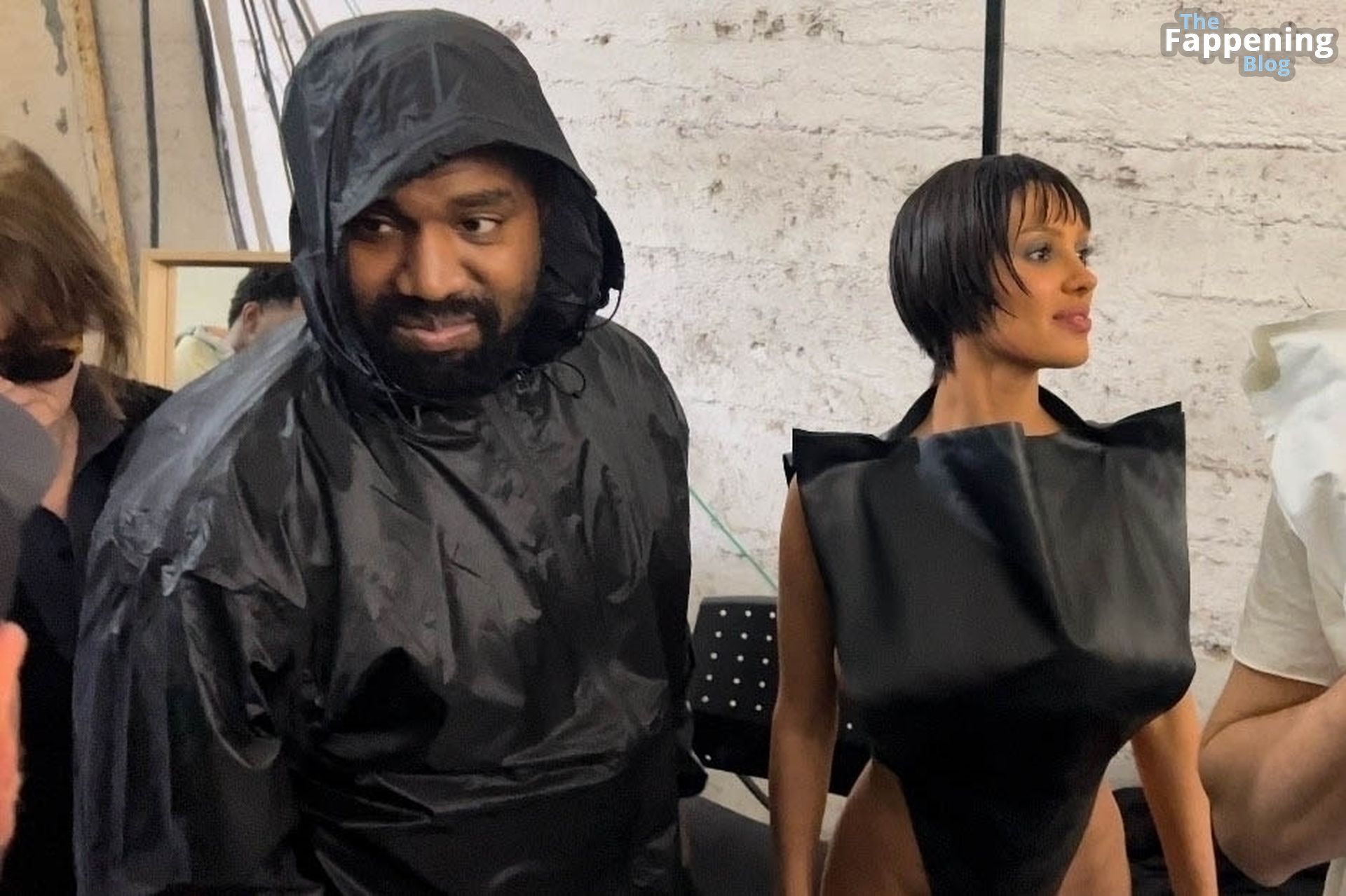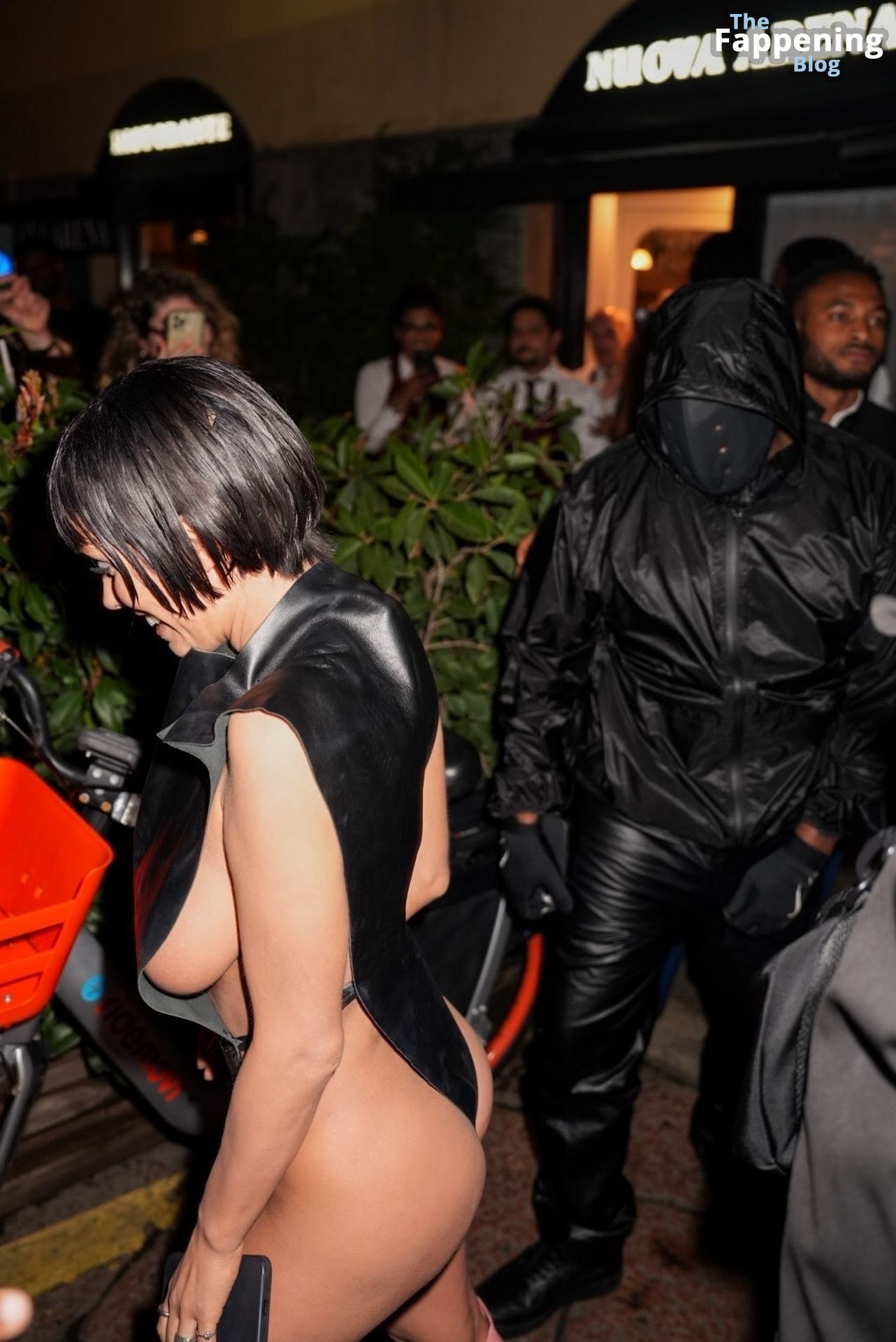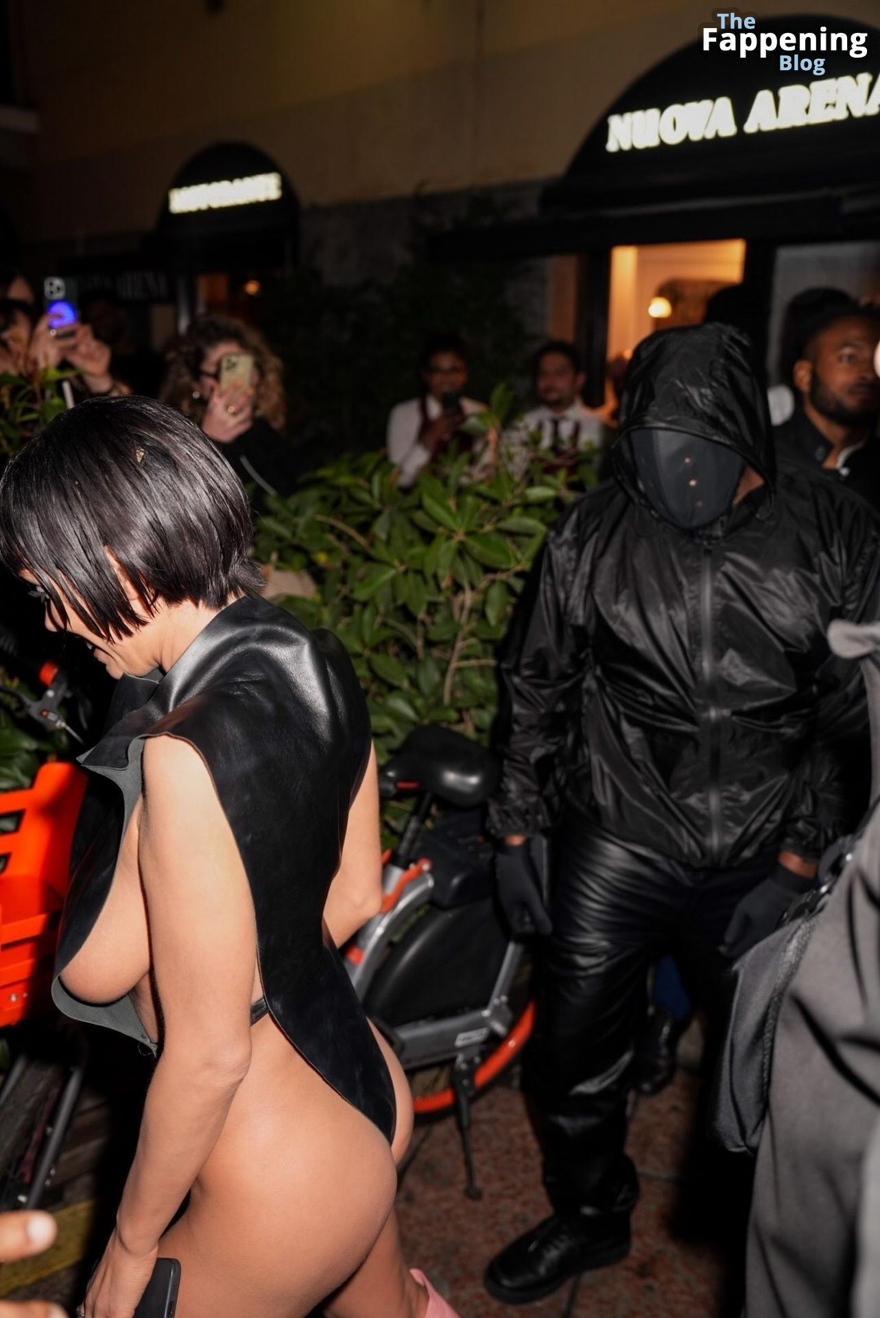 Американский рэпер Канье Уэст и Бьянка Ченсори прибыли ко входу с черного хода в ресторан Cracco в Милане.