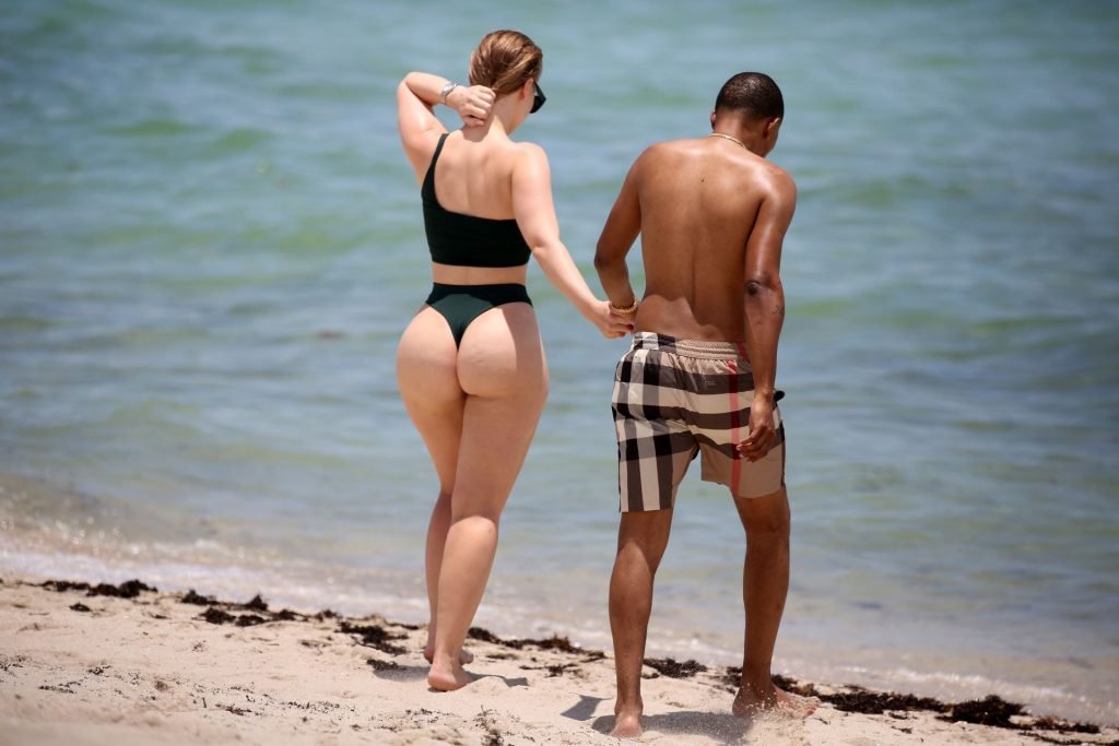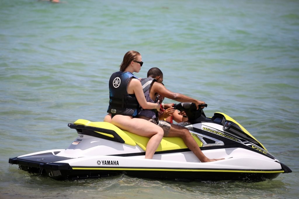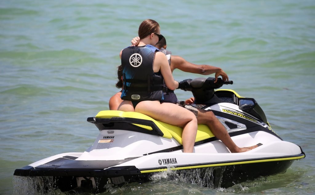 Дизайнер купальников Бьянка Элуиз демонстрирует свои изгибы в прозрачном купальнике Chanel перед поездкой на гидроцикле в Майами, 11.07.2019.