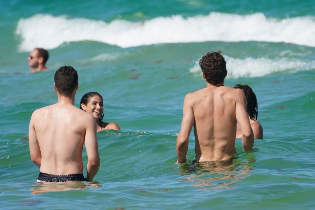 Футболист Челси пытается заигрывать с телеведущей Бьянкой Питерс на пляже в Майами-Бич, 20.05.2019. Маркос и его друзья подошли к Бьянке и её подруге в океане, но девушки, похоже, остались равнодушны и ушли без Маркоса.