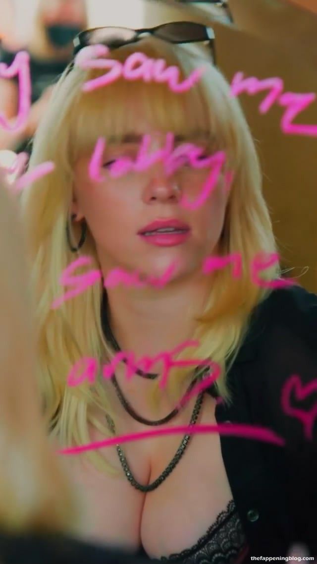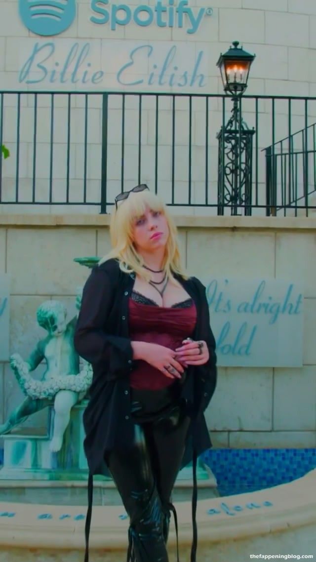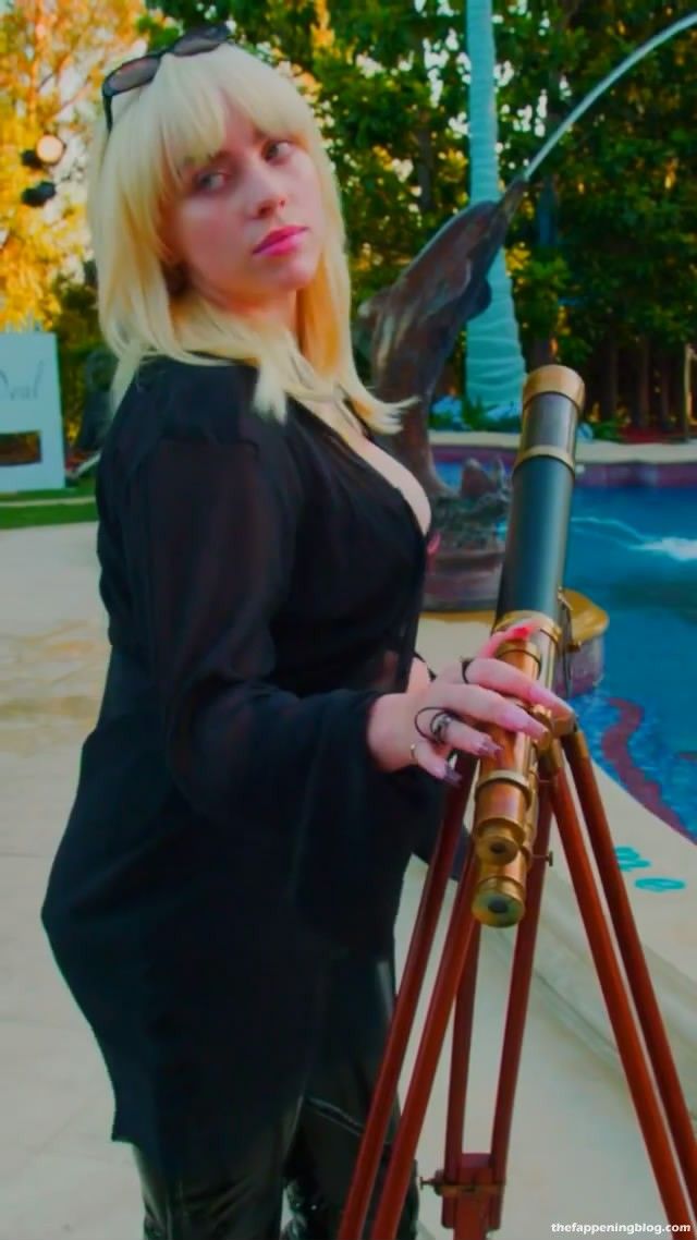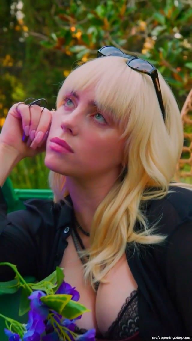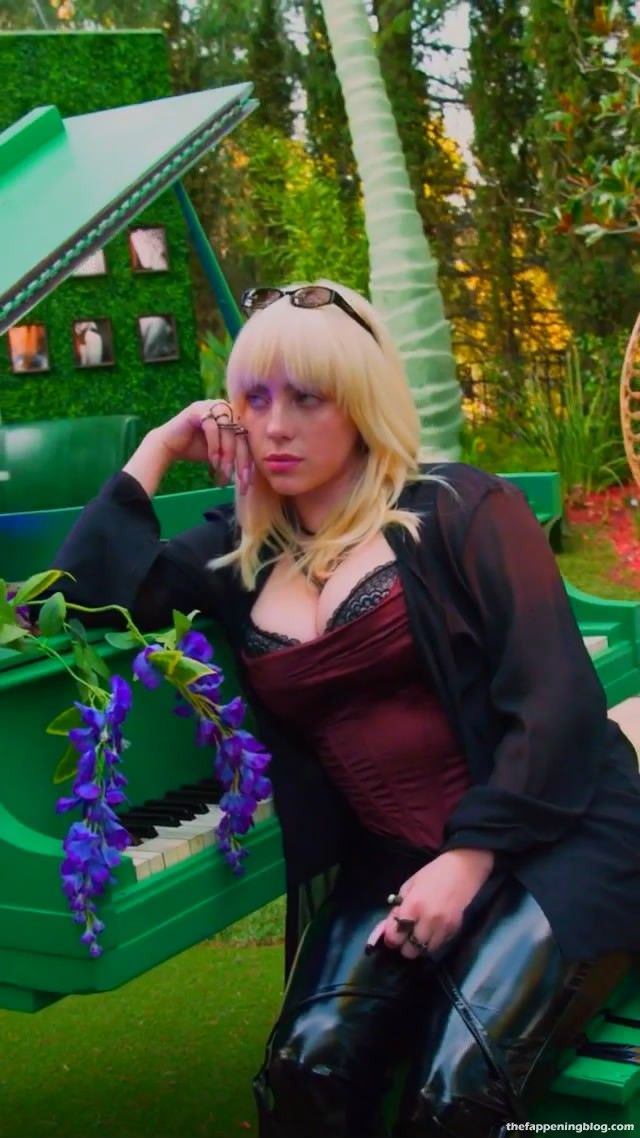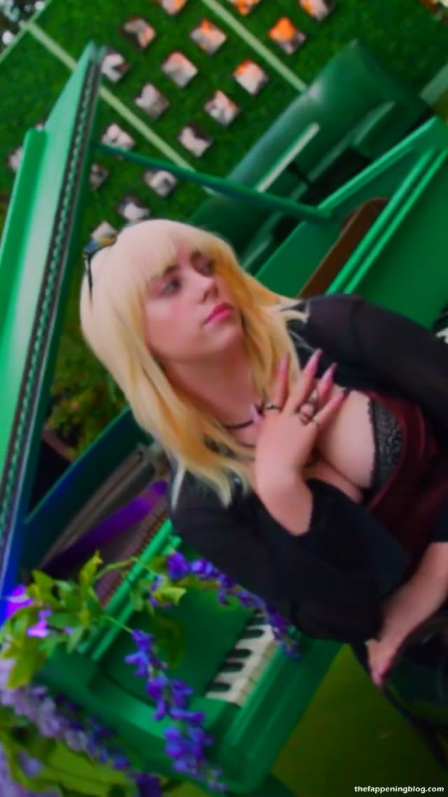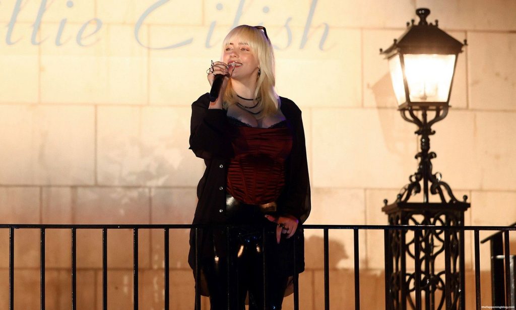 Молодая певица Билли Айлиш покачивает своими большими грудями в кружевном бюстгальтере на вечеринке по случаю выхода её альбома “Happier Than Ever” в Лос-Анджелесе в фотогалерее и видеоклипах ниже.