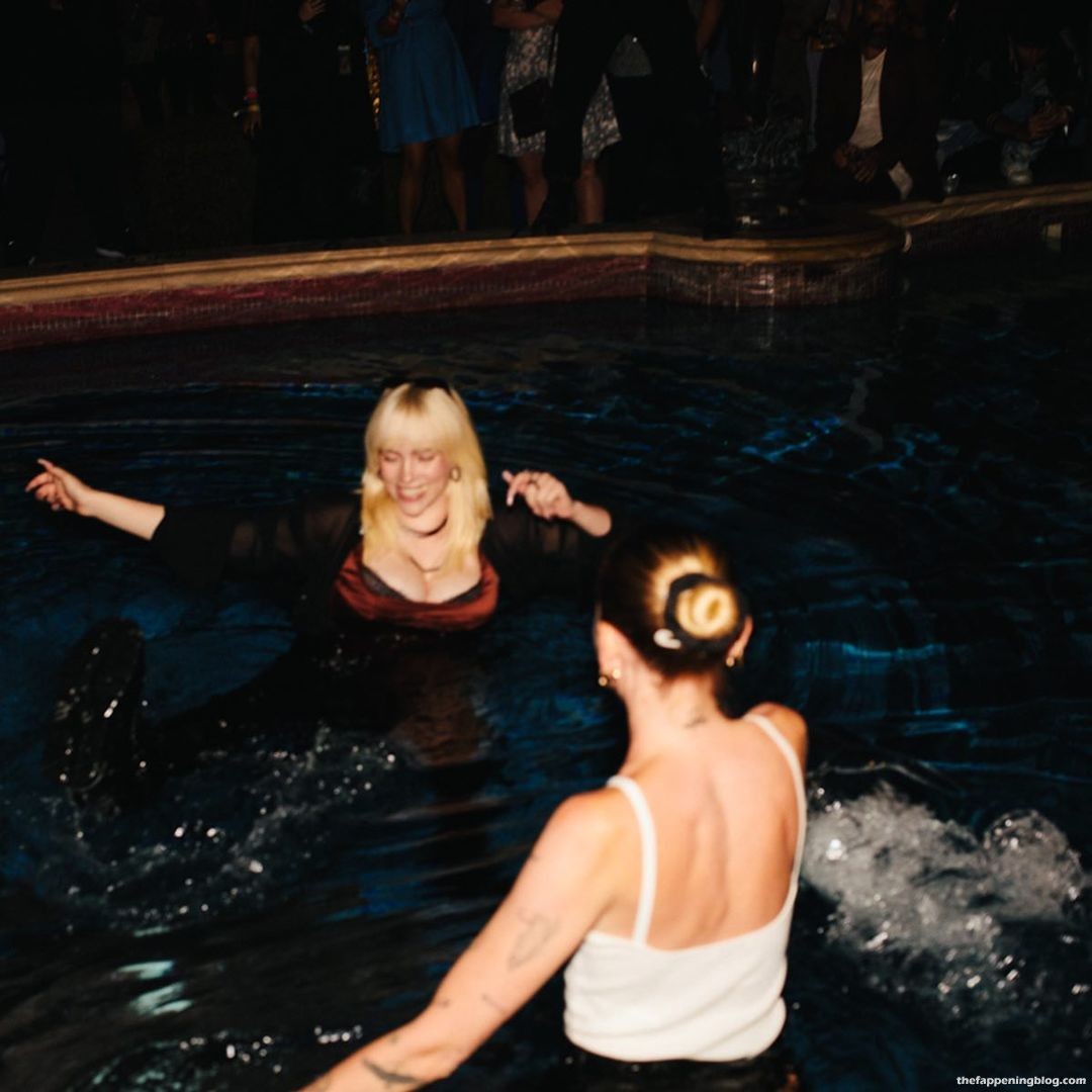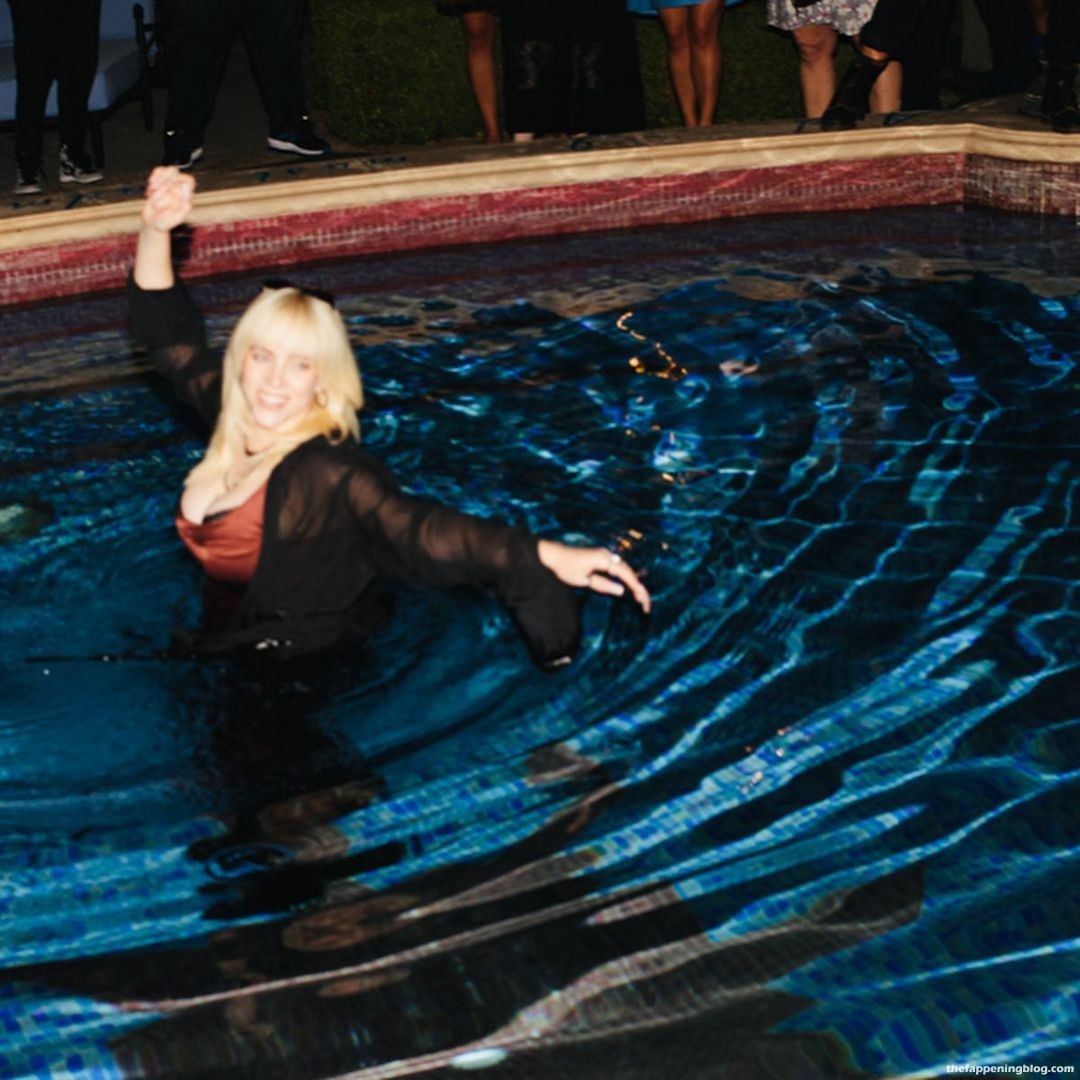 Певица Билли Айлиш наслаждается вечеринкой, демонстрируя декольте в бассейне – Instagram, 08/02/2021.