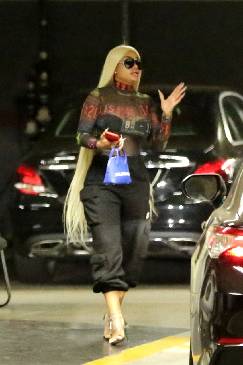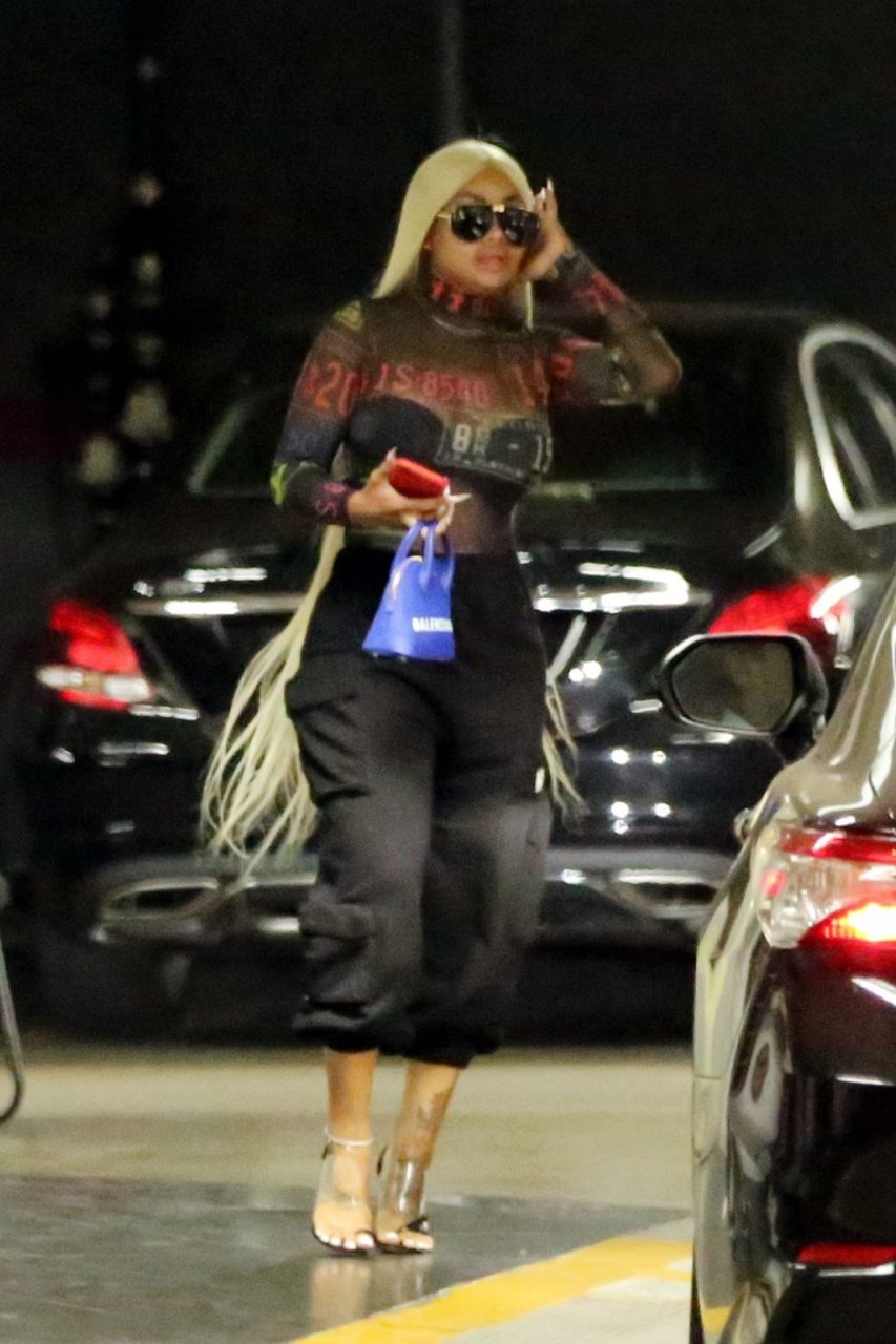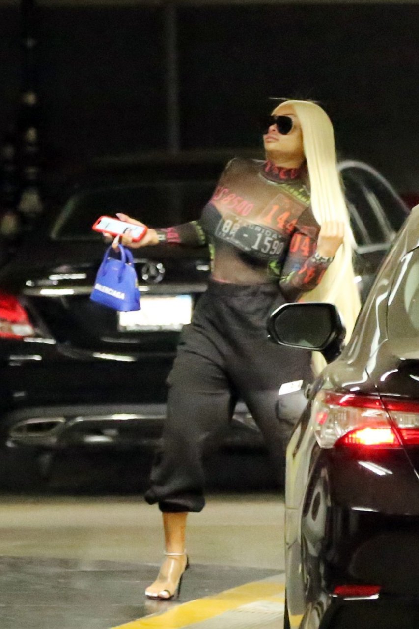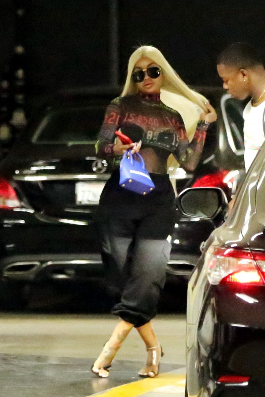 Blac Chyna была замечена с очень длинными светлыми волосами и прозрачным топом во время прогулки по Беверли-Хиллз, 06.08.2019.