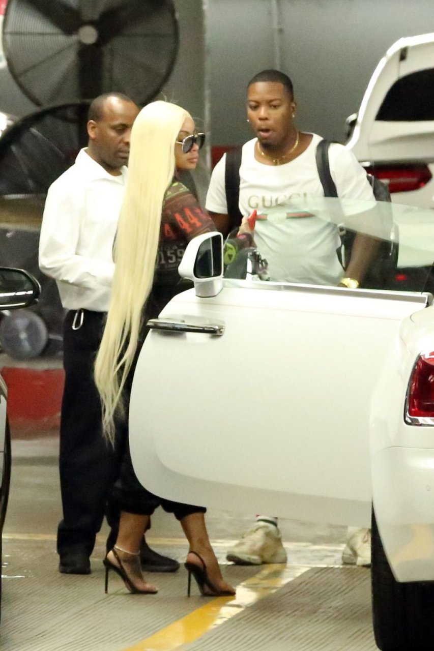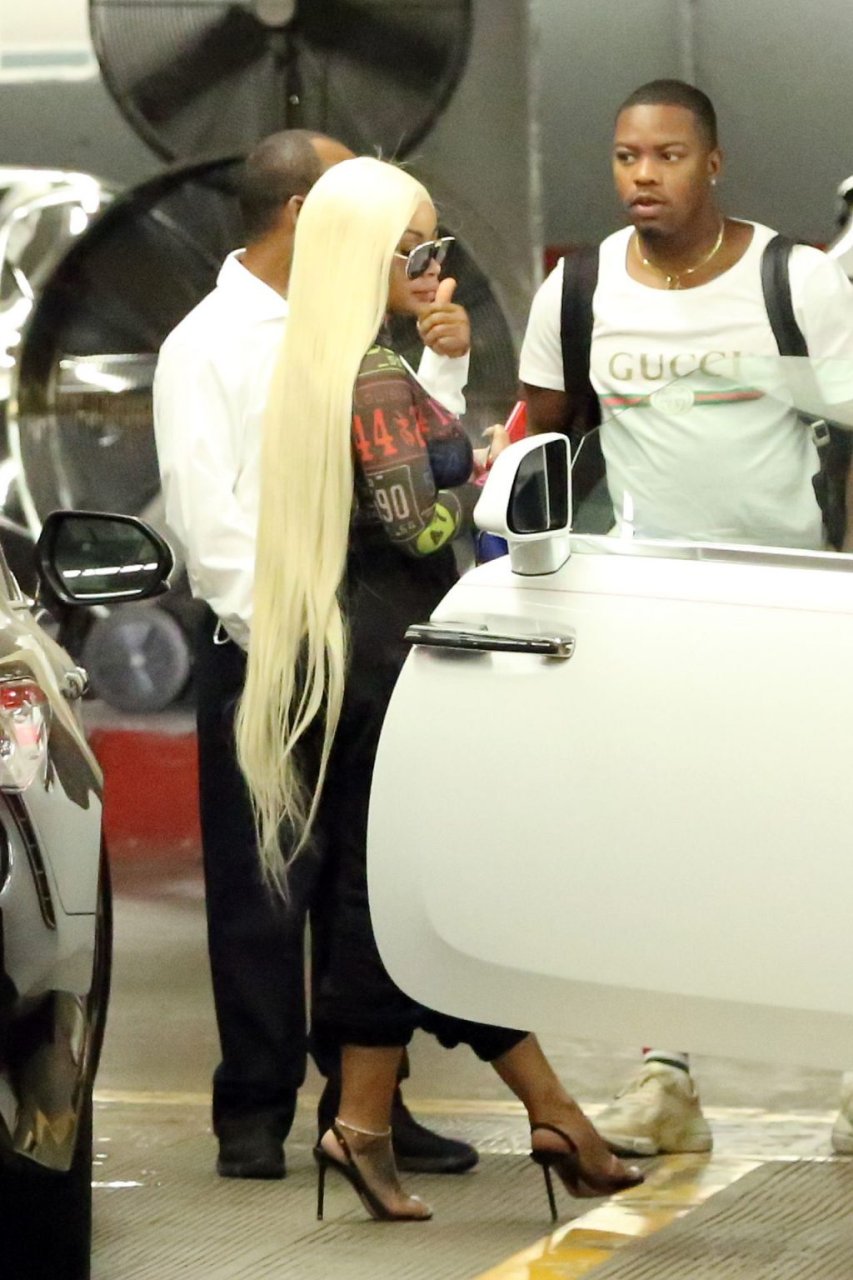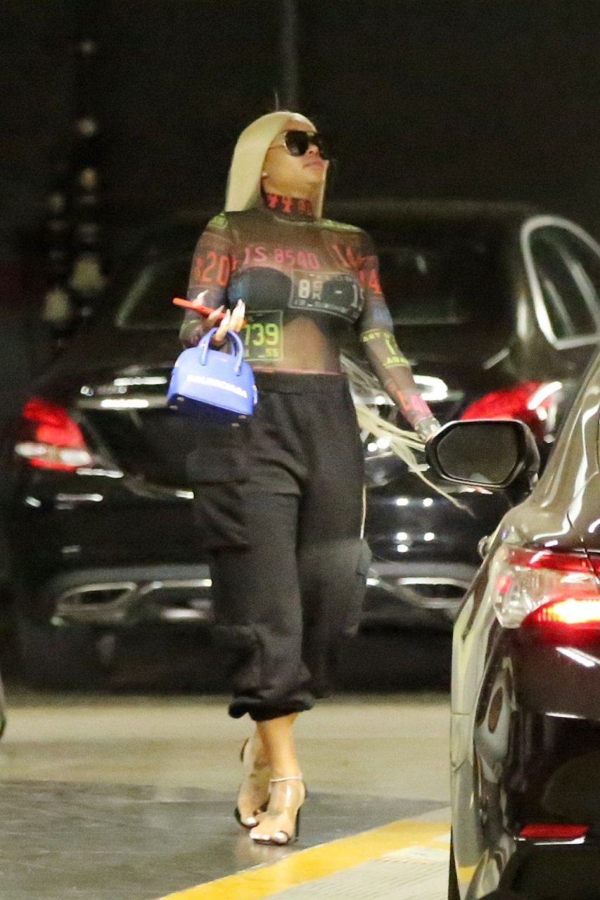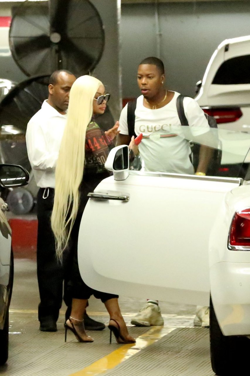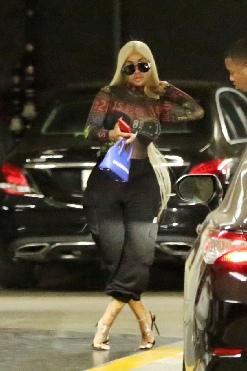 Blac Chyna была замечена с очень длинными светлыми волосами и прозрачным топом во время прогулки по Беверли-Хиллз, 06.08.2019.