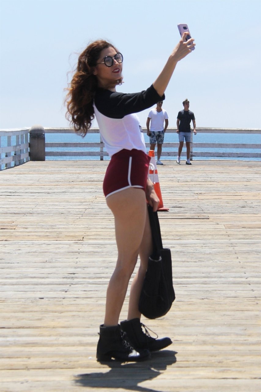 Актриса Бланка Бланко наслаждается видом и делает несколько селфи, отдыхая на пирсе в Paradise Cove в Малибу, Калифорния, 24.07.2018.
