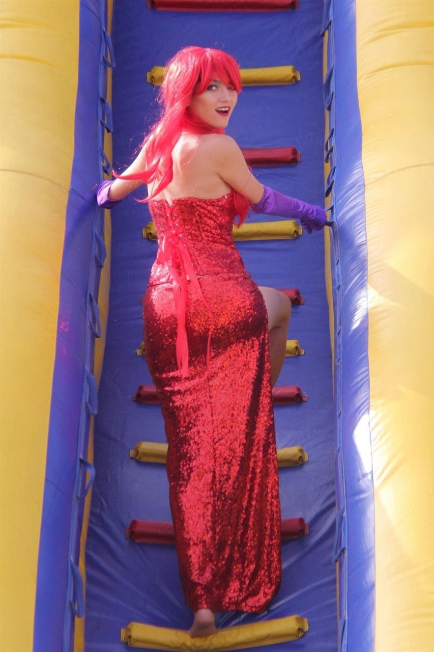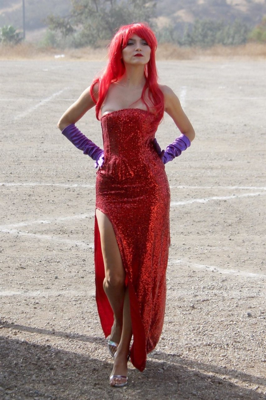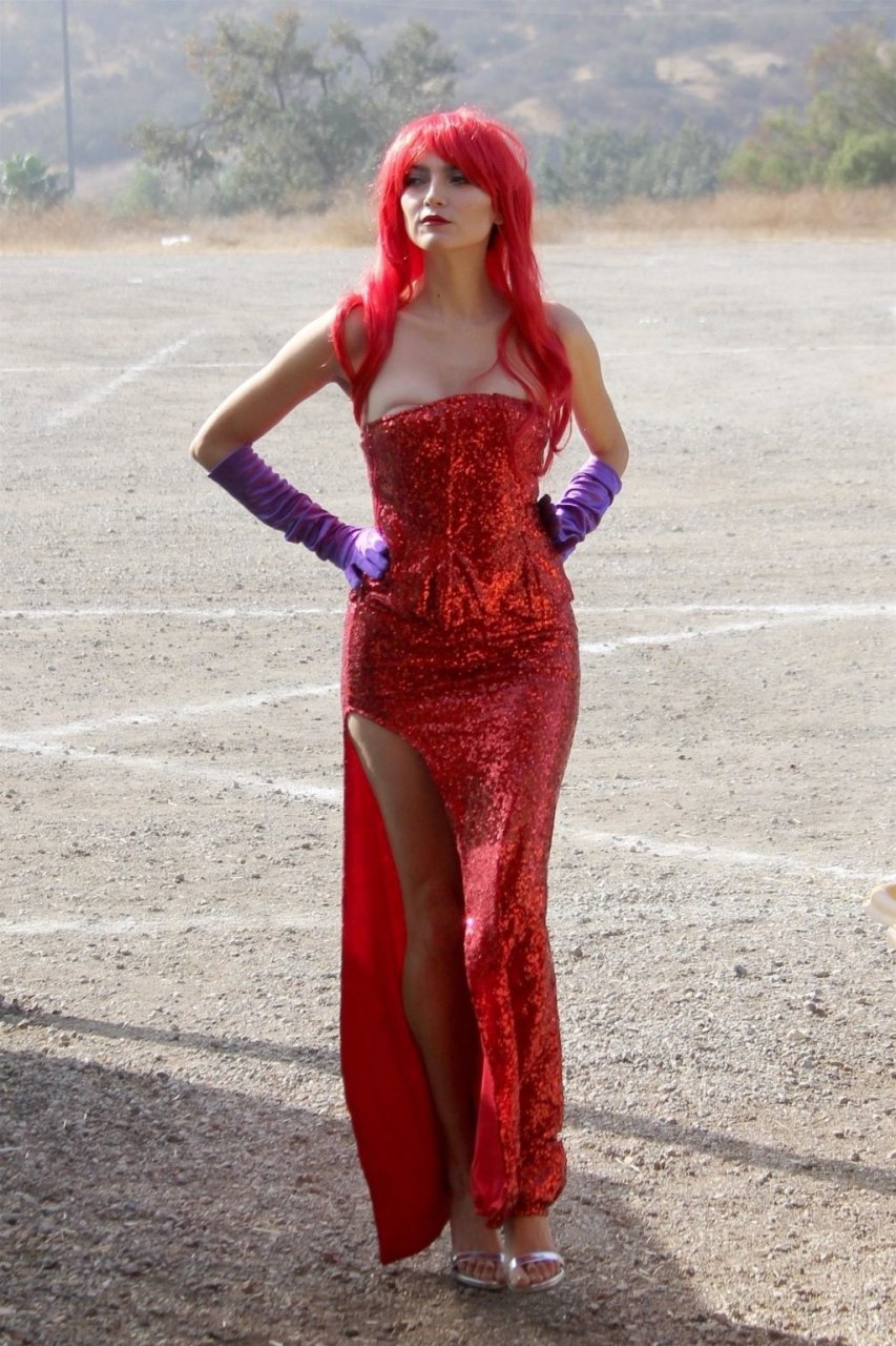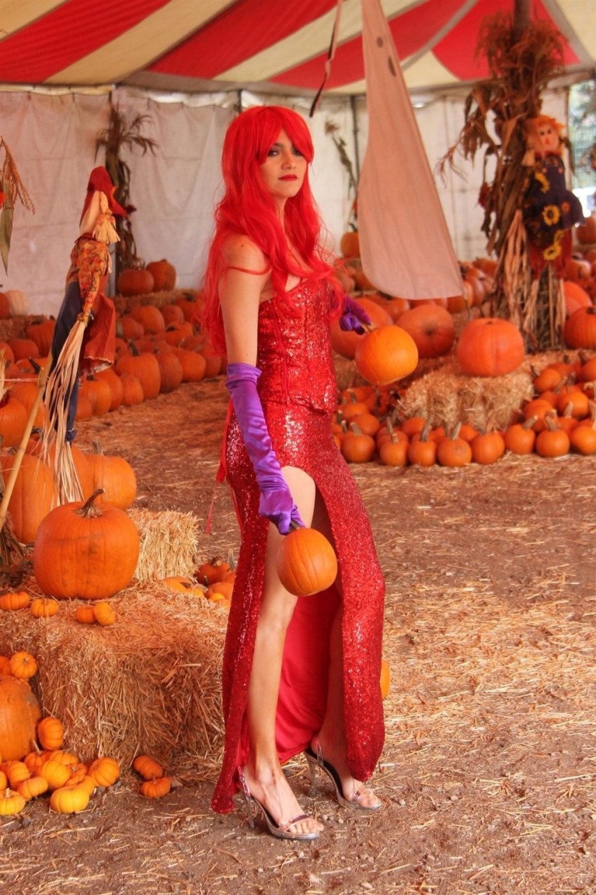 Актриса Бланка Бланко выбирает сексуальный образ, отправляясь на тыквенные поля Лос-Анджелеса в образе Джессики Рэббит в длинном красном платье и с подходящими красными волосами, 22.10.2018. Бланка проводит время, выбирая тыкву и наслаждаясь временем на надувной горке.