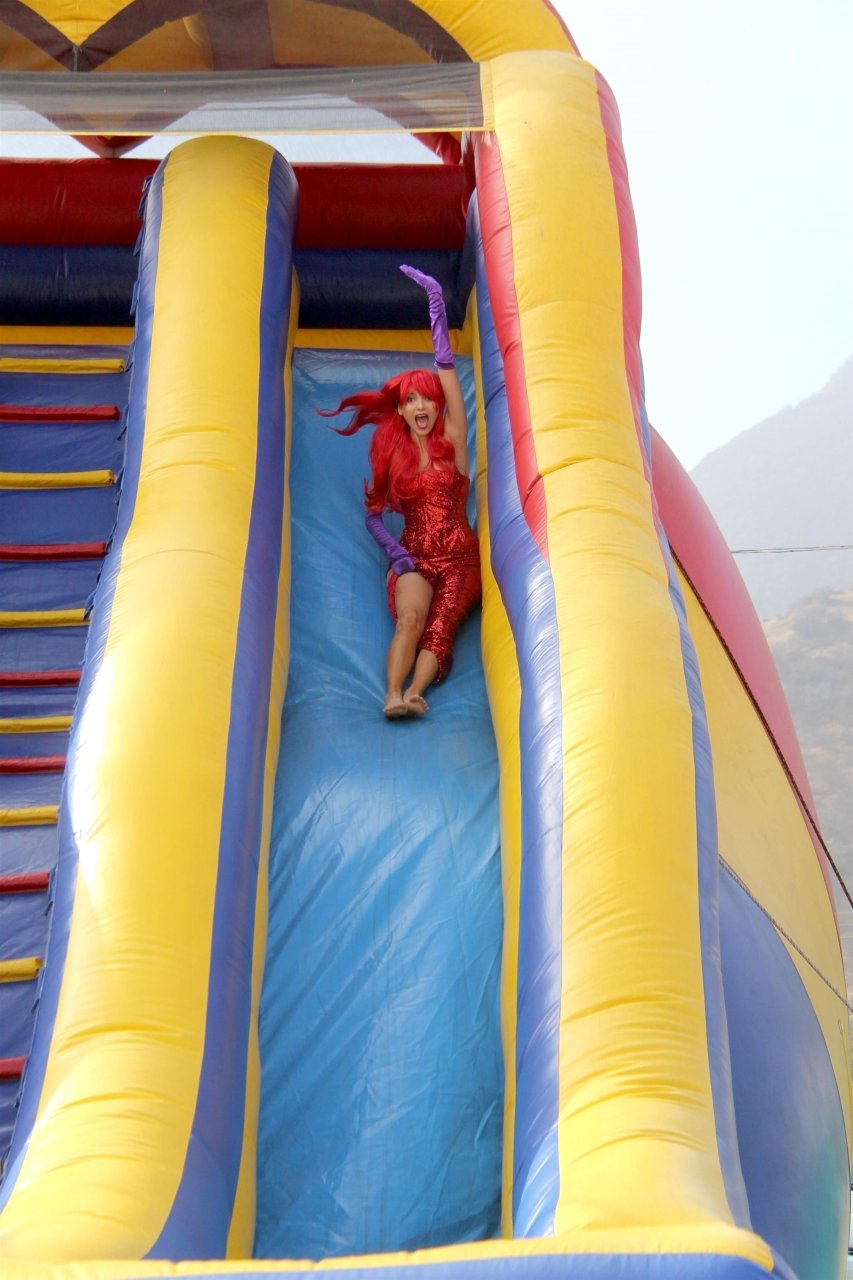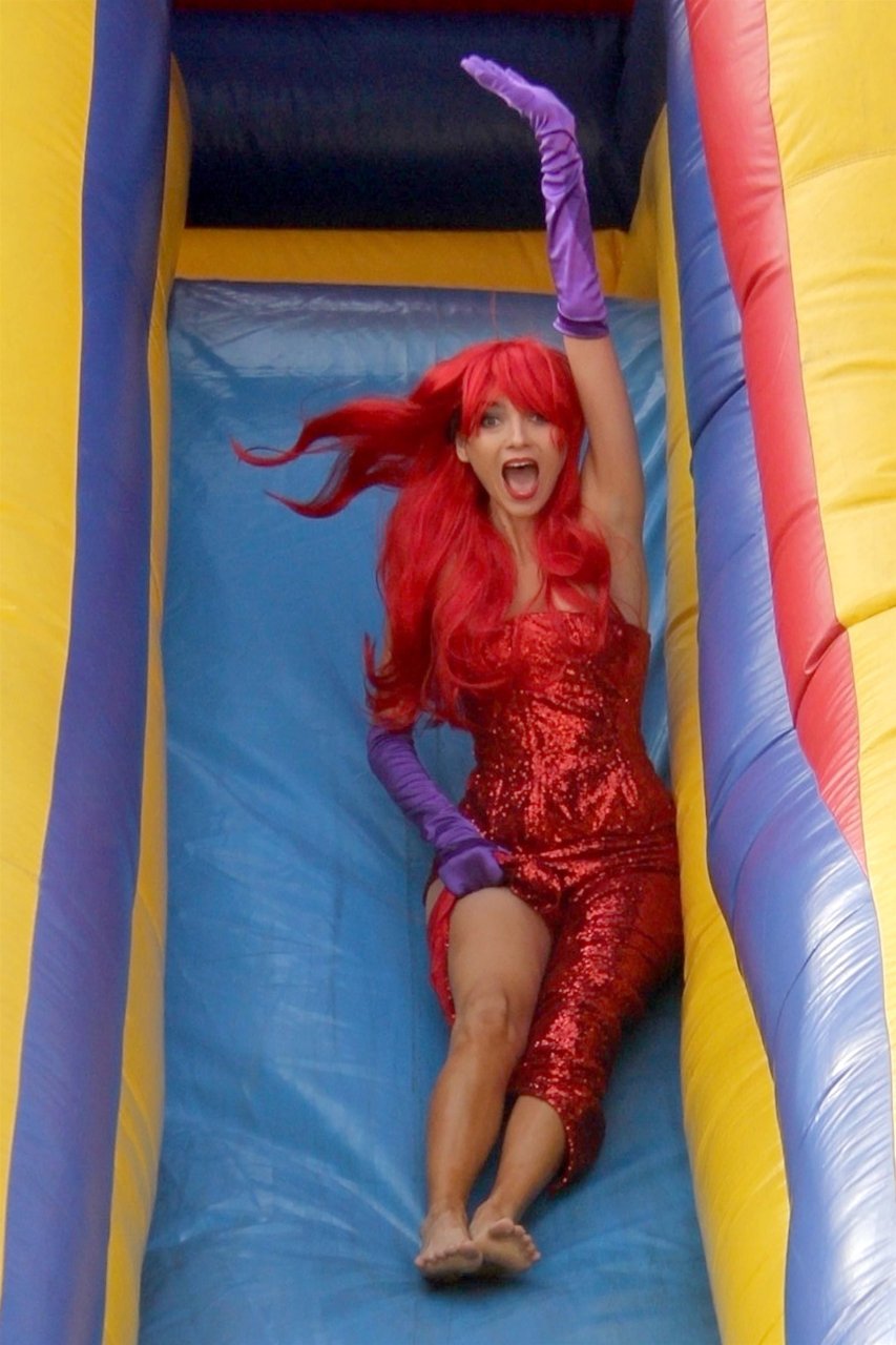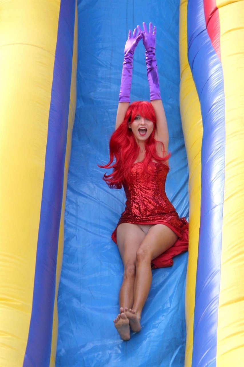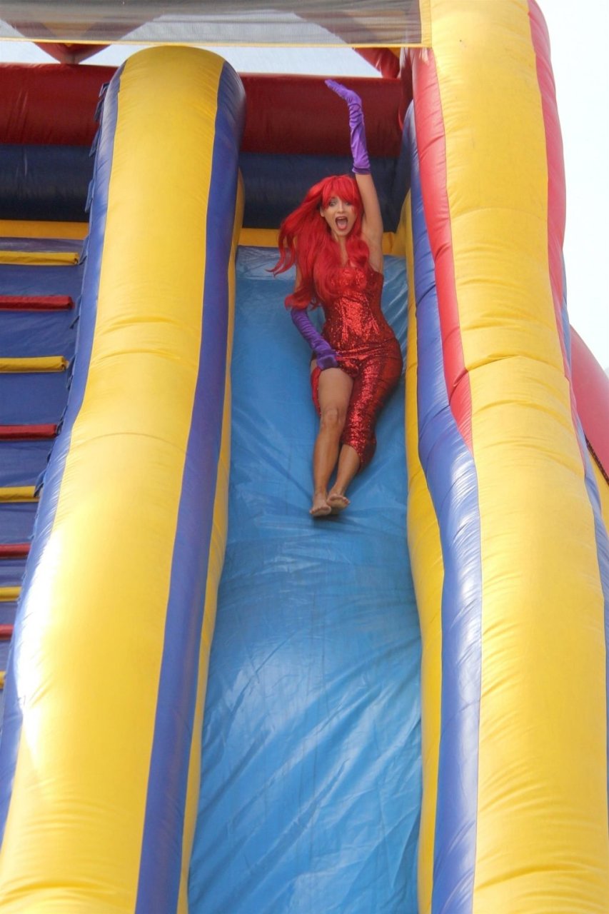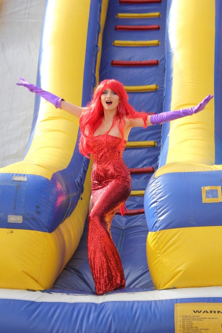 Актриса Бланка Бланко выбирает сексуальный образ, отправляясь на тыквенные поля Лос-Анджелеса в образе Джессики Рэббит в длинном красном платье и с подходящими красными волосами, 22.10.2018. Бланка проводит время, выбирая тыкву и наслаждаясь временем на надувной горке.