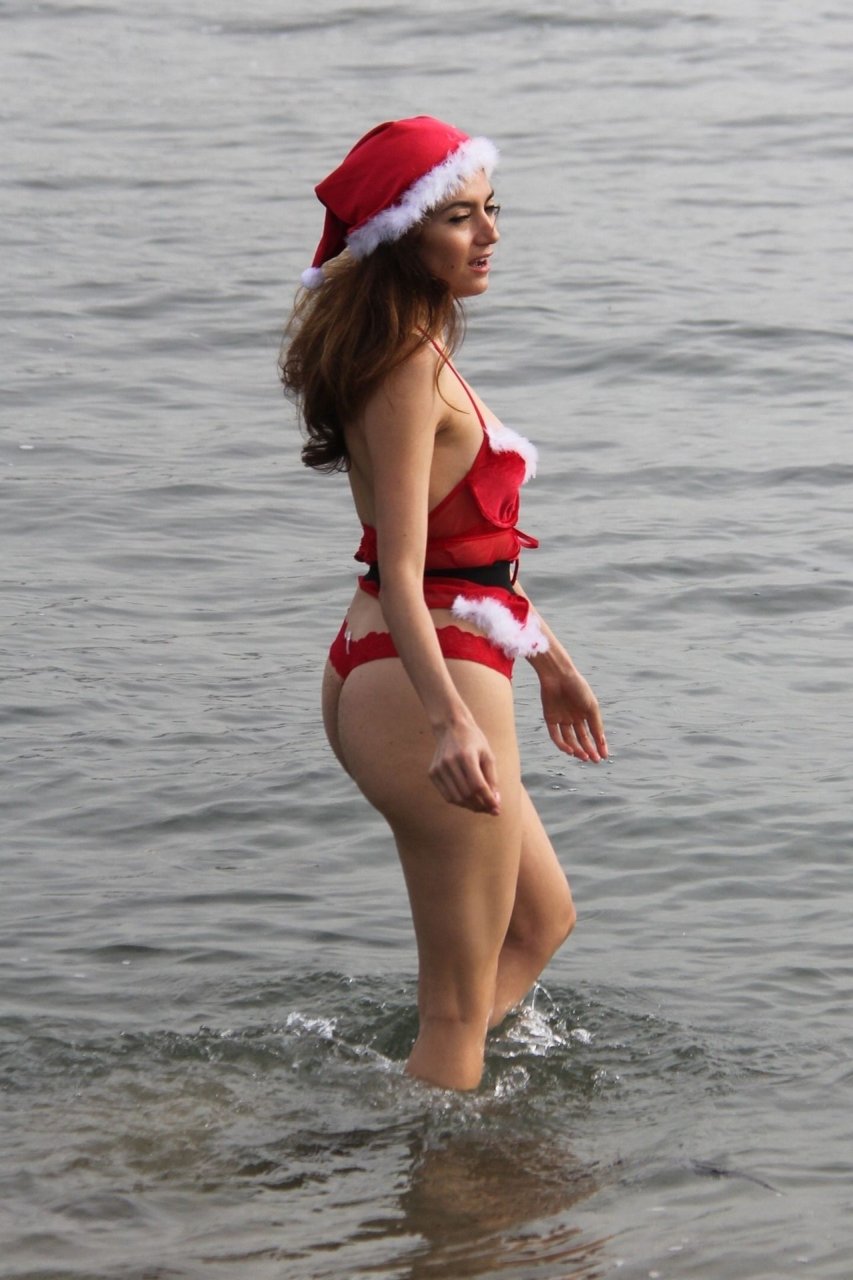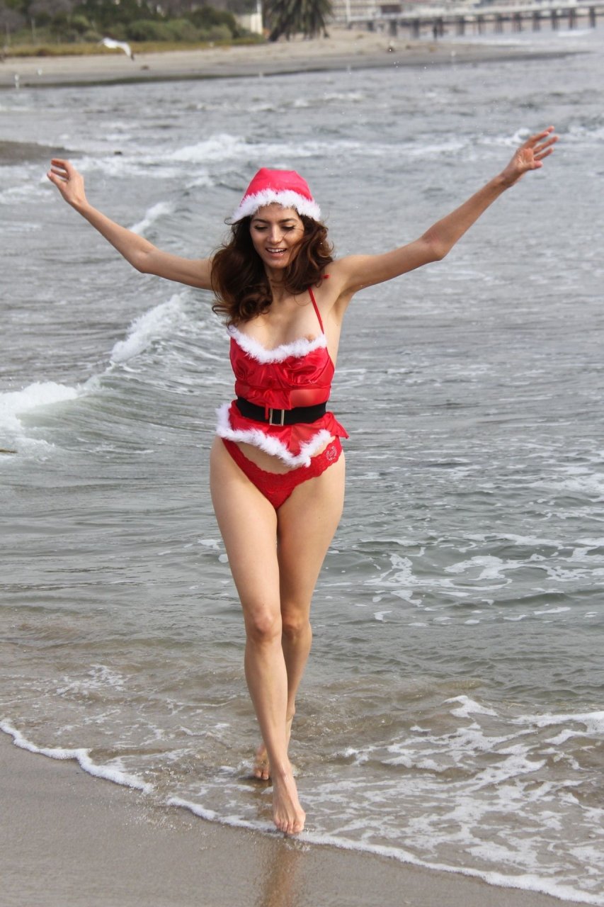 Blanca Blanco становится игривой на Рождество, позируя в праздничном наряде, включая Санта-белье и красные стринги на пляже в Малибу, 25.12.2018. 37-летняя актриса окунула пальцы ног в воду и испытала небольшую проблему с одеждой, обнажив сосок.