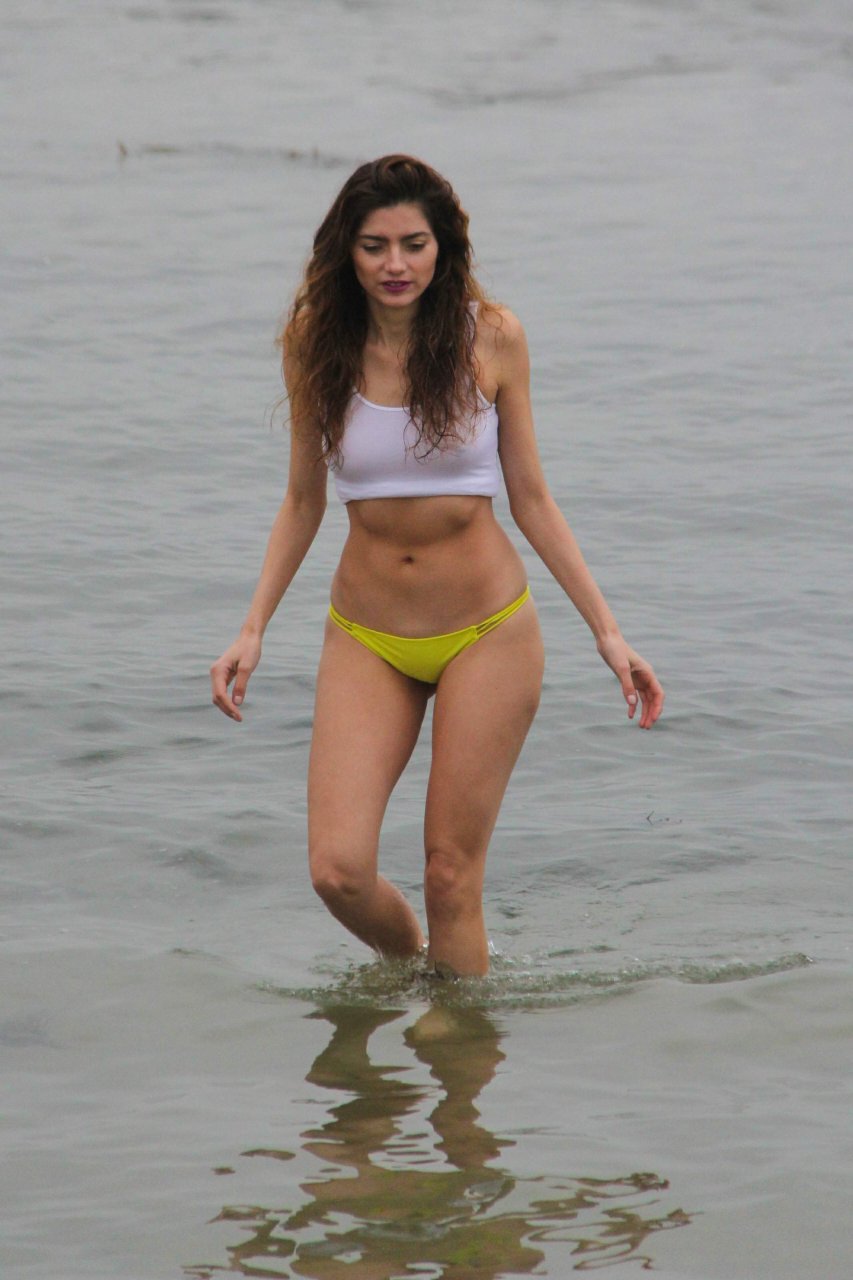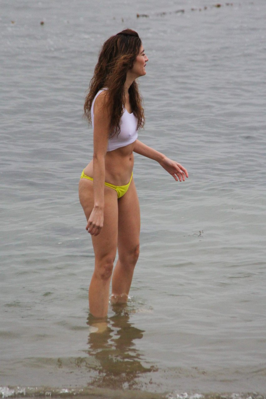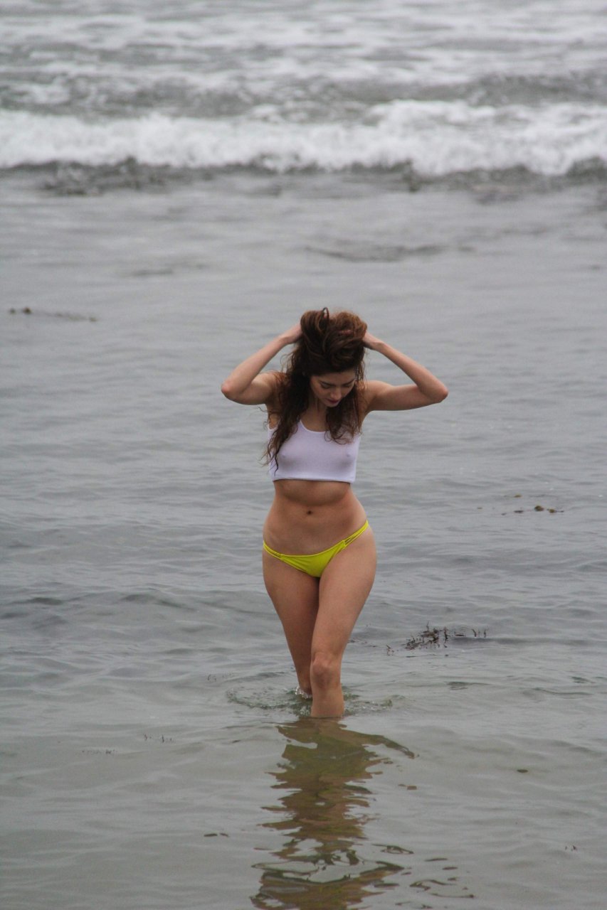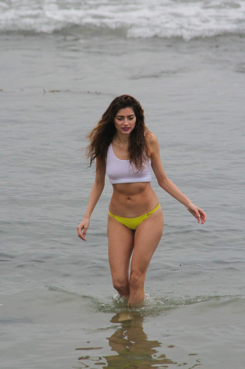 Бланка Бланко позирует в белой мокрой майке и жёлтых бикини на пляже в Малибу, 02/05/2017. Бланка Бланко — американская актриса (Followed (2017)). Возраст: 36