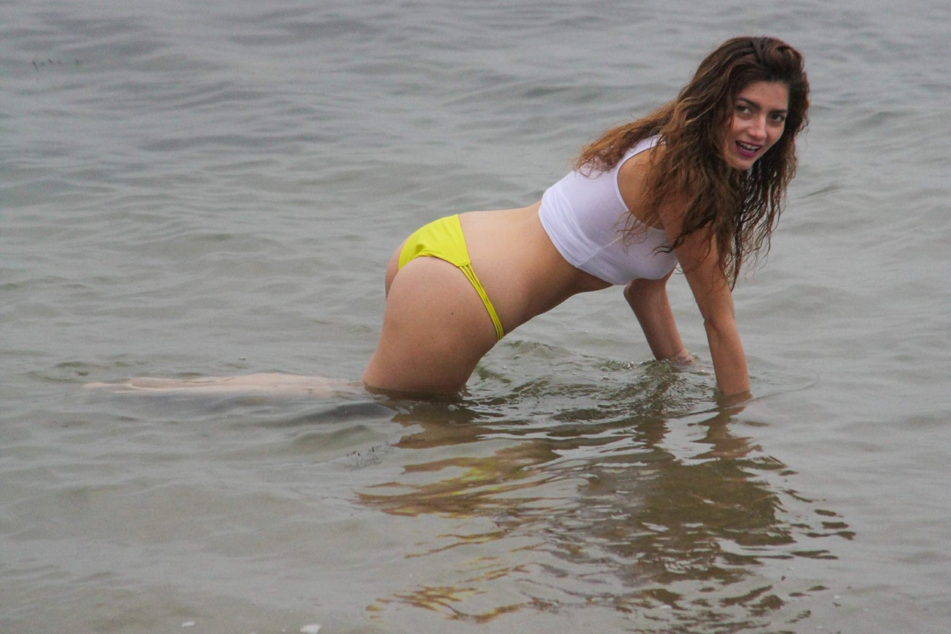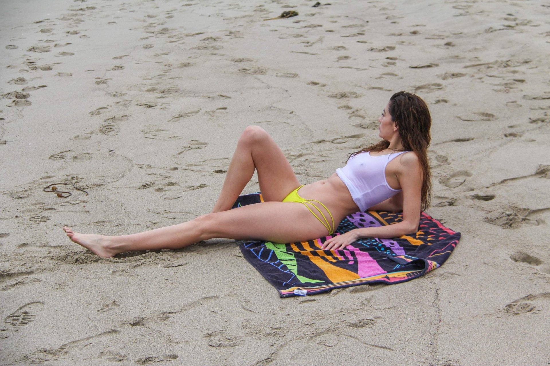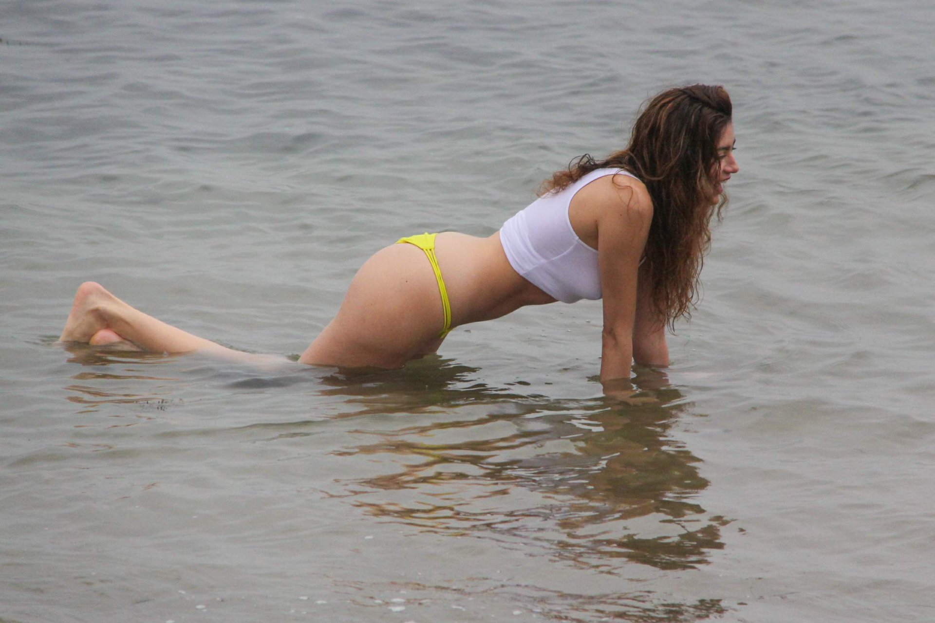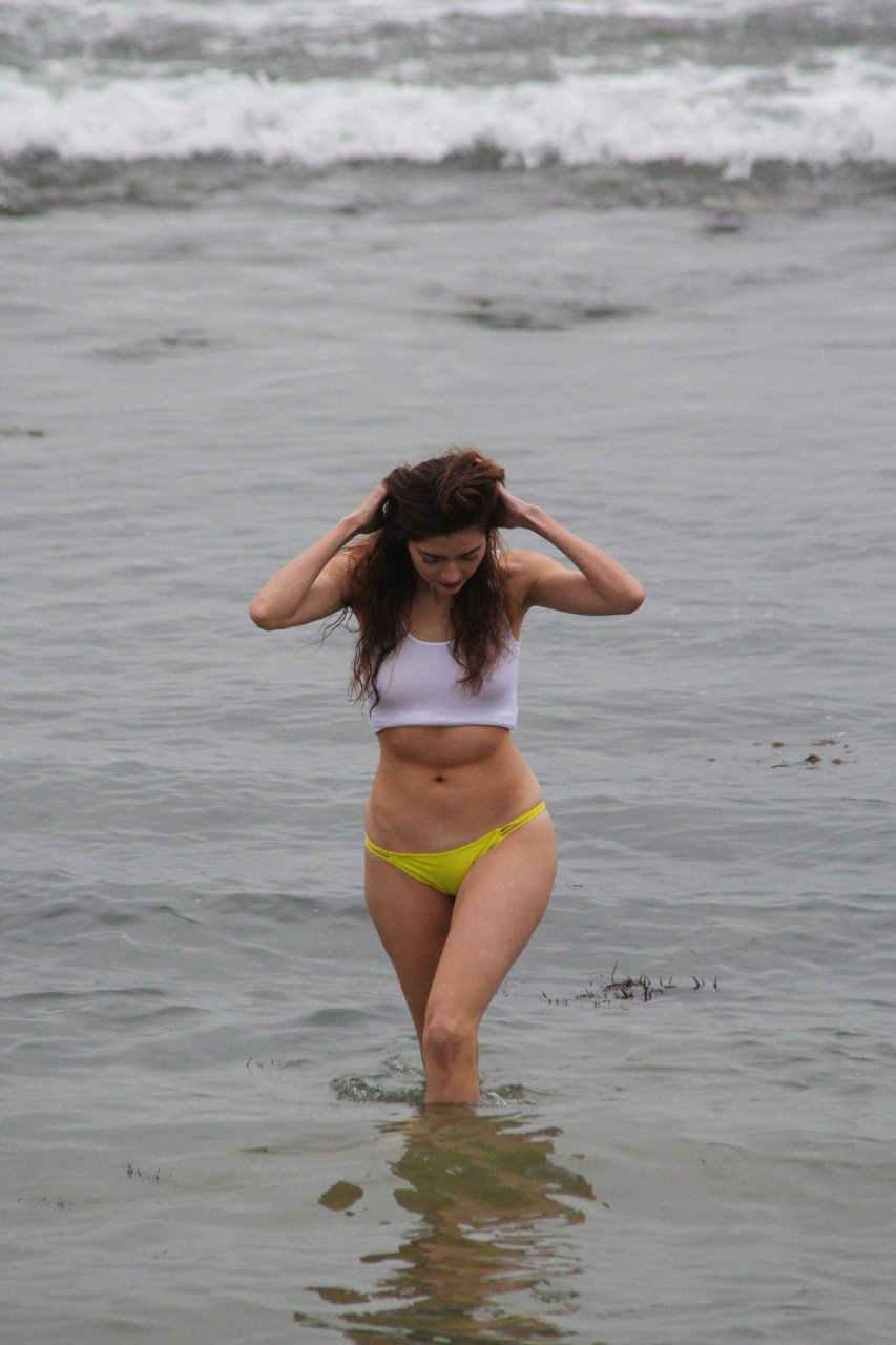 Бланка Бланко позирует в белой мокрой майке и жёлтых бикини на пляже в Малибу, 02/05/2017. Бланка Бланко — американская актриса (Followed (2017)). Возраст: 36
