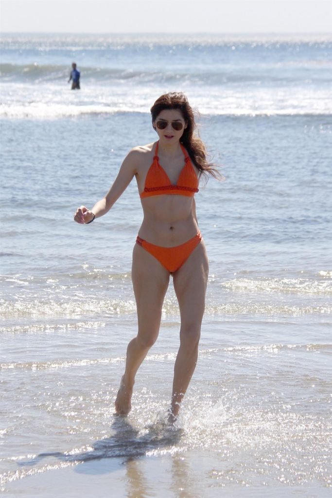 Актриса Бланка Бланко продемонстрировала сексуальное тело милф, прогуливаясь по пляжу в Малибу в сексуальном оранжевом бикини, 03.04.2018.
