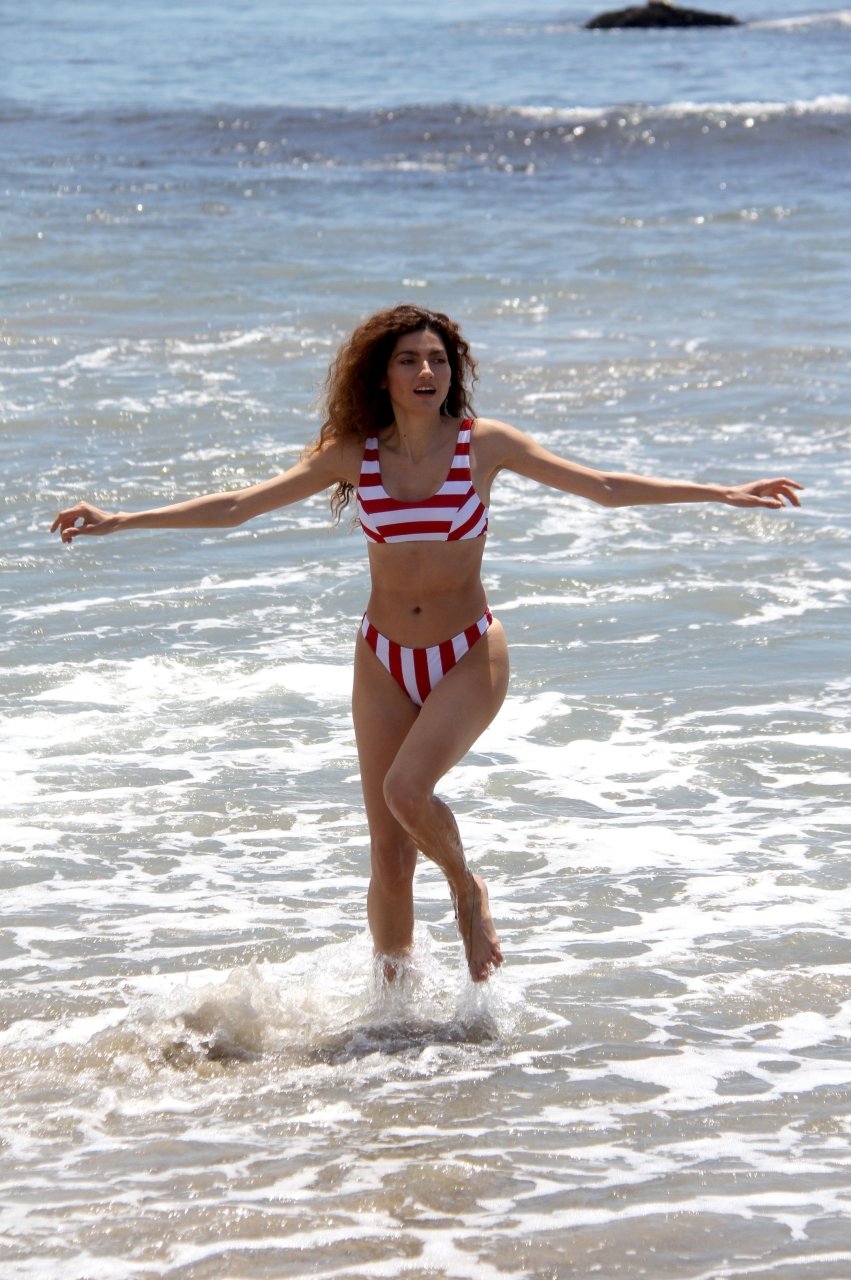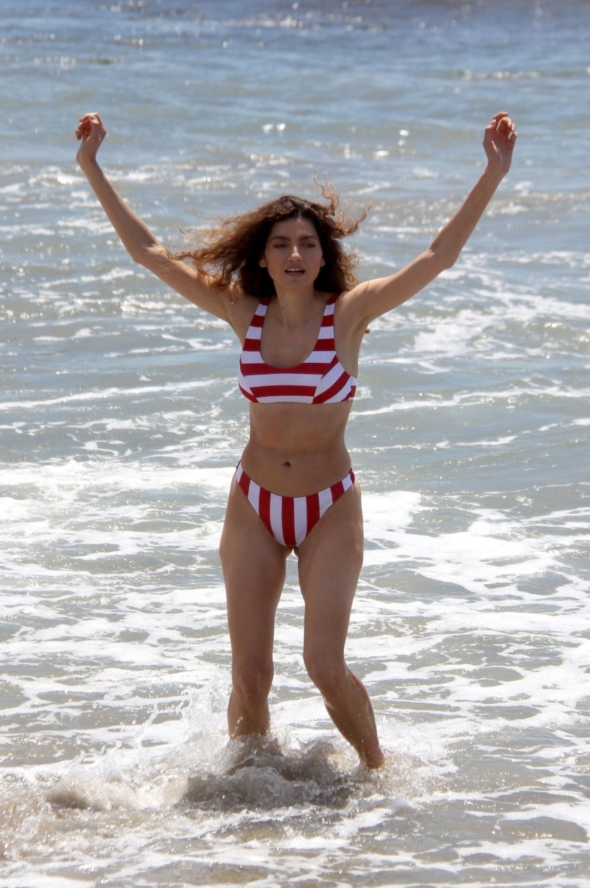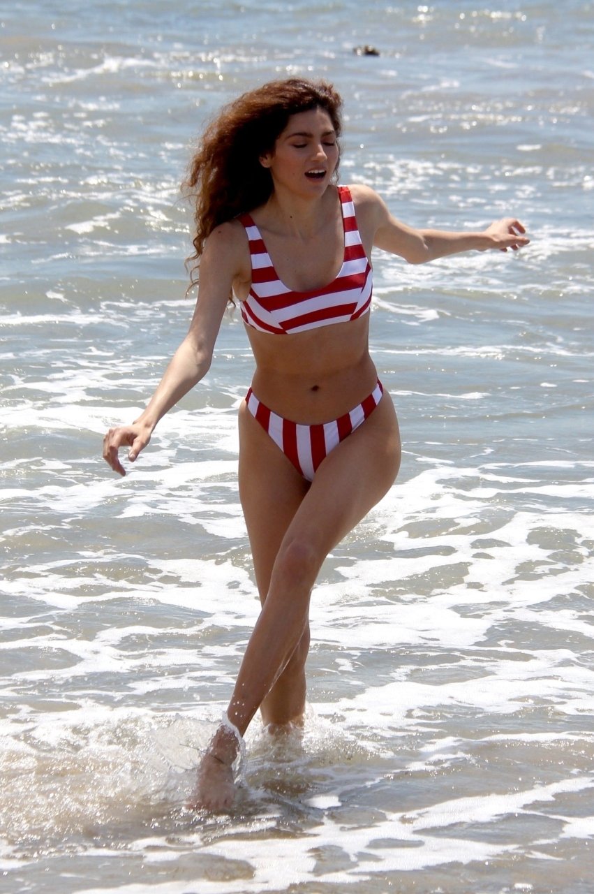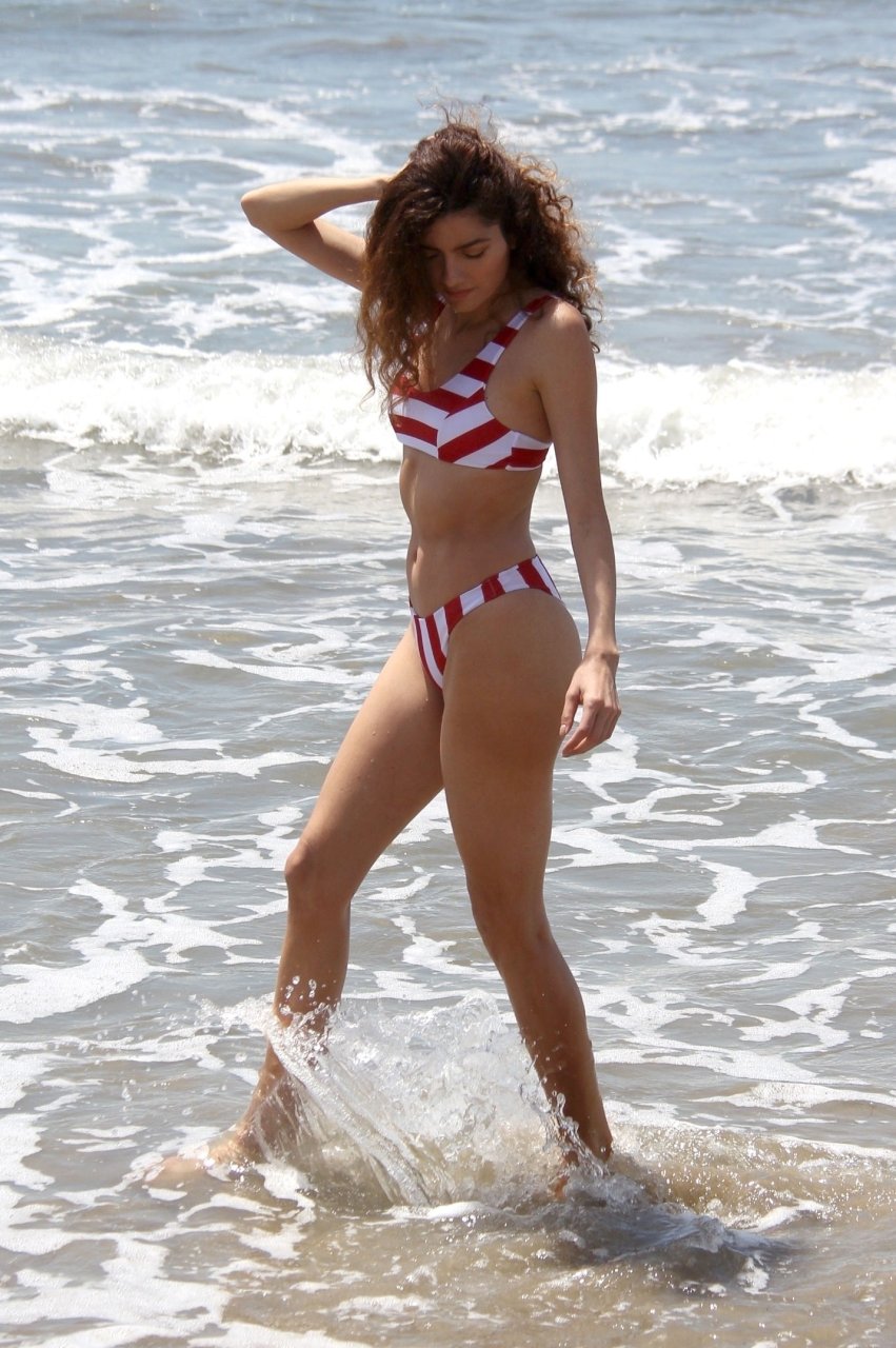 Актриса Бланка Бланко, 37 лет, наслаждается днем на пляже в Малибу в милом красно-белом полосатом бикини, 08.05.2018.