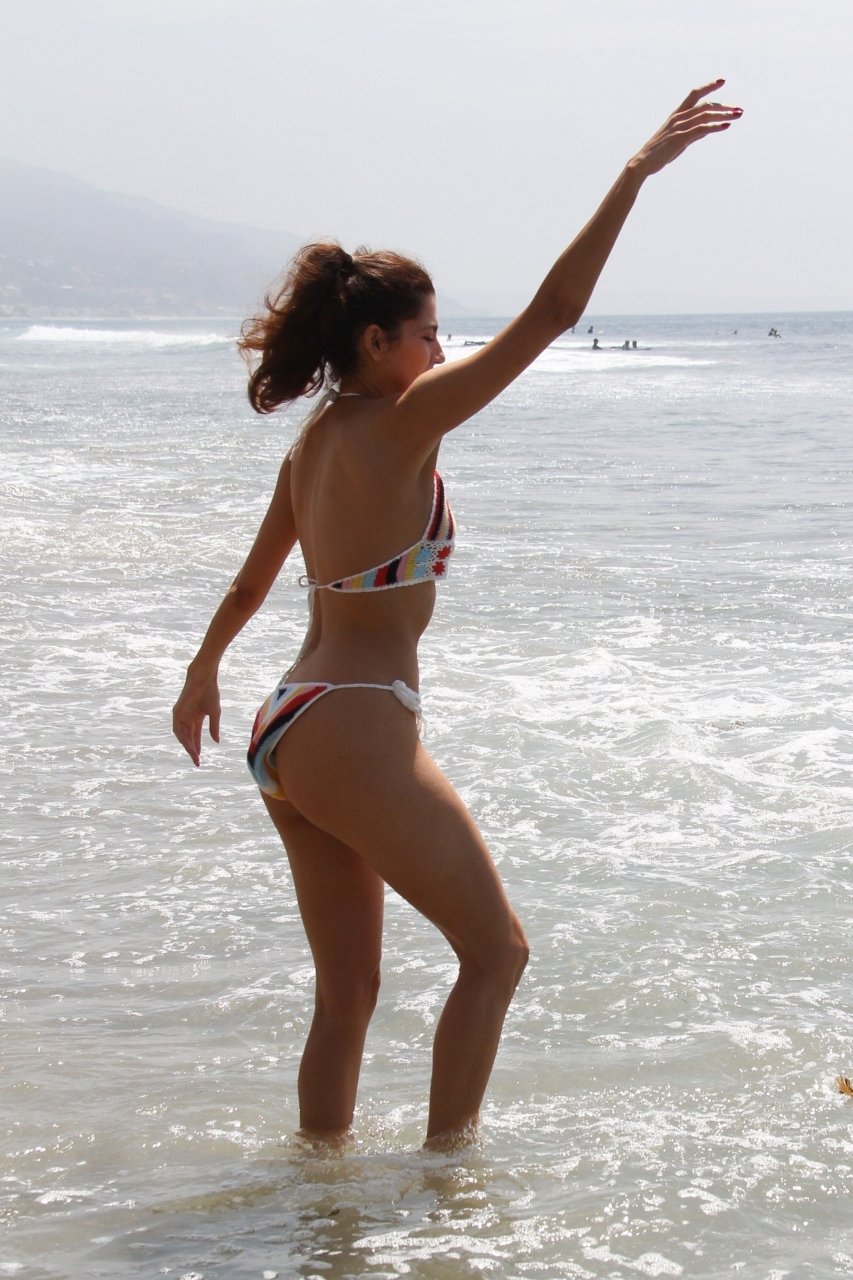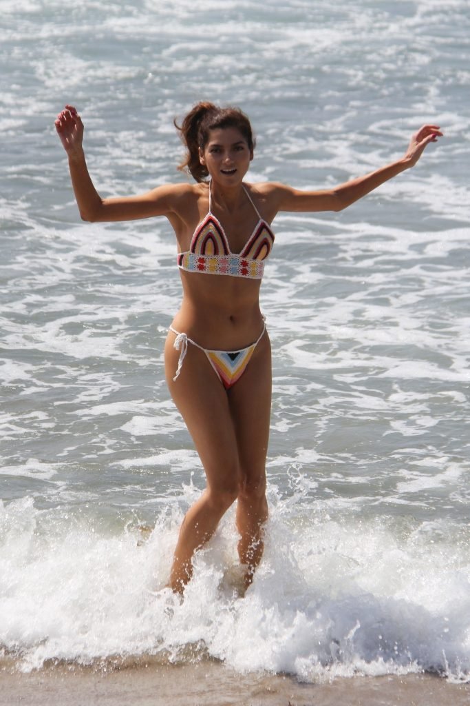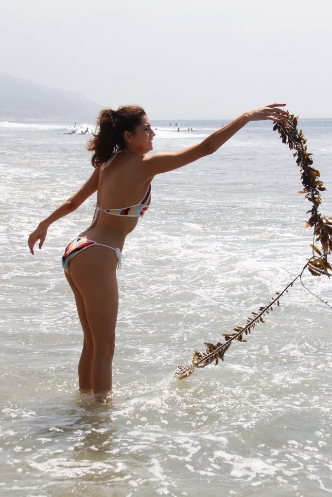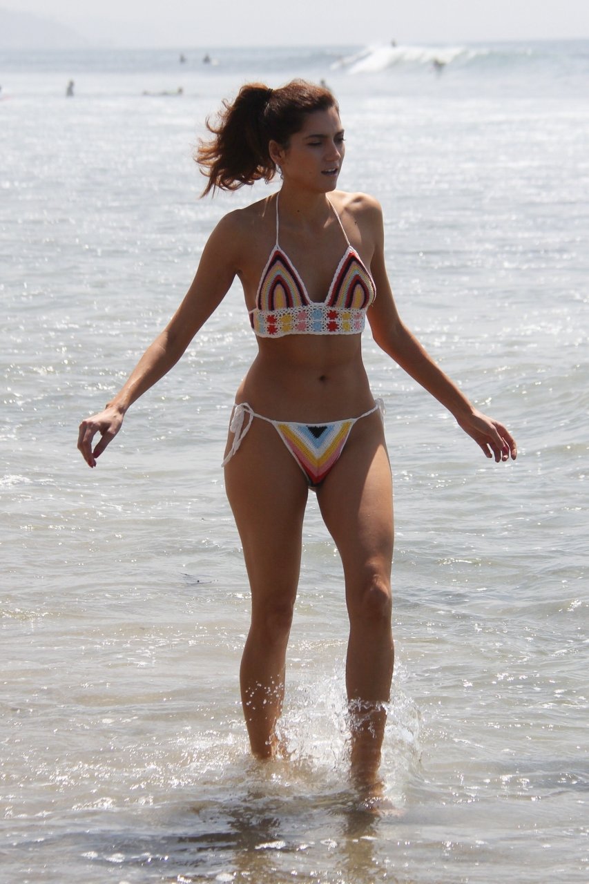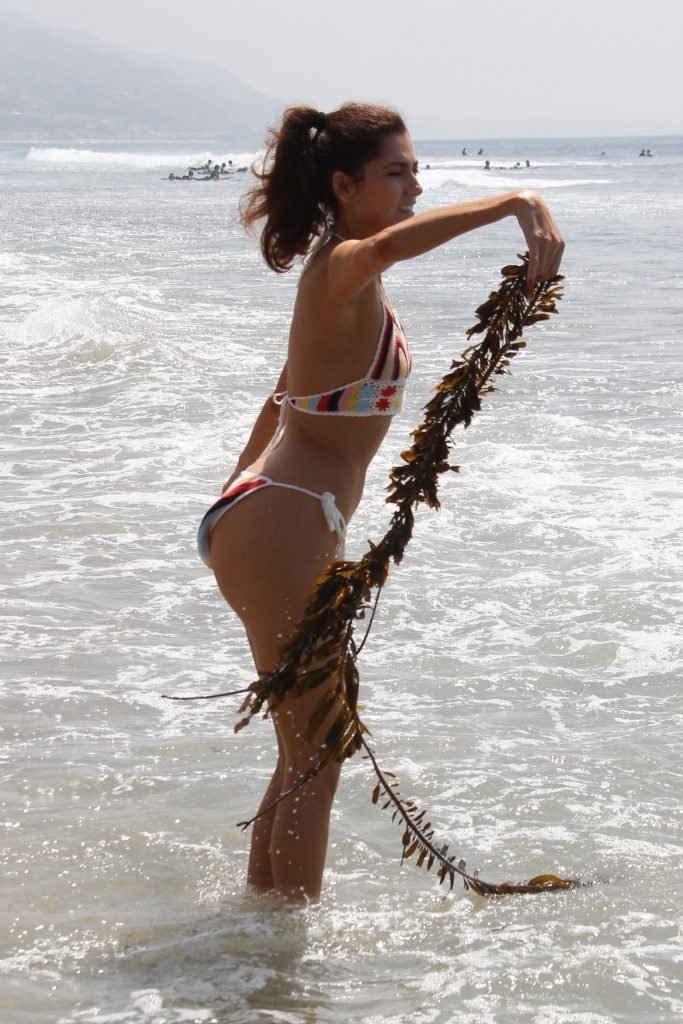 Бланка Бланко загорает, наслаждаясь веселым днем на пляже в Малибу, 14.07.2018. 37-летняя начинающая актриса была в разноцветном вязаном бикини и игриво отбрасывала морские водоросли.