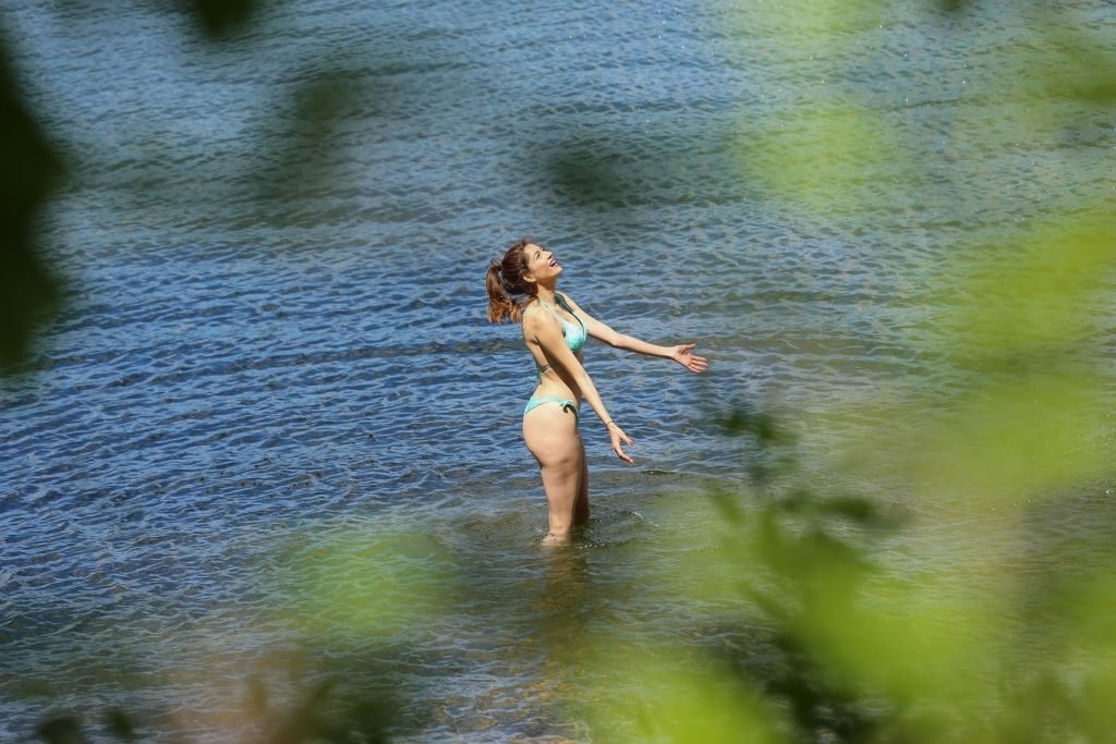 Бланка Бланко показывает немного боковой груди и сосок, наслаждаясь днем на озере Куэрд’Ален, Айдахо, 13.06.2018. Красивая актриса была замечена играющей в озере и загорающей на пляже у озера в бикини небесно-голубого цвета.