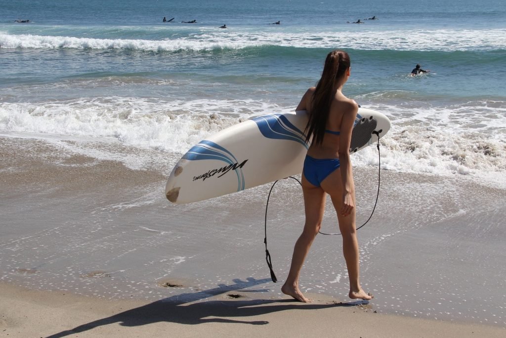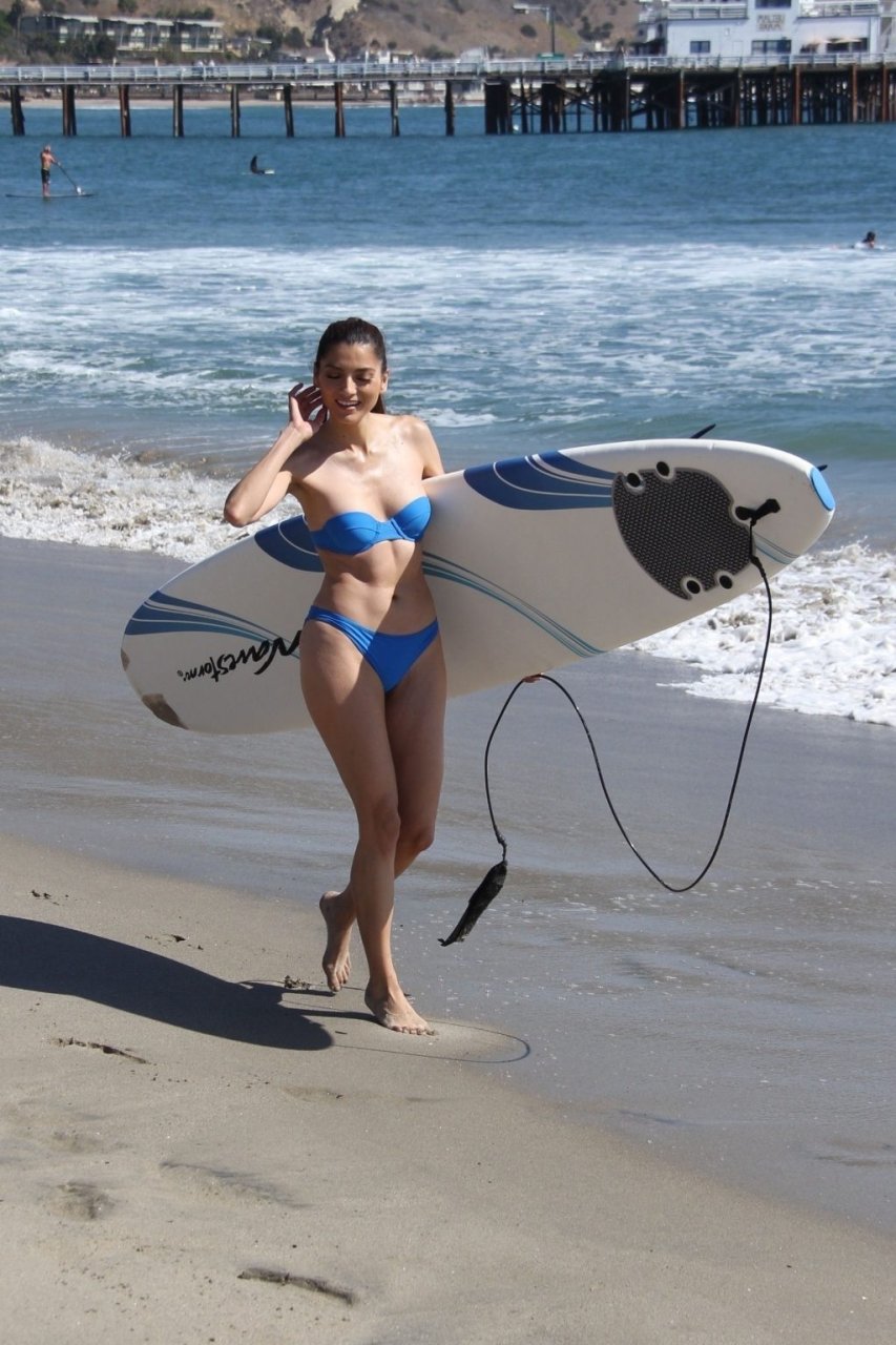 Бланка Бланко (37) пытается насладиться последними теплыми днями осени на пляже в Малибу, 15.10.2018. Бланка замечена с серфбордом, демонстрируя свою подтянутую фигуру в милом ярко-синем бикини.