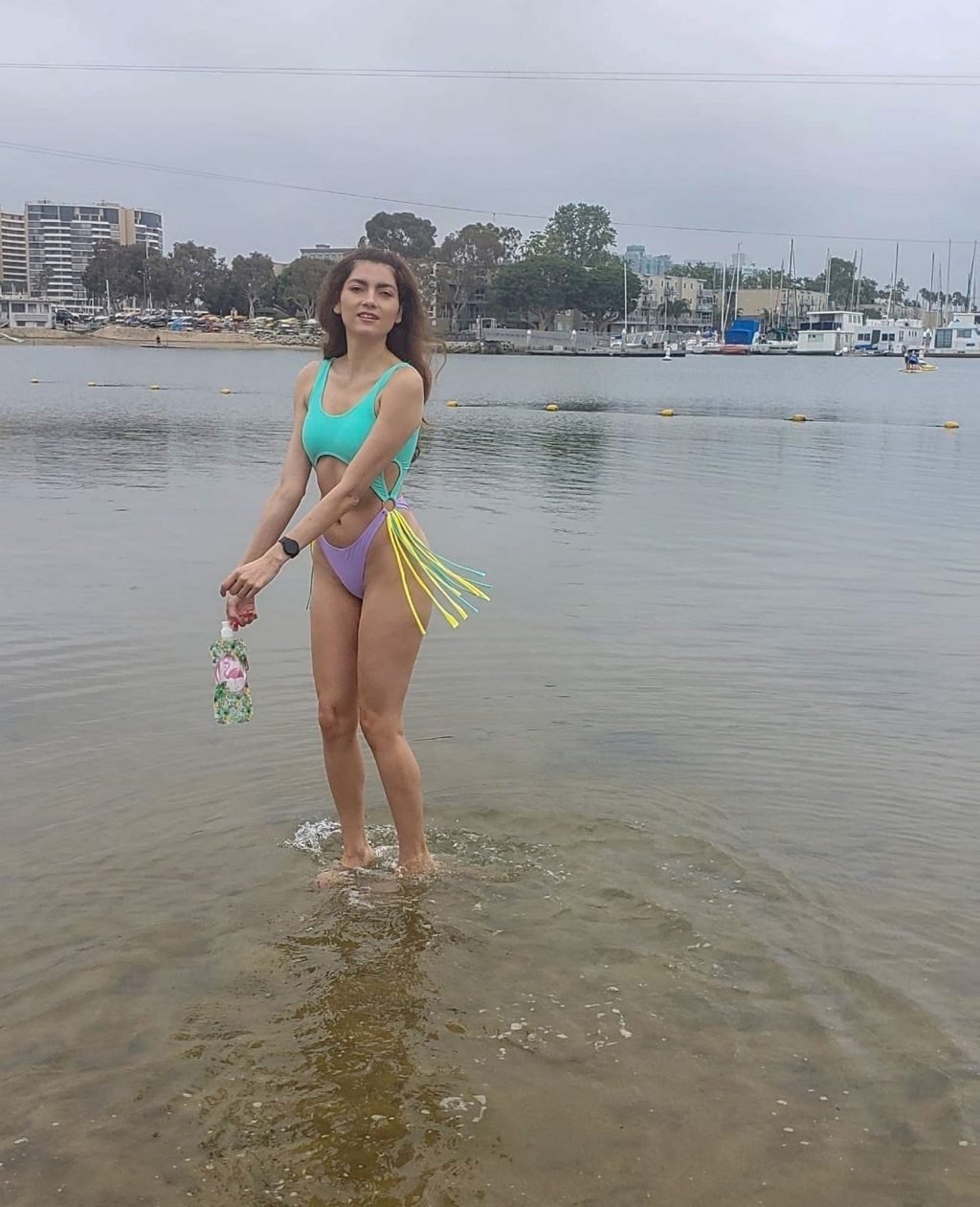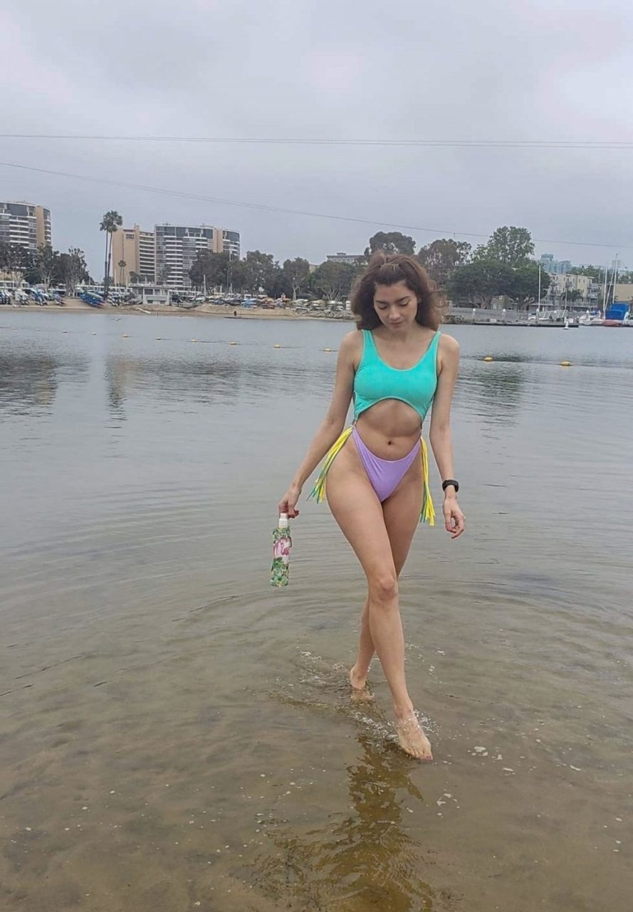 Актриса и пляжная красавица Бланка Бланко проводит время на пляже в Лос-Анджелесе, демонстрируя свою пляжную фигуру в дерзком разноцветном бикини, 18.06.2019.