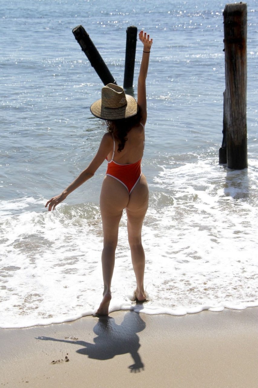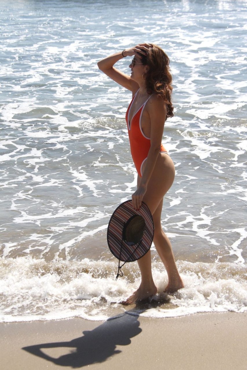 Актриса Бланка Бланко в оранжевом купальнике Orange Crush, эффектно демонстрируя сексуальный образ во время долгой прогулки по пляжу в Малибу, 10.10.2019.