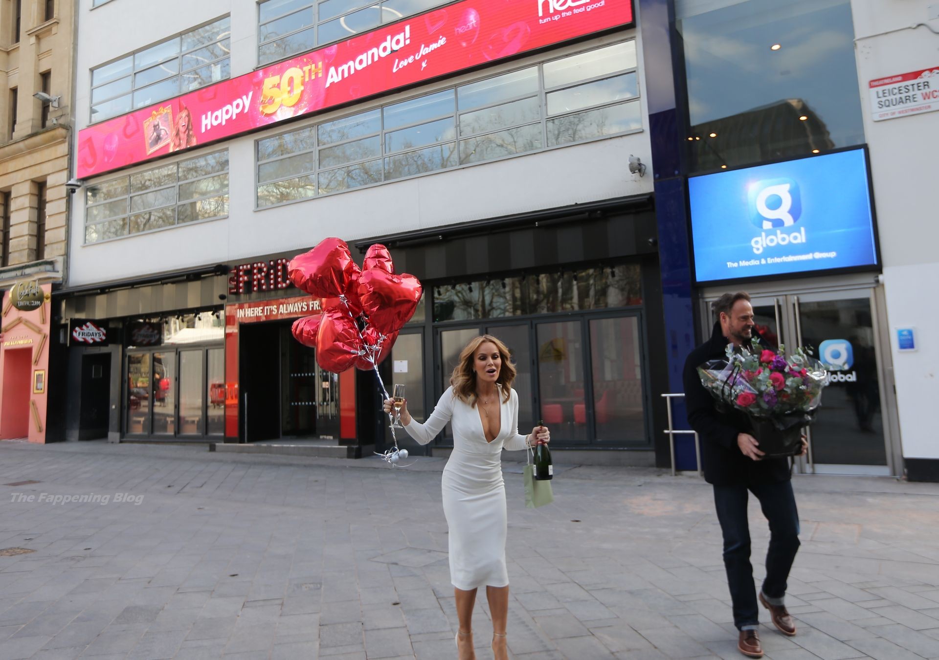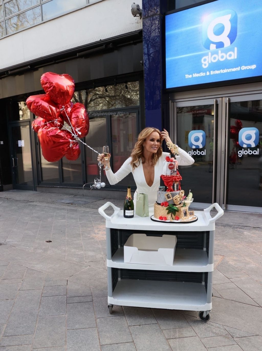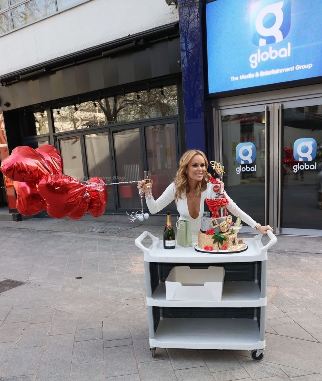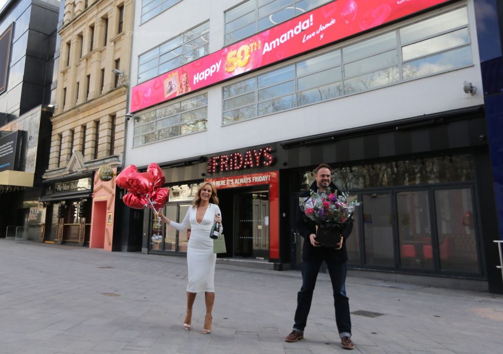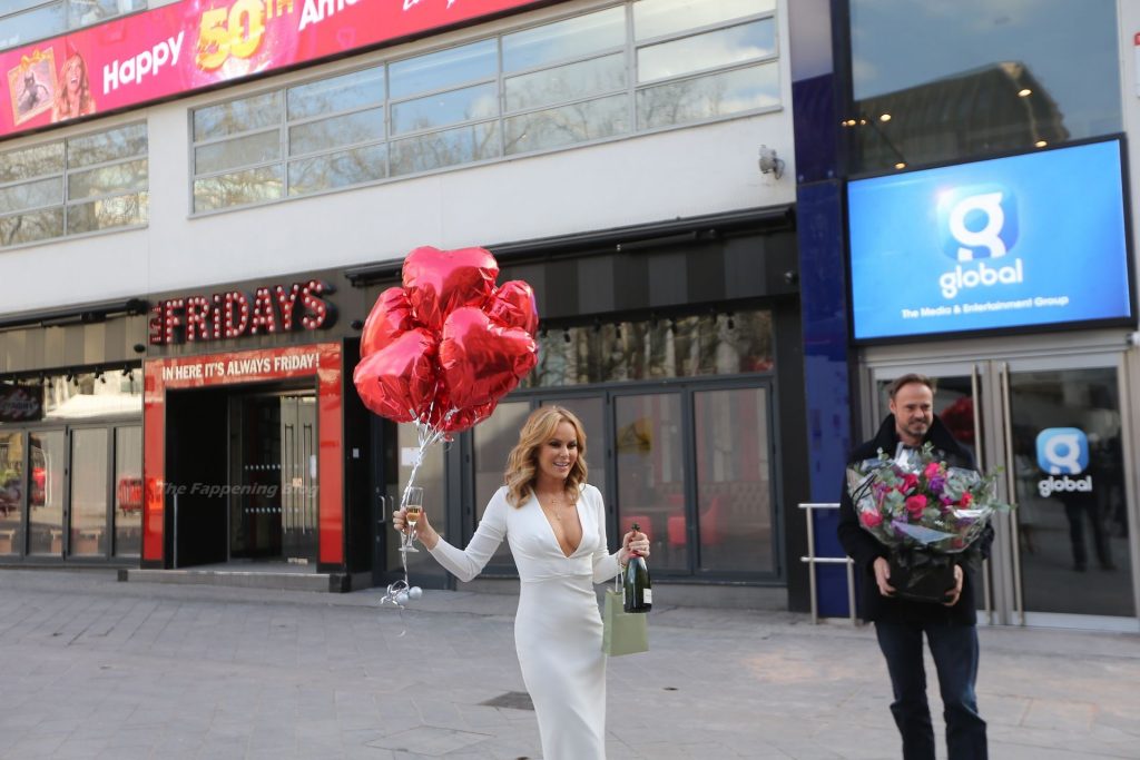 Актриса и радиоведущая Аманда Холден празднует свой 50-й день рождения возле студий Global Radio в Лондоне, 02/12/2021.