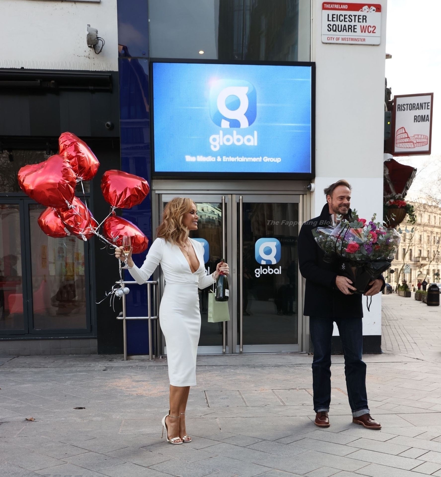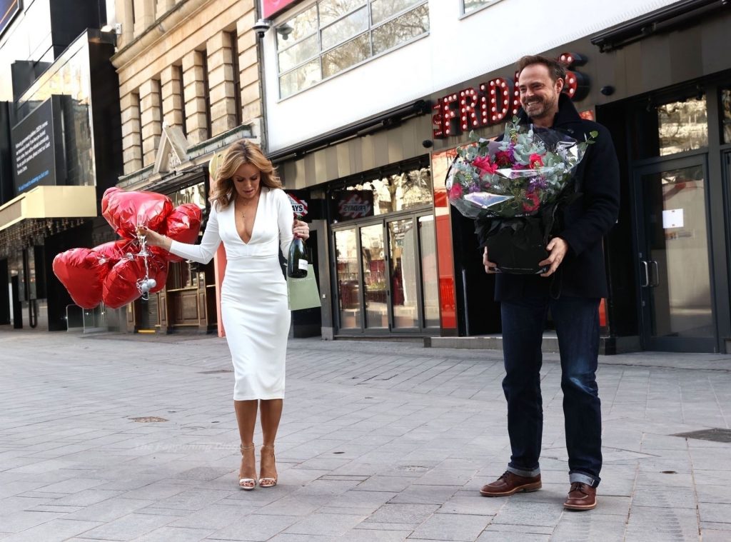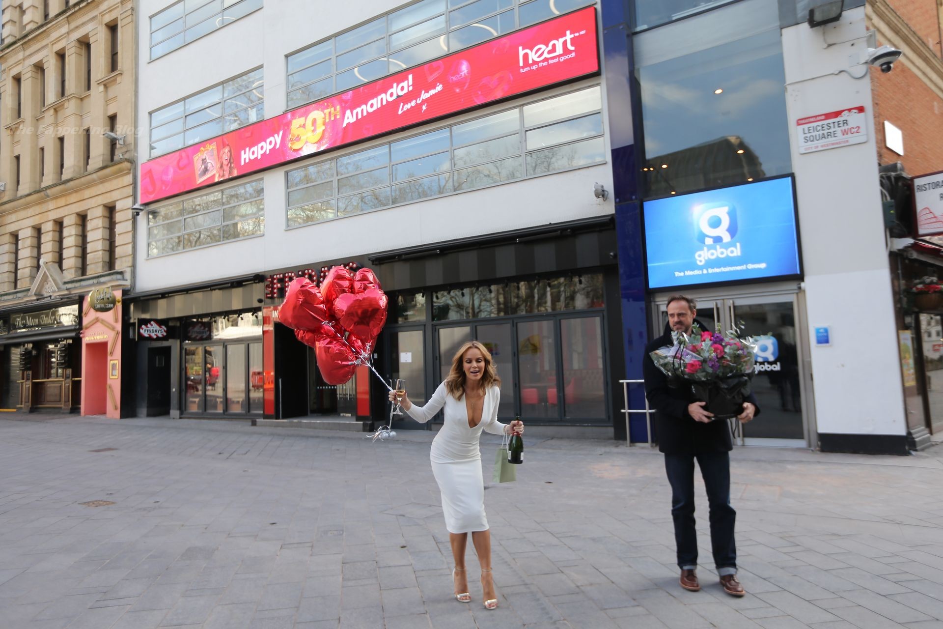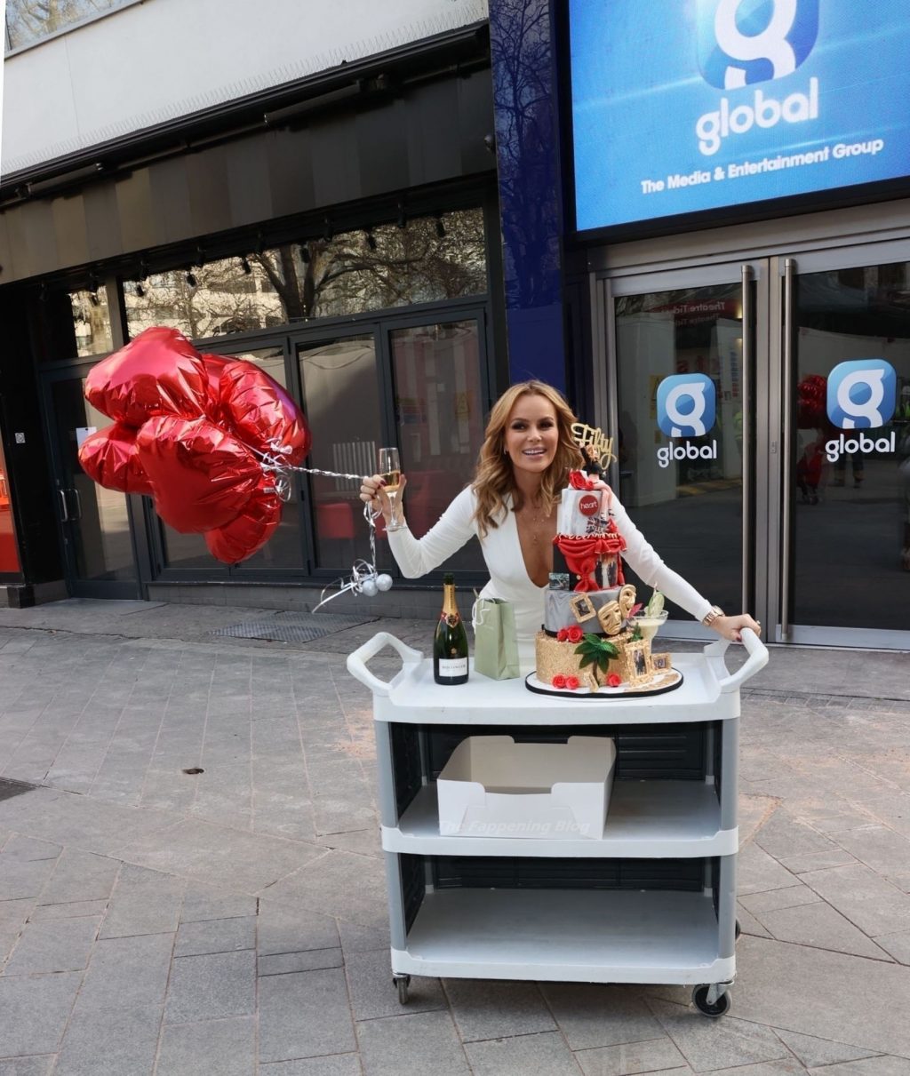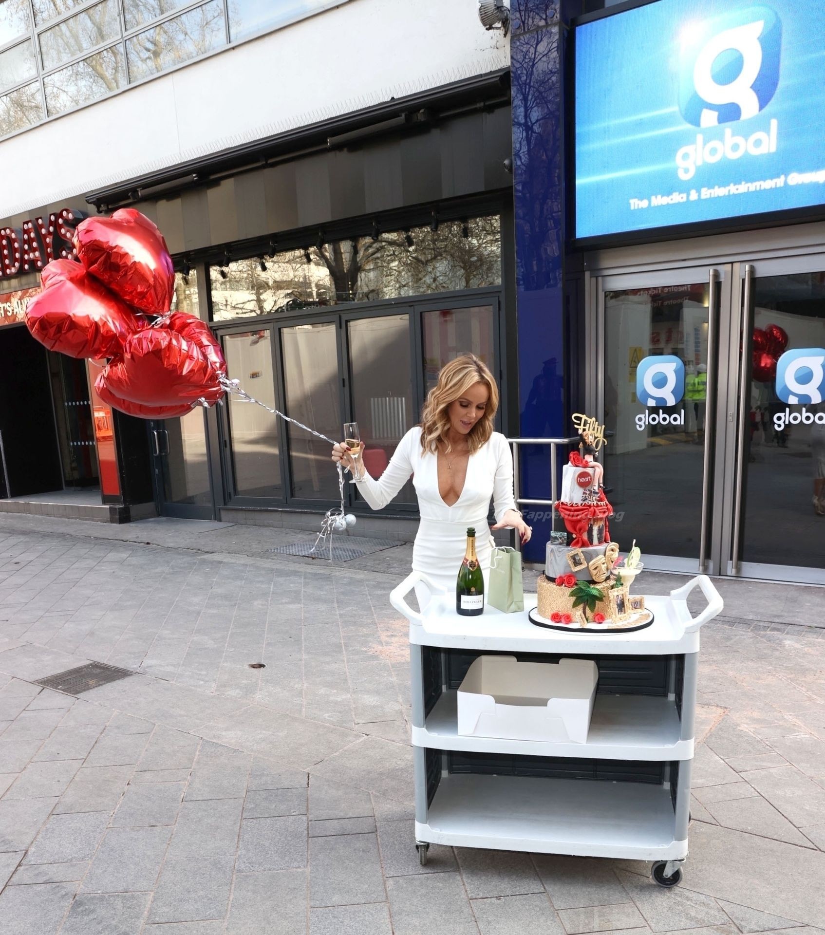 Актриса и радиоведущая Аманда Холден празднует свой 50-й день рождения возле студий Global Radio в Лондоне, 02/12/2021.
