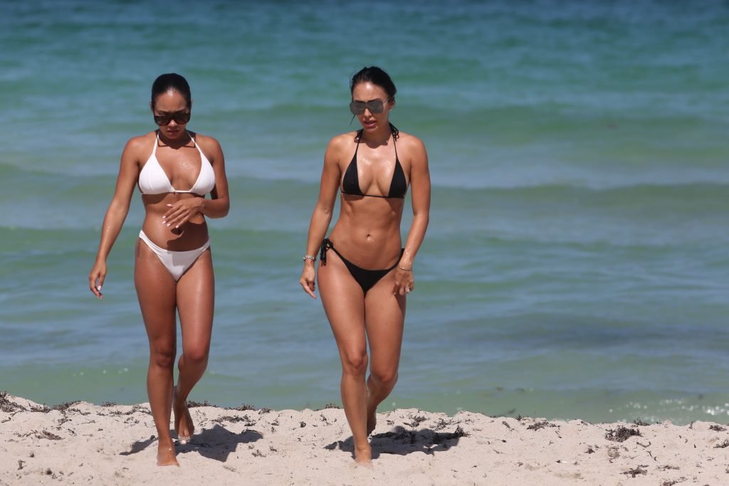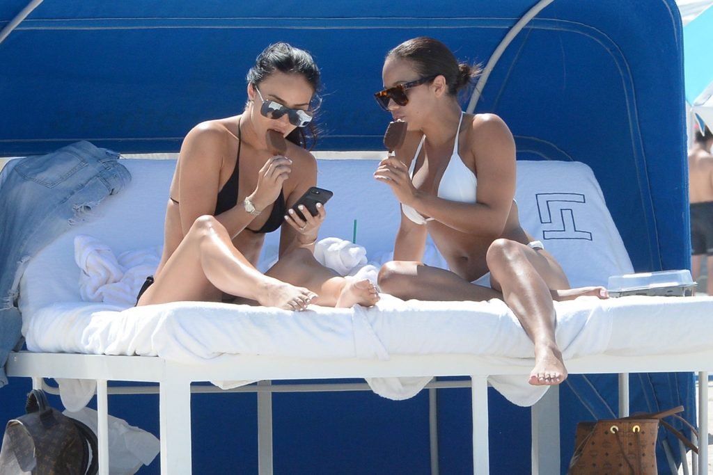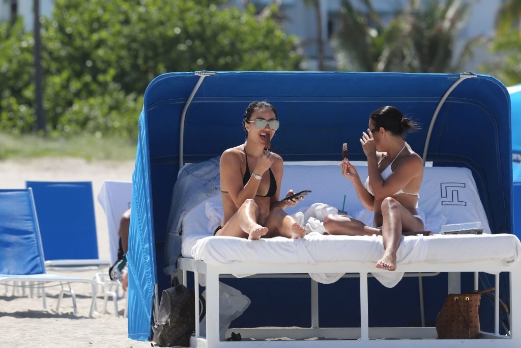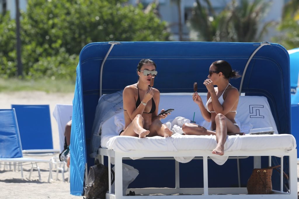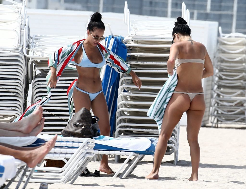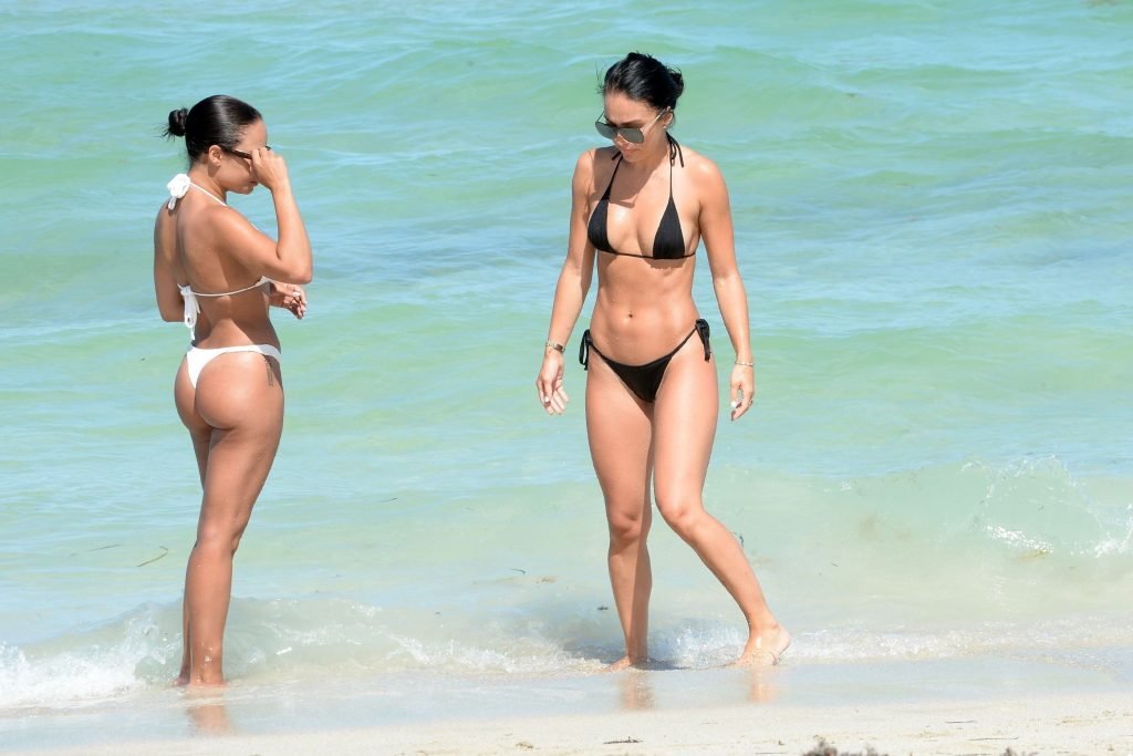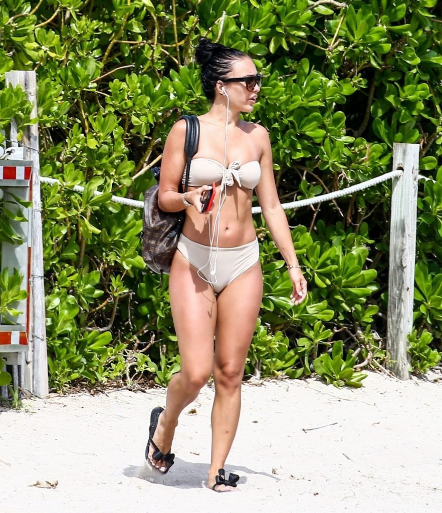 Bre Tiesi, которая помолвлена с скандально известным бывшим игроком НФЛ Джонни Манзелем, продемонстрировала своё тело в бикини на пляже в Майами, 15.06.2017. Bre Tiesi — американская модель. Возраст: 26.