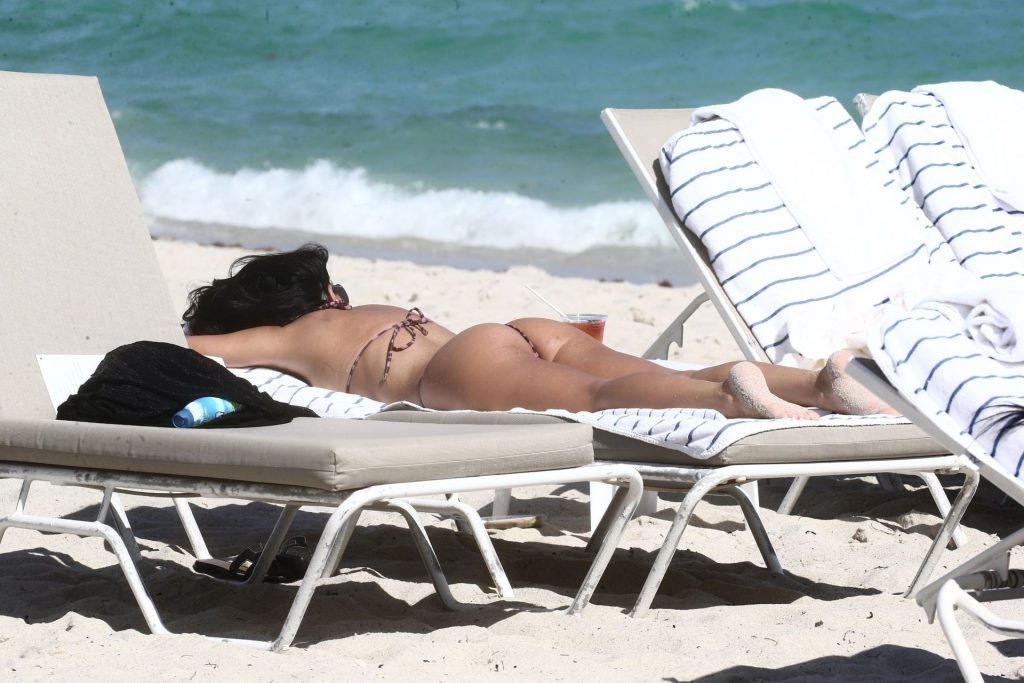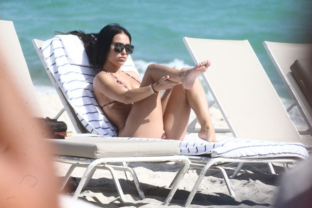 Breana (Bre) Tiesi демонстрирует свою подтянутую фигуру, наслаждаясь днем на пляже в Майами, 11/04/2019. Breana выглядит великолепно, выбирая крошечный бикини для прогулки.